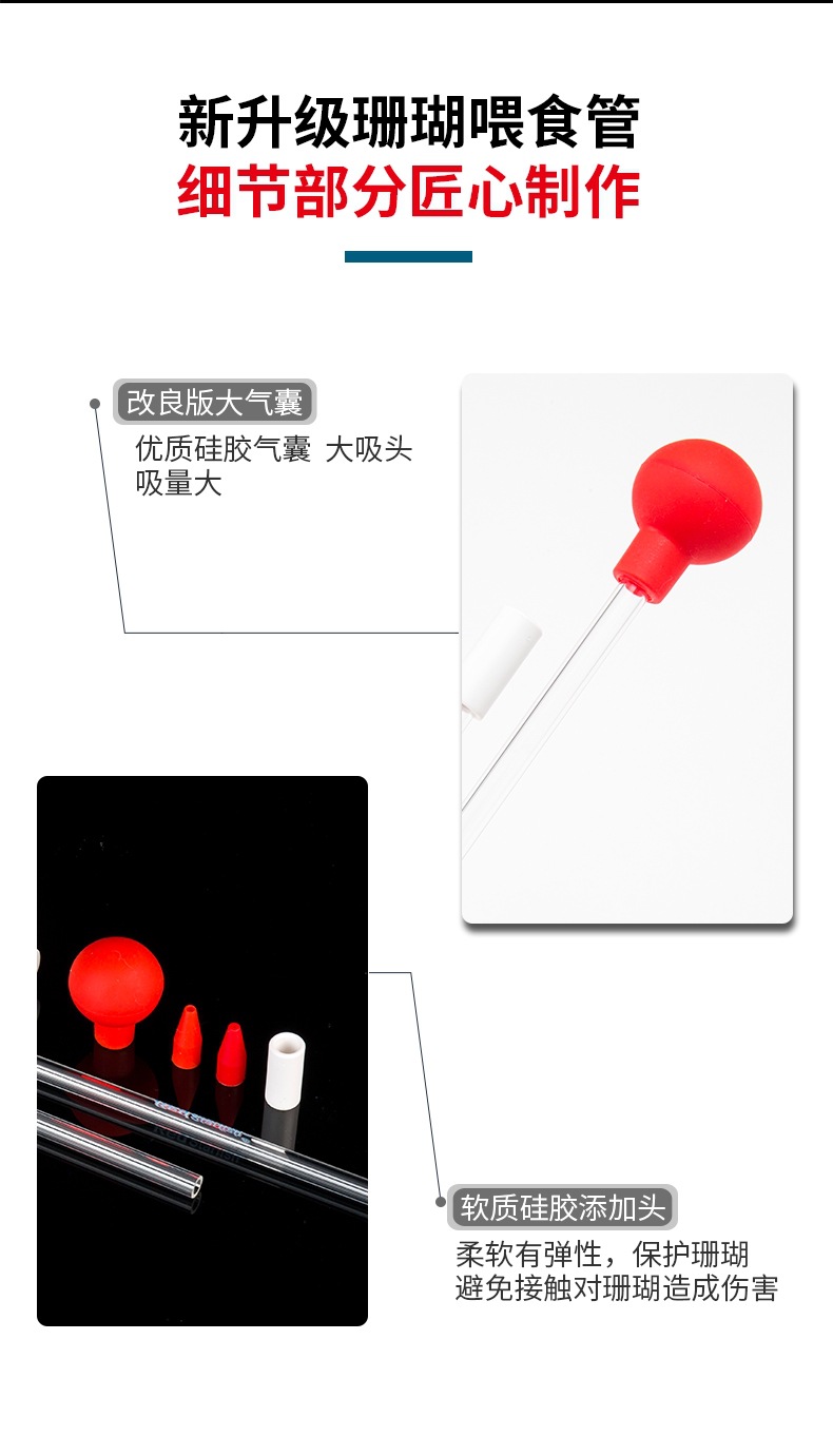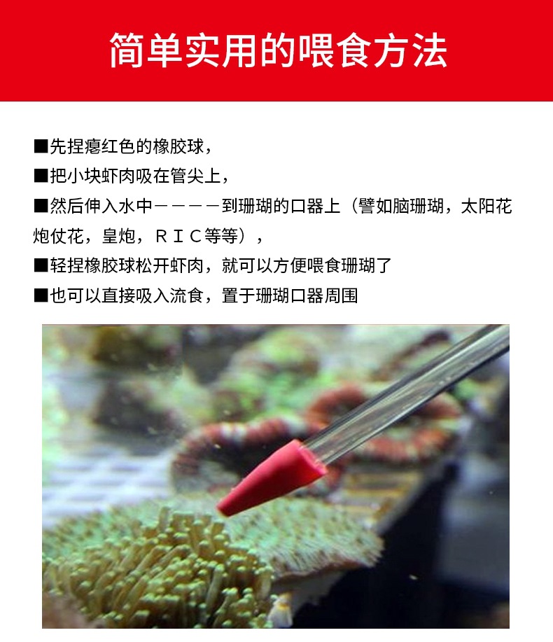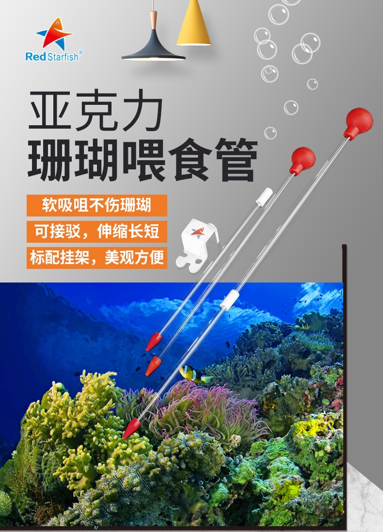 붉은 불가사리 산호 공급 튜브 수족관 해수 물고기 탱크 아크릴 산호 식품 피더 도구 긴 큰 흡입 공