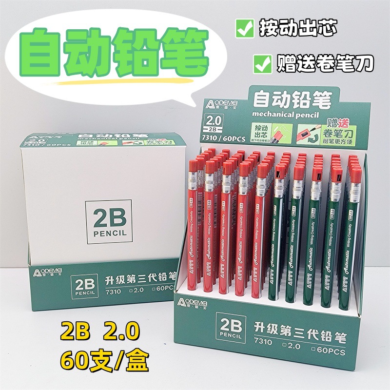 무료 배송 Aodemei 자동 연필 2.0 두꺼운 코어 연필 학생 쓰기 둥근 막대 환경 친화적 인 연필 60 개
