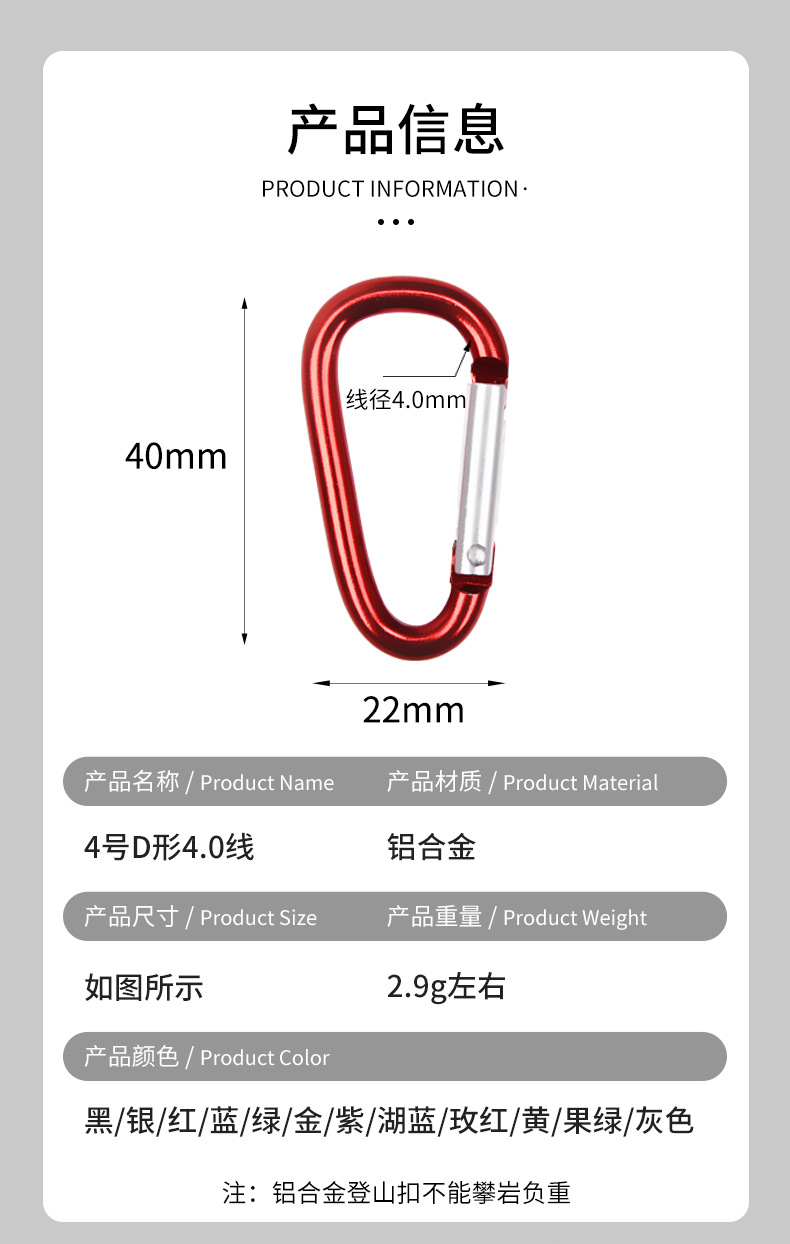 국경을 넘는 제조업체 4호 d형 4.0 라인 알루미늄 합금 등산용 클립 다기능 걸이용 클립 낚시 액세서리 야외용품스토어 가기