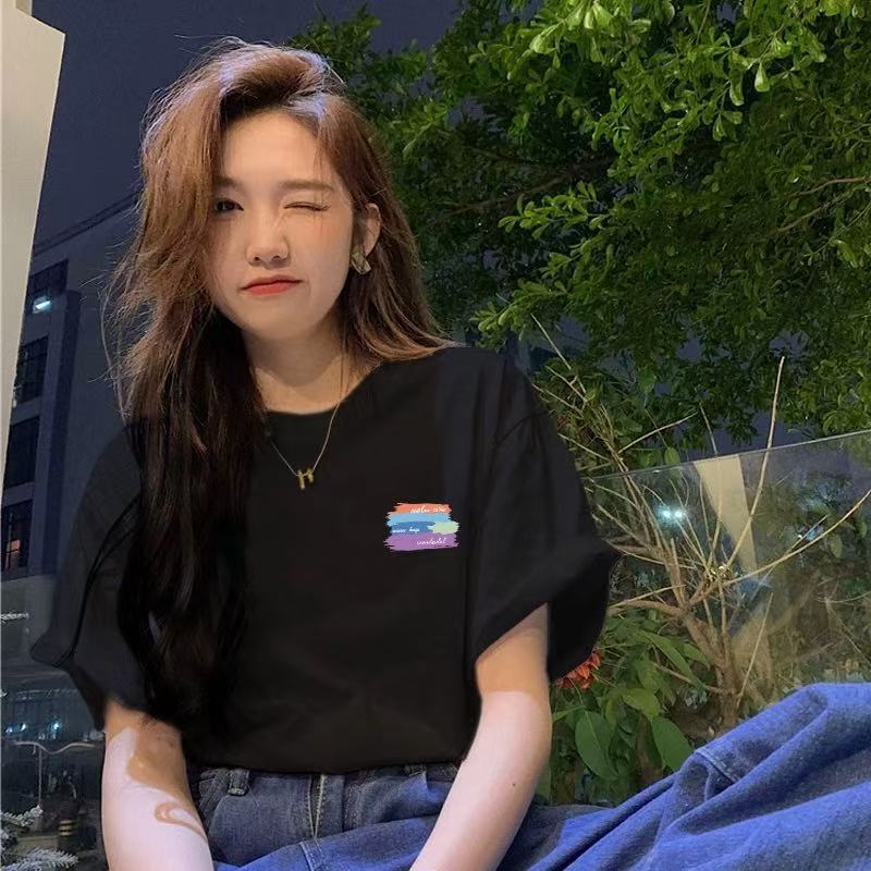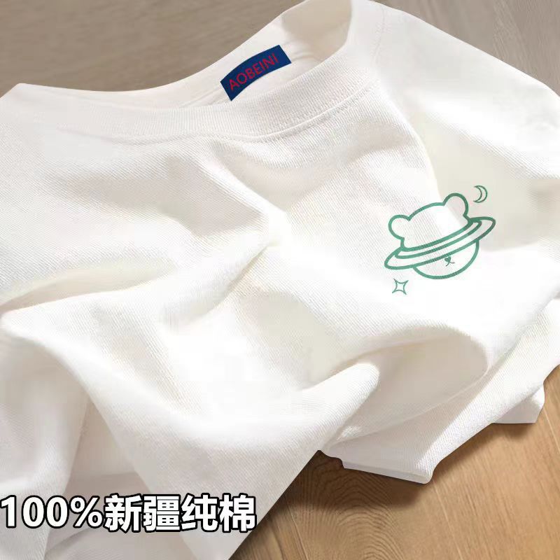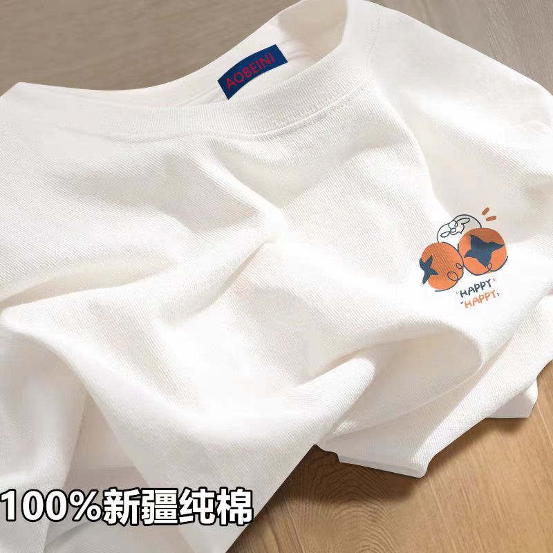 하이 엔드 화이트 반팔 간단한 티셔츠 여성 여름 2025 새로운 도착 인쇄 디자인 틈새 느슨한 홍콩 스타일 탑스토어 가기