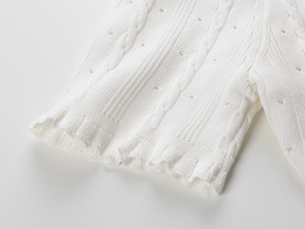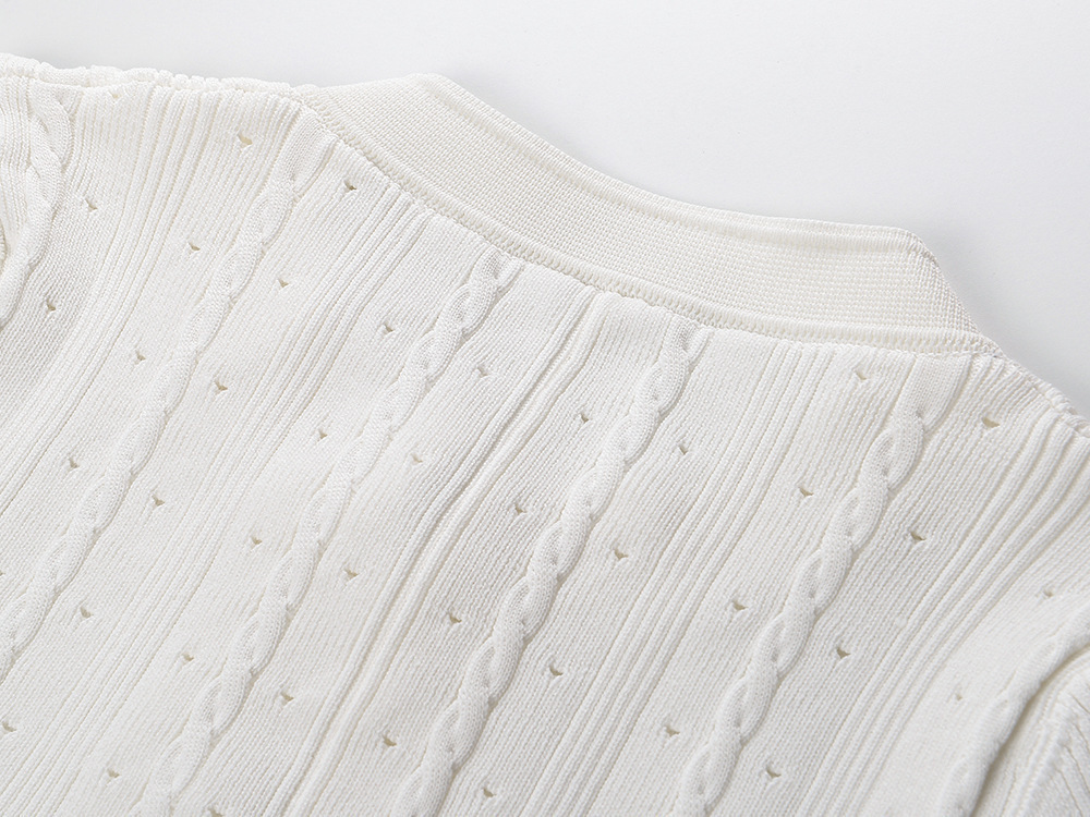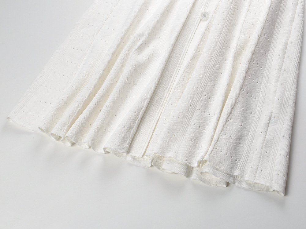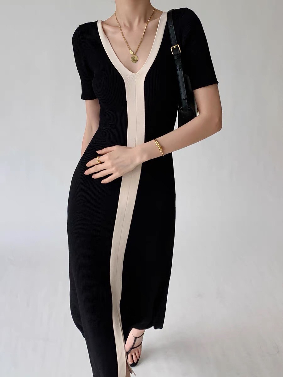 국경 간 우아한 둥근 목 반팔 니트 원피스 유행 버튼 할로우 아웃 긴 원피스 슬림 핏 타이트 허리 슬리밍 원피스스토어 가기