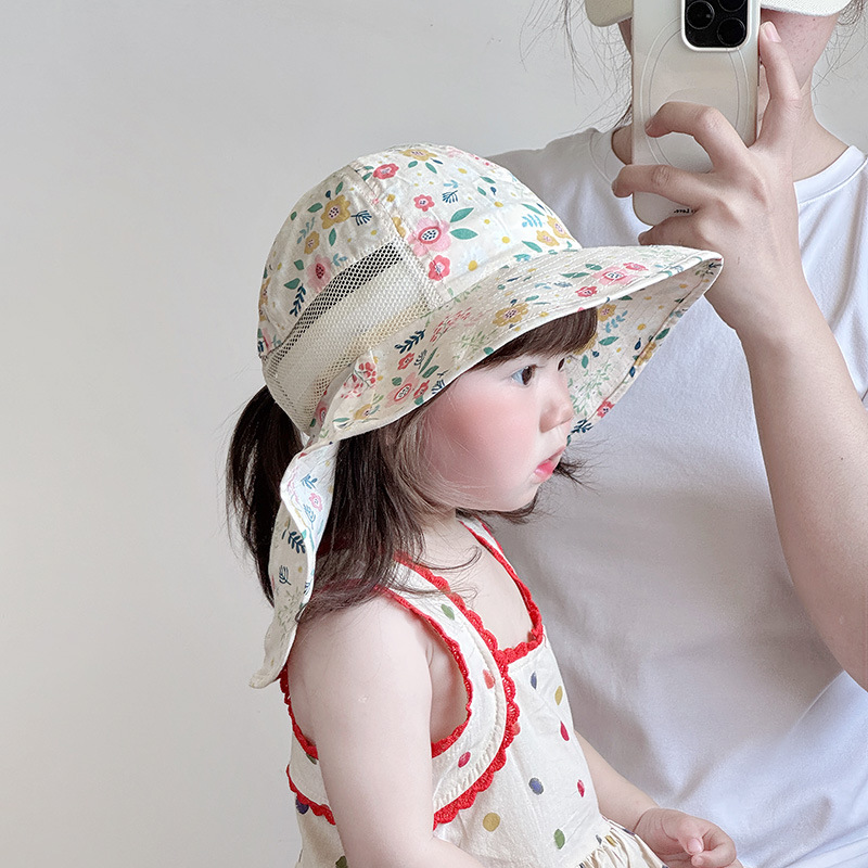 한국 소녀 모자 여름 얇은 통기성 메쉬 햇빛 햇살 큰 모자 브림 목도리 모자 아기 소녀 어부 모자