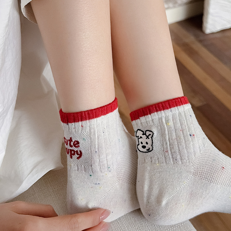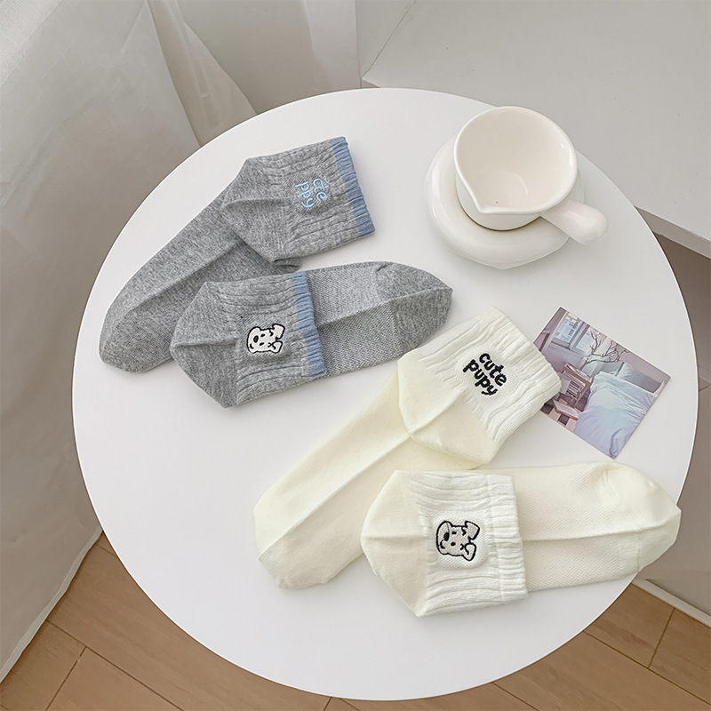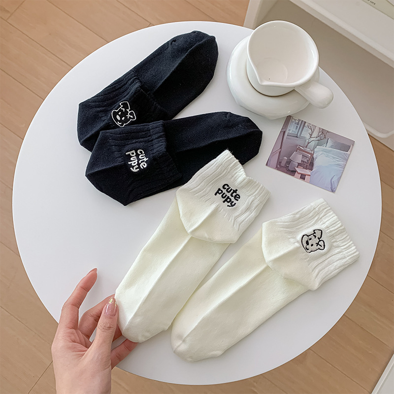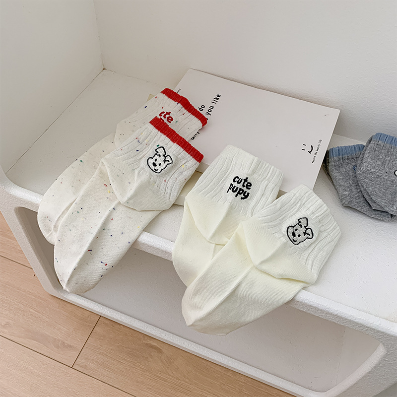 여성용 양말 봄 여름 한국 스타일 ins 스타일 자수 만화 강아지 문자 AB 스타일 코마면 양말 면양말