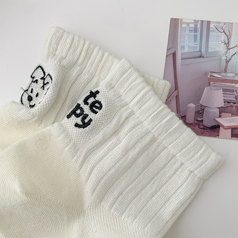 여성용 양말 봄 여름 한국 스타일 ins 스타일 자수 만화 강아지 문자 AB 스타일 코마면 양말 면양말스토어 가기