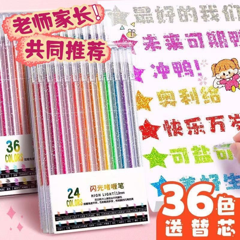 젤 빛나는 빛나는 컬러 반짝이 펜 학생 손 계정 펜 손 계정 특수 어린이 형광펜 마커 펜