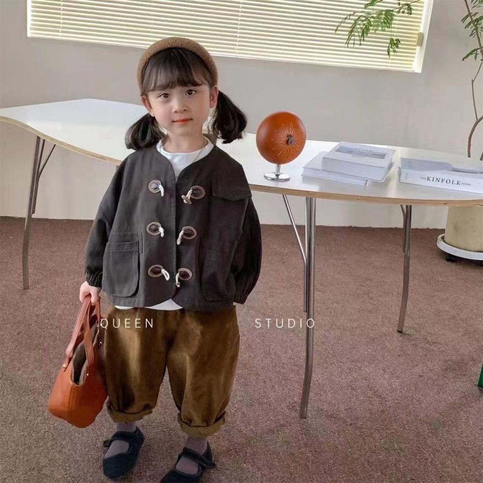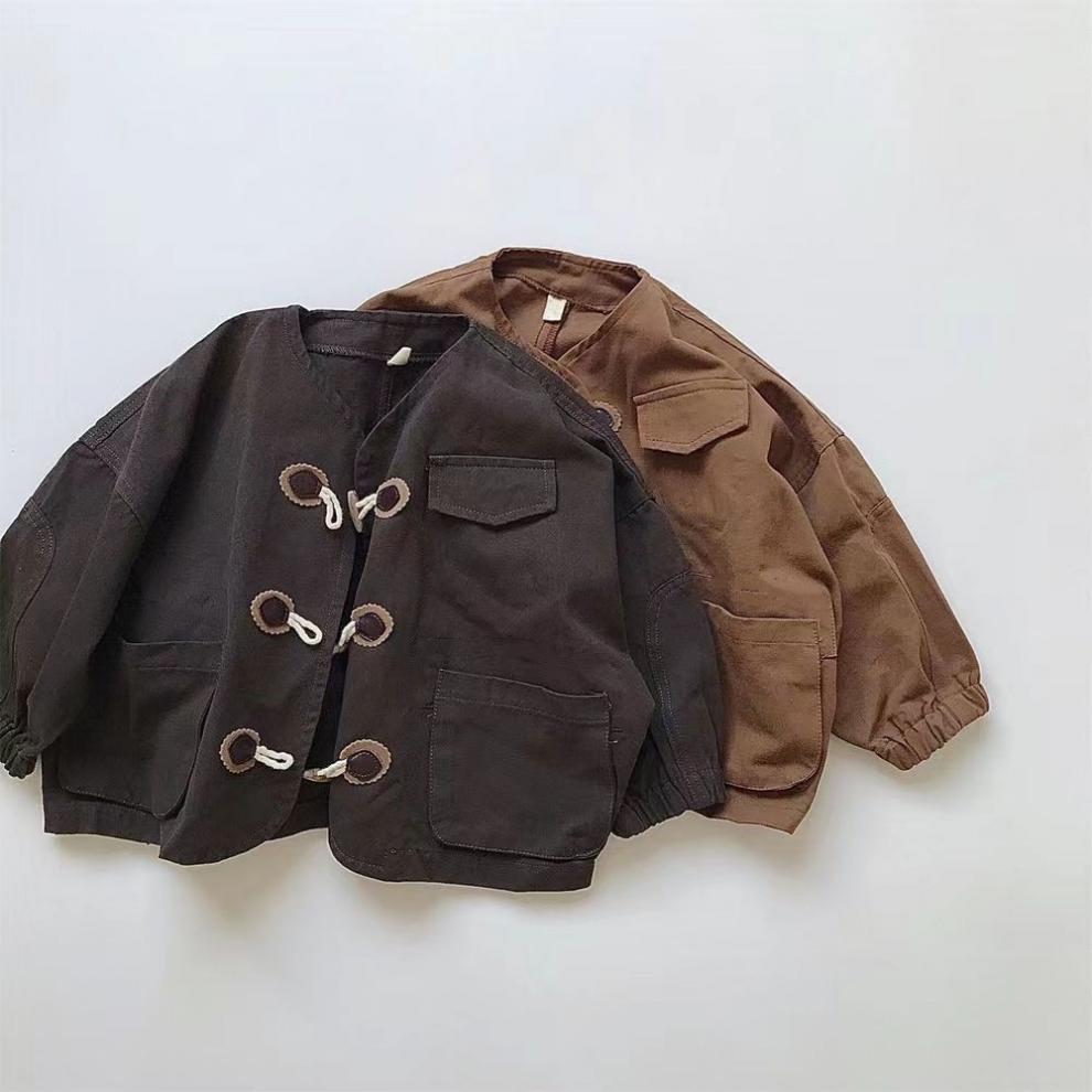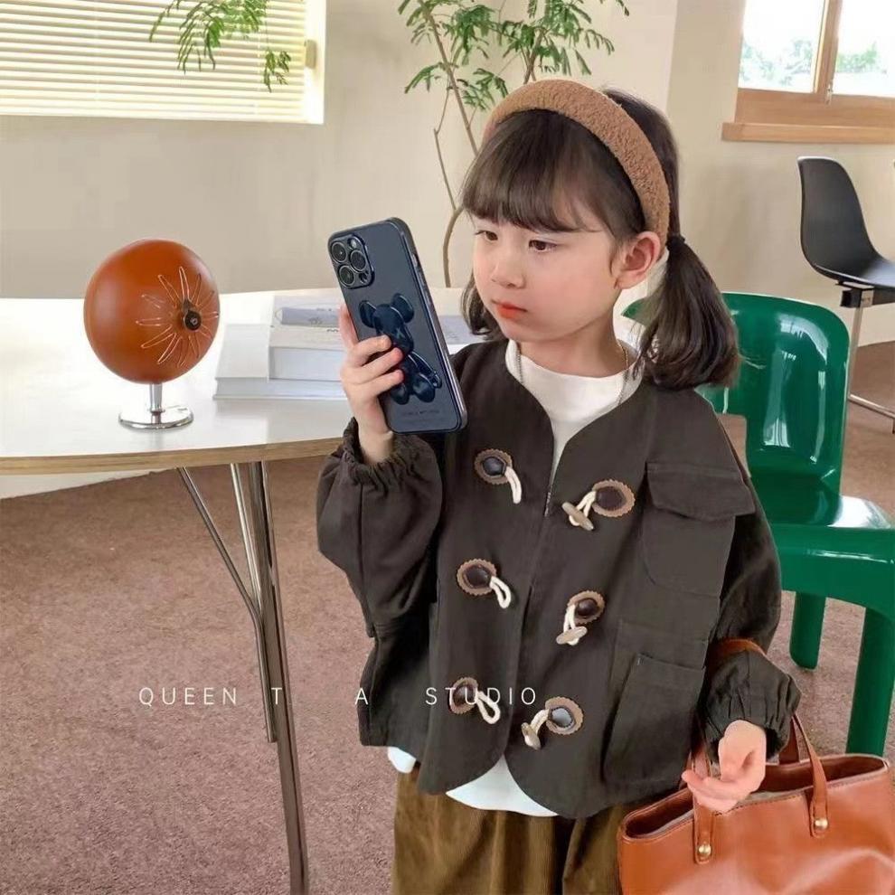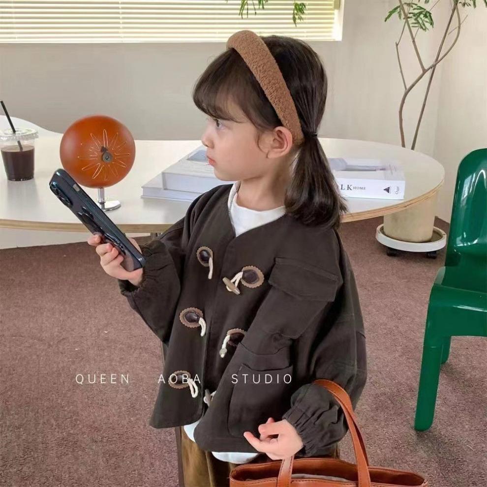 2025 가을 새로운 한국 스타일 소녀 솔리드 컬러 혼 버튼 재킷 아기 소년 캐주얼 작업복 긴팔 재킷 탑스토어 가기