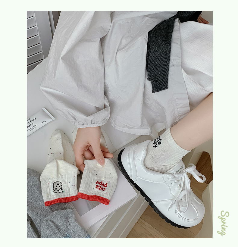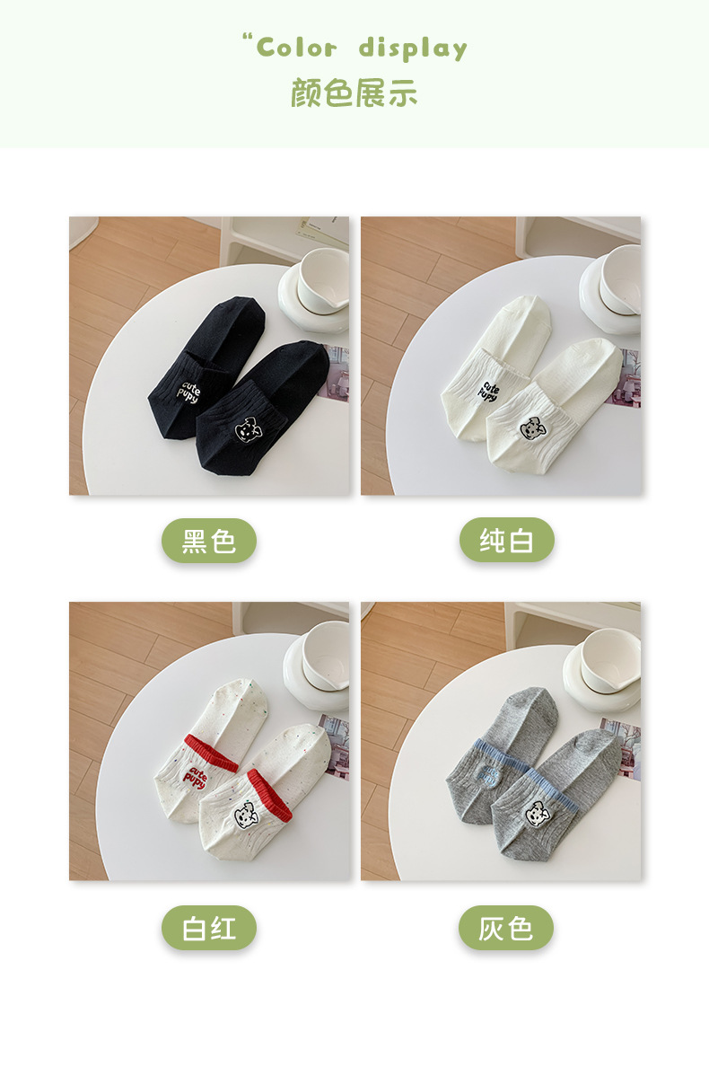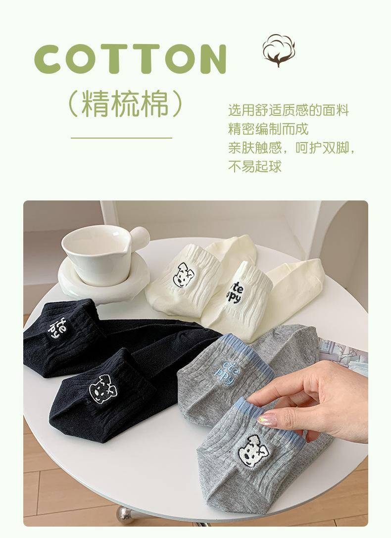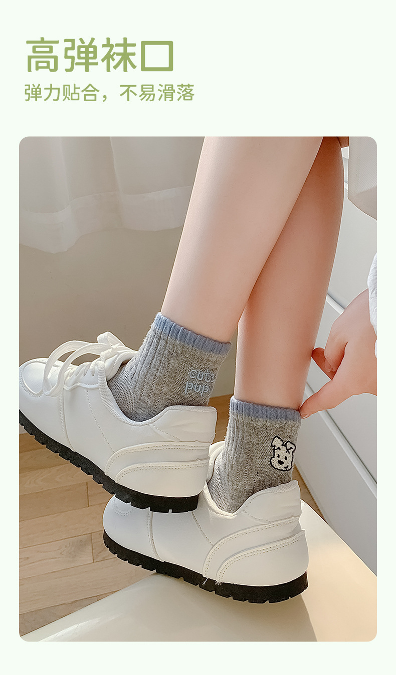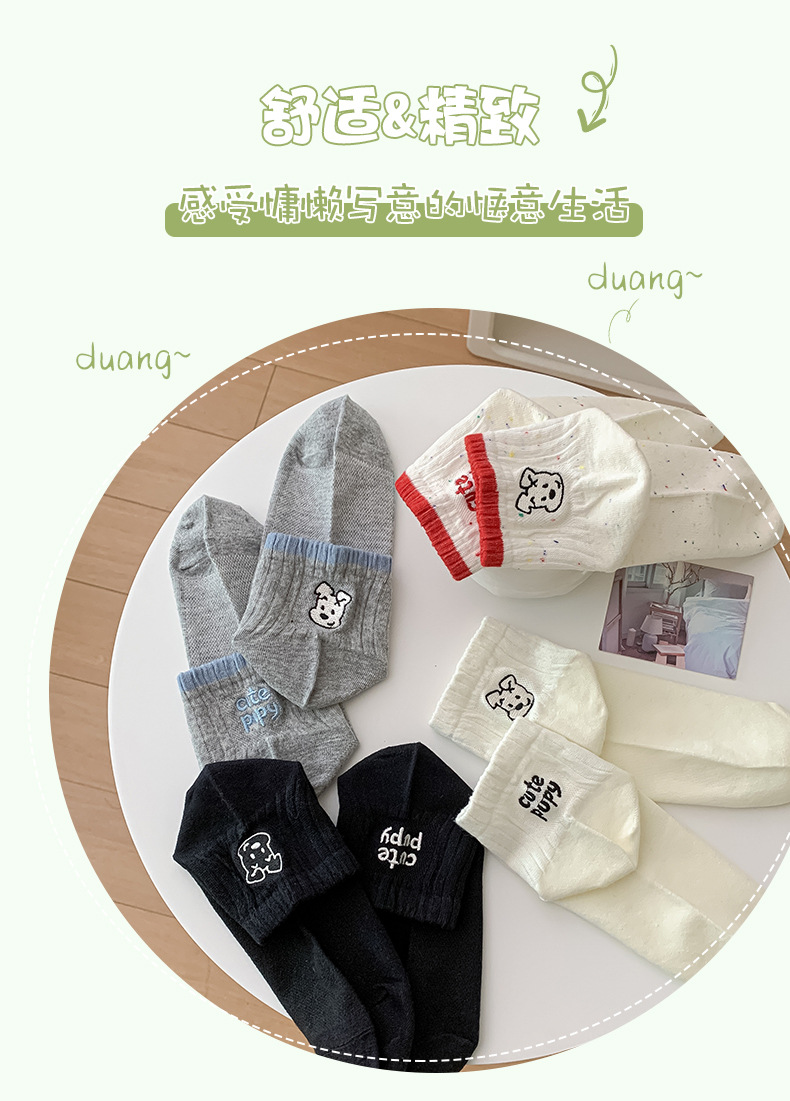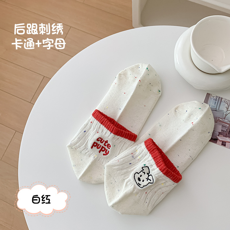 흰색 양말 여성 짧은 양말 여름 얇은 귀여운 만화 일본 ins 유행 강아지 아이디어 거즈 메쉬 통기성