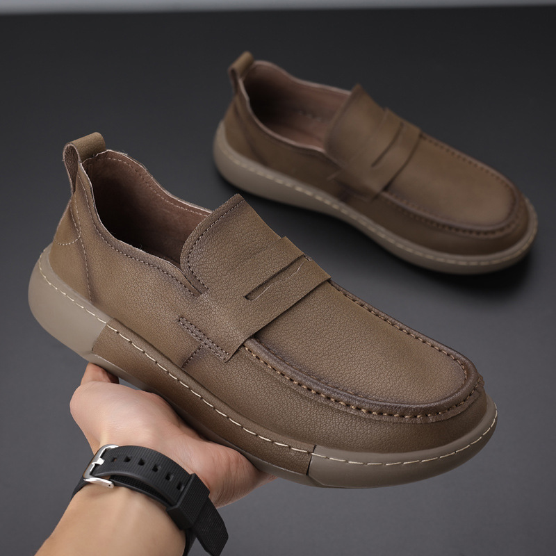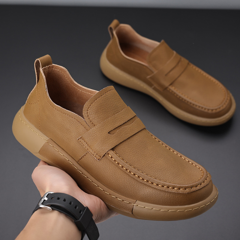 2025 봄과 가을 캐주얼 신발 부드러운 표면 레트로 간단한 로퍼 두꺼운 싱글 툴링 신발 트렌디 한 로우 탑 캐주얼 신발 남성용