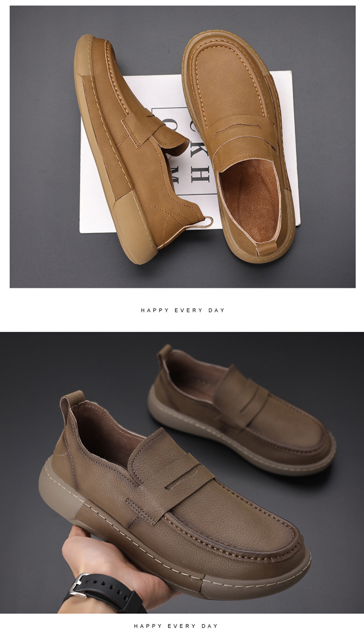 2025 봄과 가을 캐주얼 신발 부드러운 표면 레트로 간단한 로퍼 두꺼운 싱글 툴링 신발 트렌디 한 로우 탑 캐주얼 신발 남성용스토어 가기
