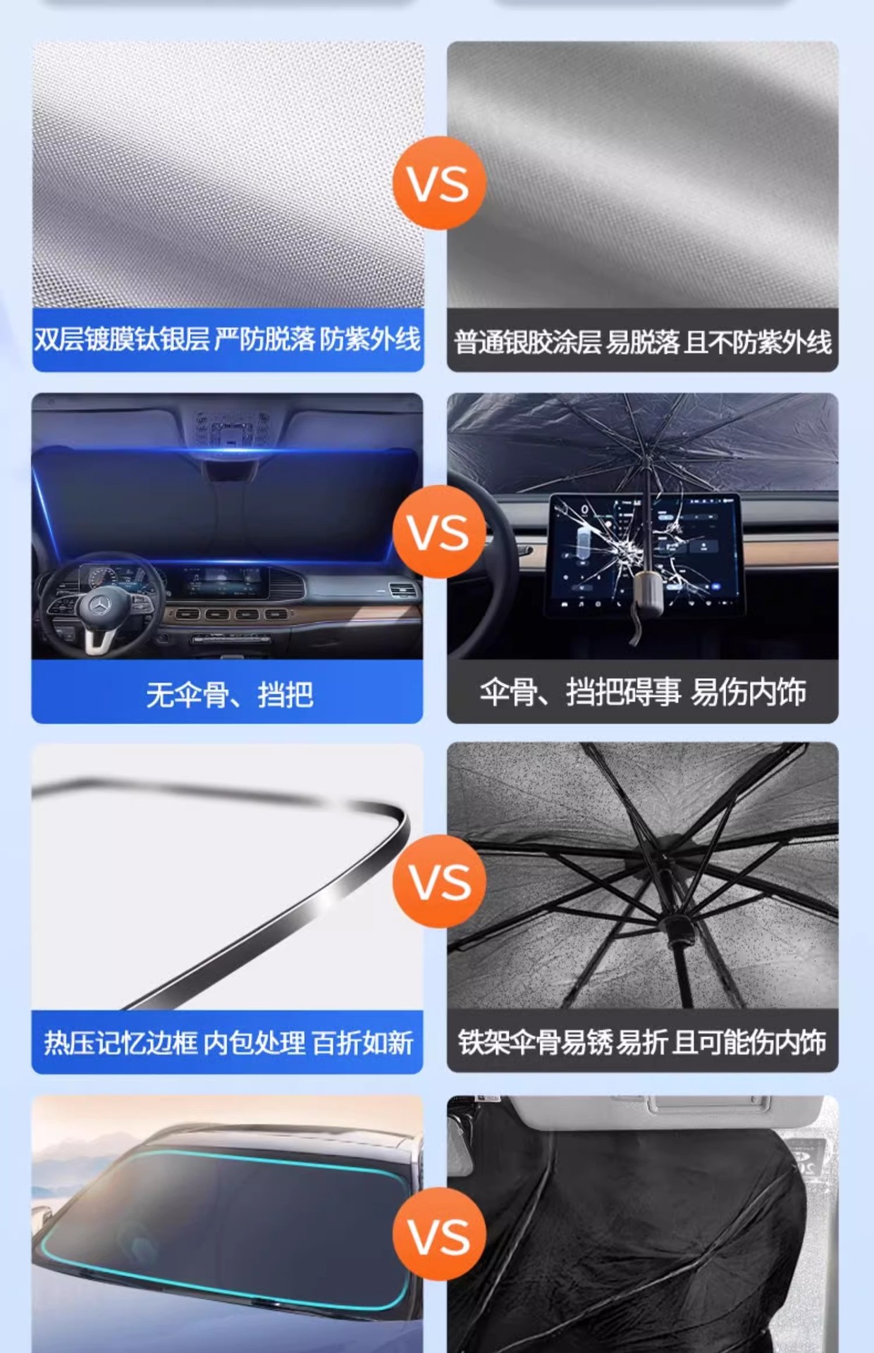 자동차 태양 바이저 실버 코팅 태양 바이저 더블 링 티타늄 실버 프론트 바이저 여름 태양 보호 및 단열 태양 바이저 접이식 태양 바이저스토어 가기