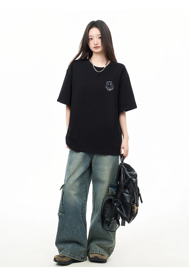 니치 코튼 반팔 티셔츠 여성용 여름 루즈 230g 코튼 통기성 여성 최고 캐주얼 내베이스 셔츠스토어 가기