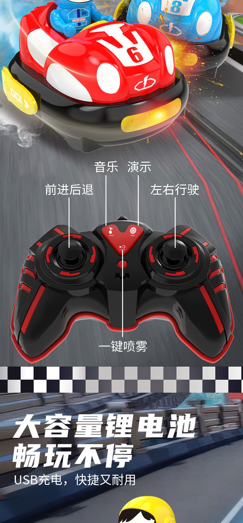 • 원클릭 스프레이 [2인 전투 버전] 재미있는 경쟁 [에그보이 레이서 원격 조종 자동차] 선물 상자