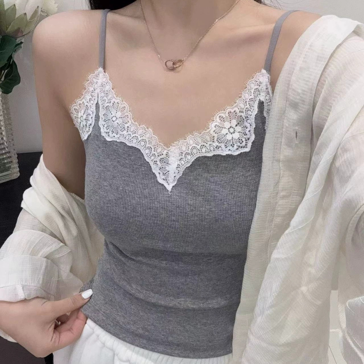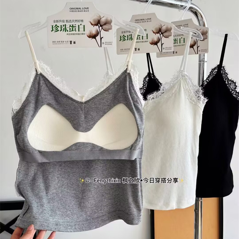 Fengzhixin 레이스 캐미솔 여성용 고정 컵 가슴 패드 민소매 바닥 탑 섹시한 푸시 업 튜브 탑스토어 가기