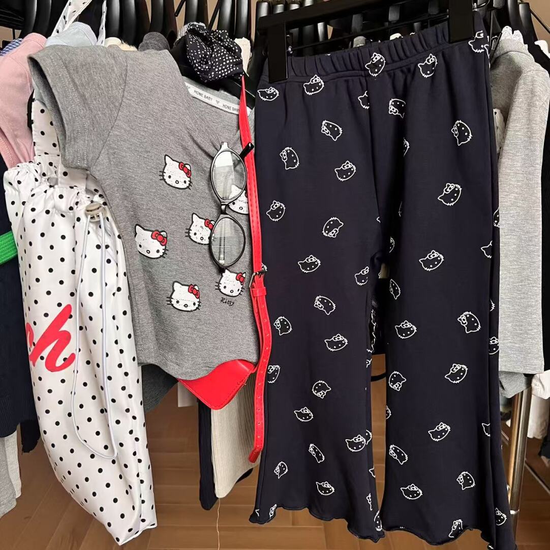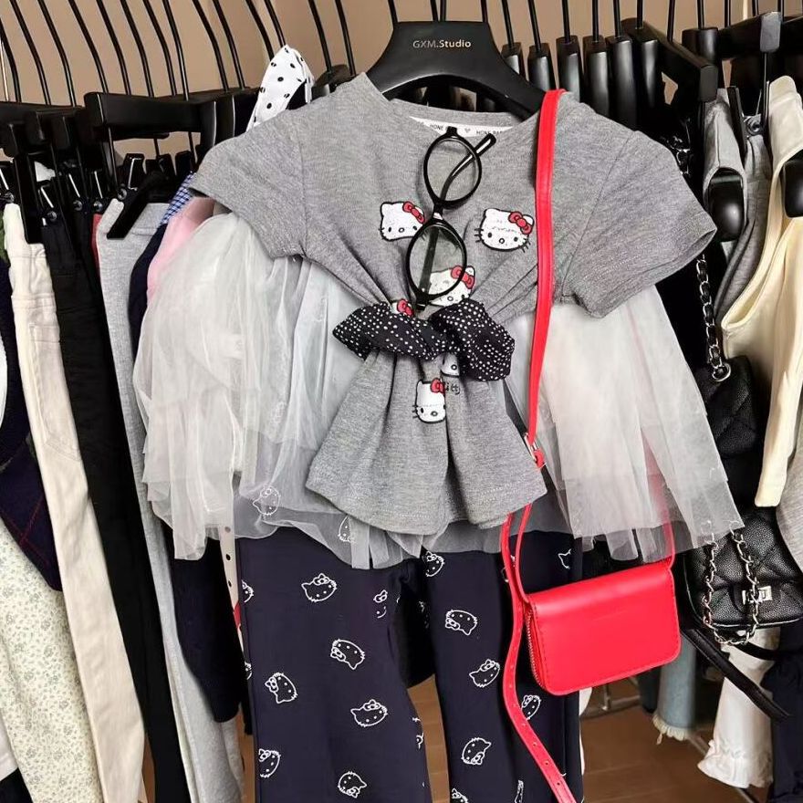 어린이 여름 꽃 바지 2025 여성 아기 새 한국 어린이 착용 귀여운 Kt 얇은 레깅스 인쇄 짧은 소매