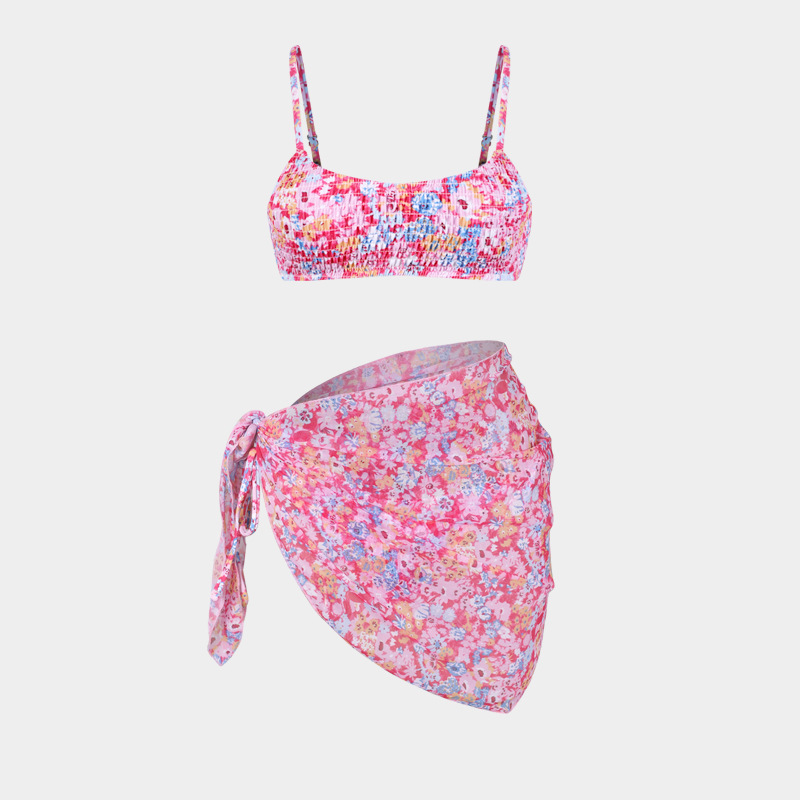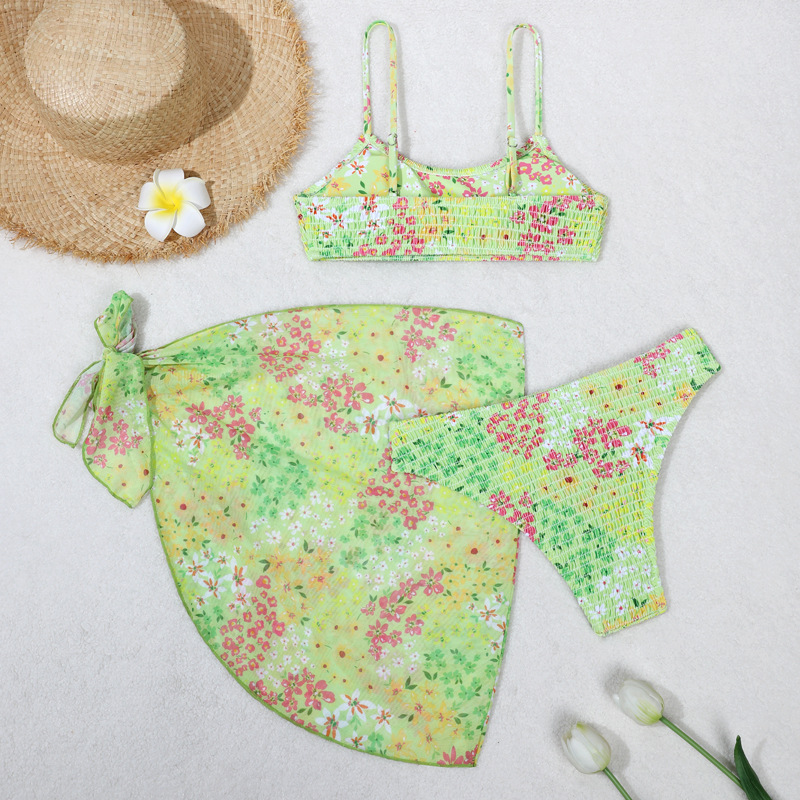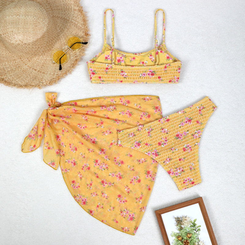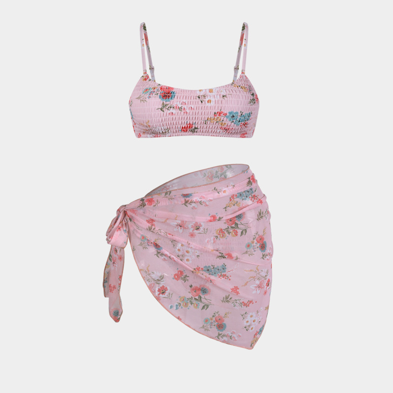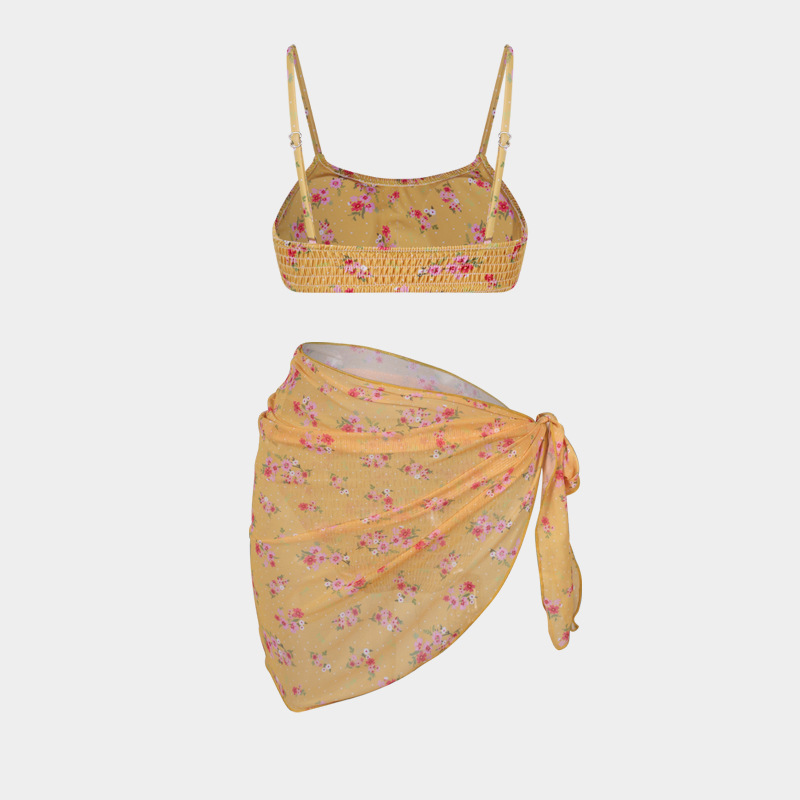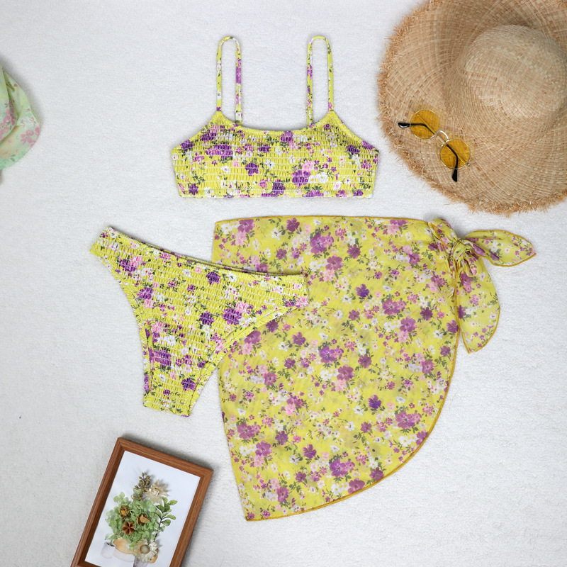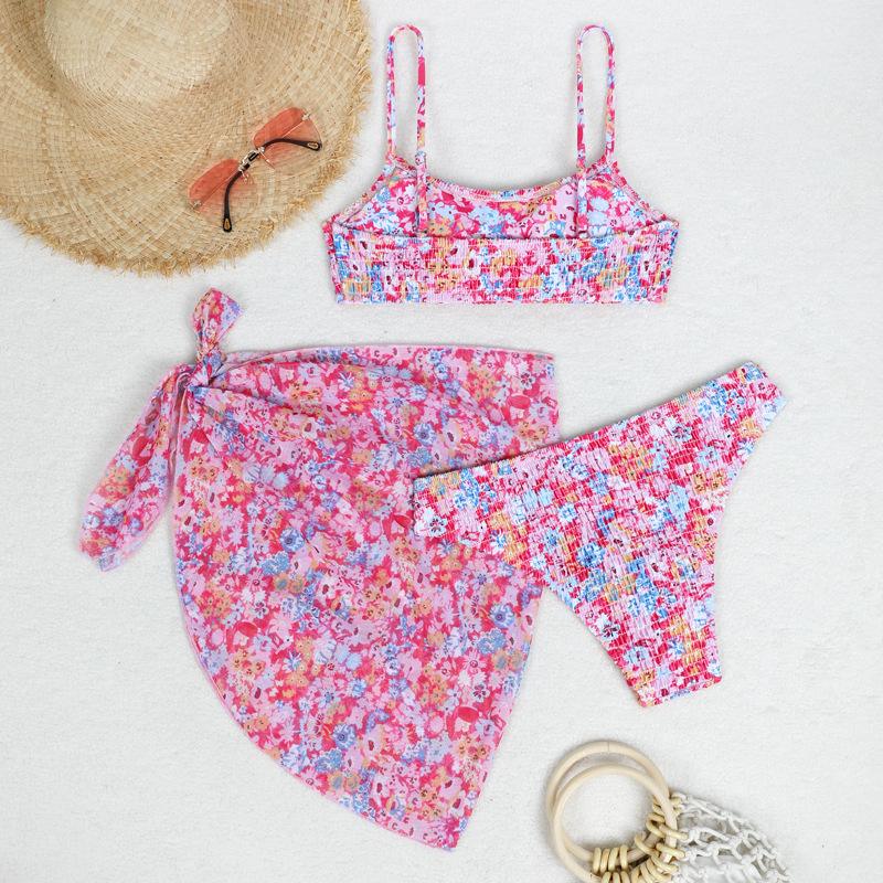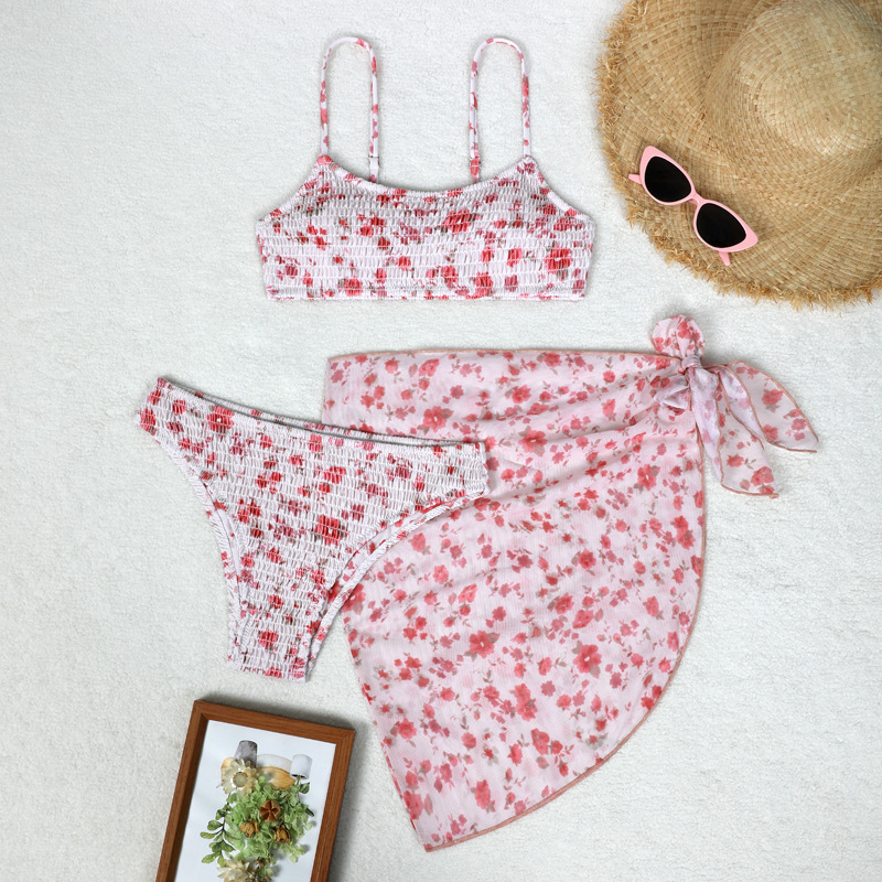 2025 유럽과 미국의 스플릿 비키니 3피스 세트 크로스보더 아마존 섹시한 꽃무늬 스커트 비치 비키니 수영복스토어 가기