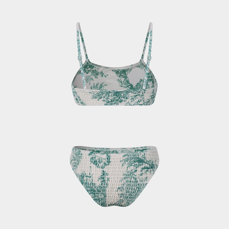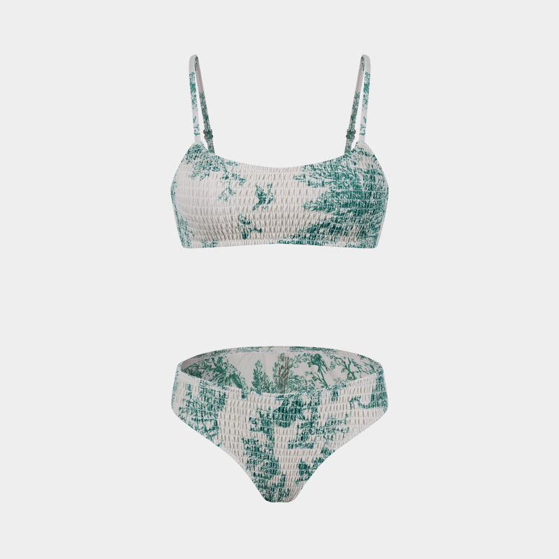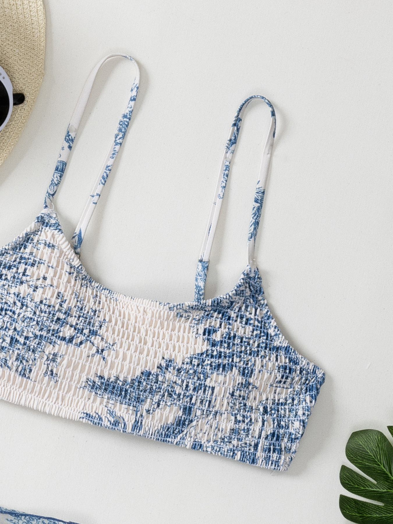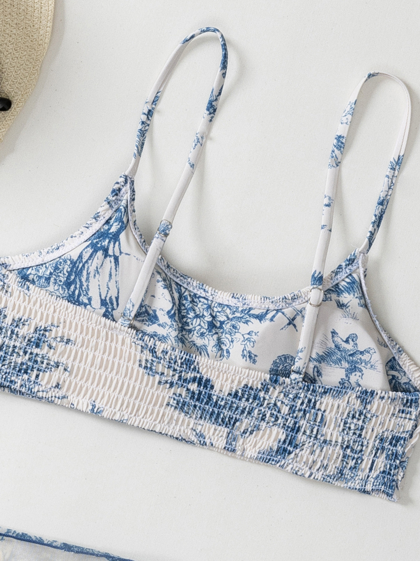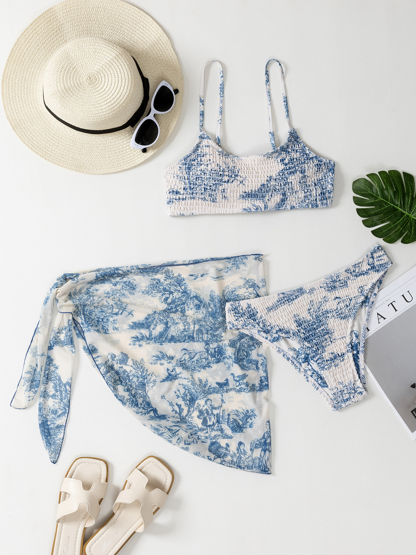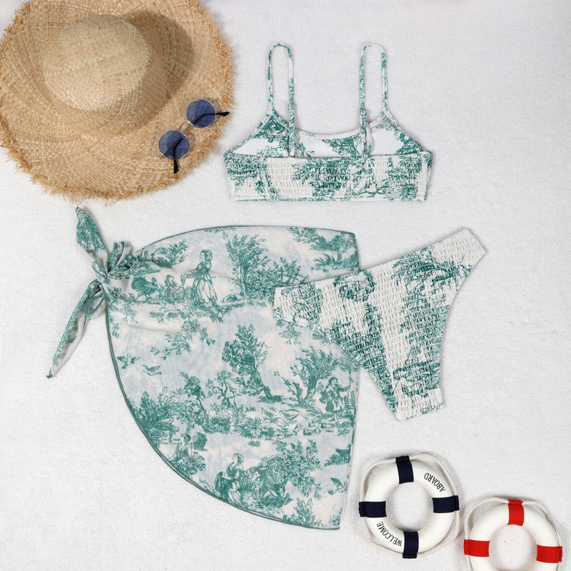 亚马逊跨境欧美比基尼三件套泳衣防晒网纱罩衫印花沙滩度假游泳衣