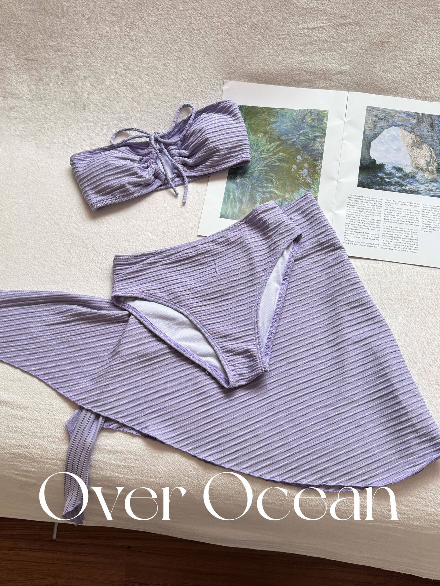 2025 새로운 수영복 여성용 바이올렛 하이 엔드 작은 가슴 모이기 3 피스 세트 해변 리조트 핫 스프링 비키니스토어 가기