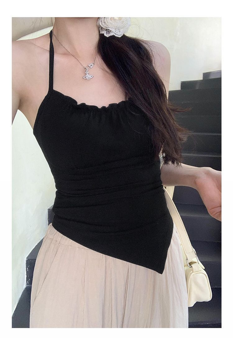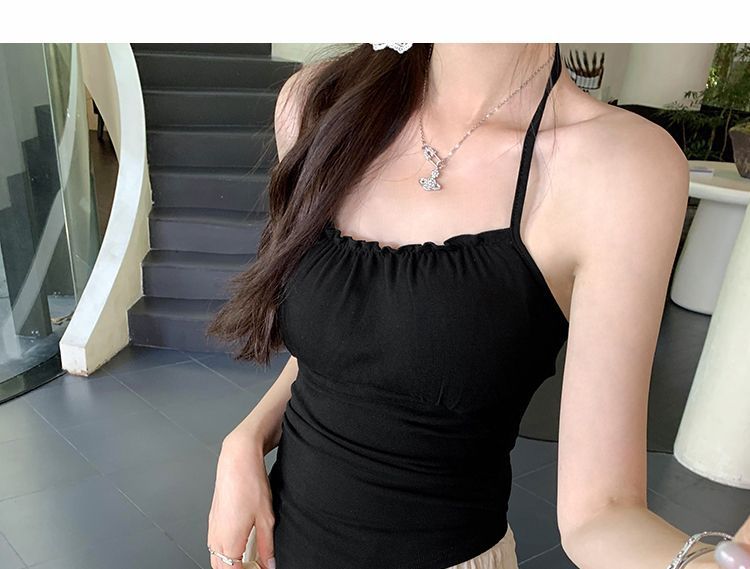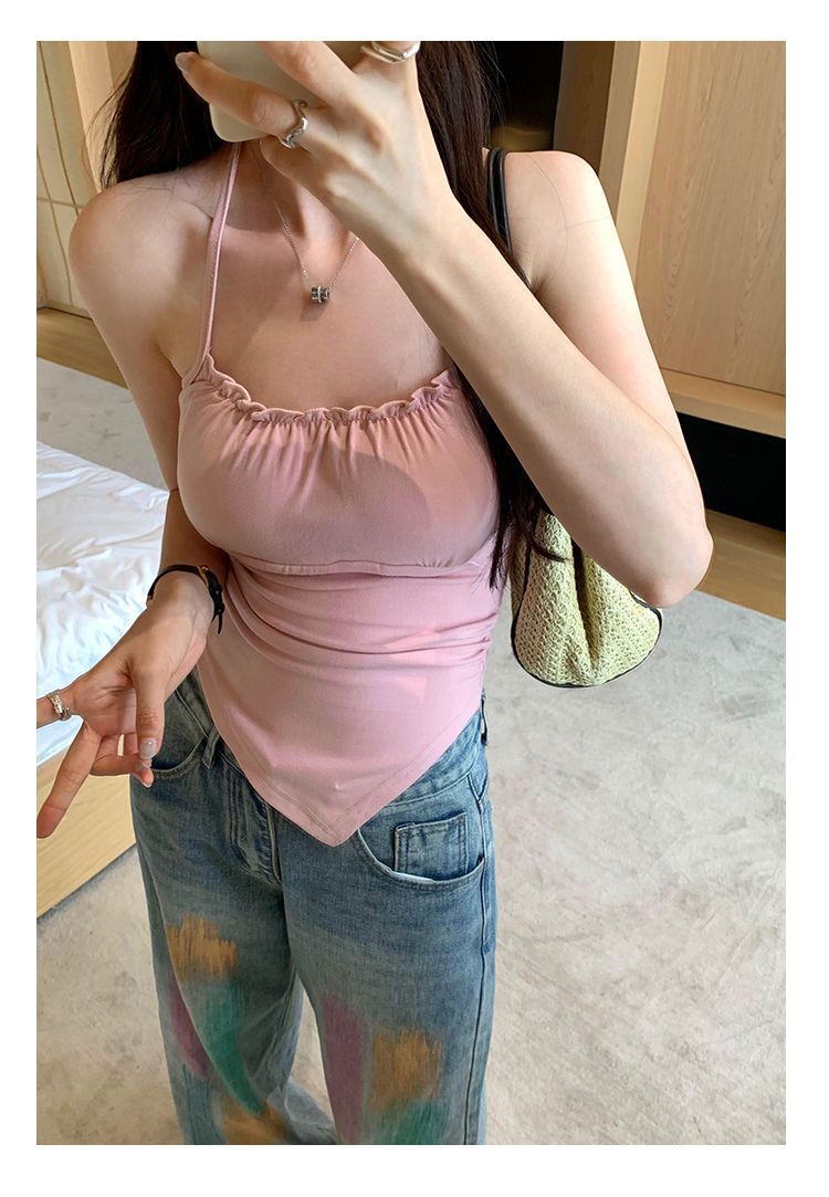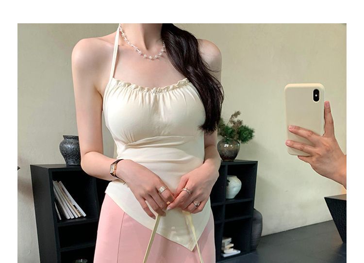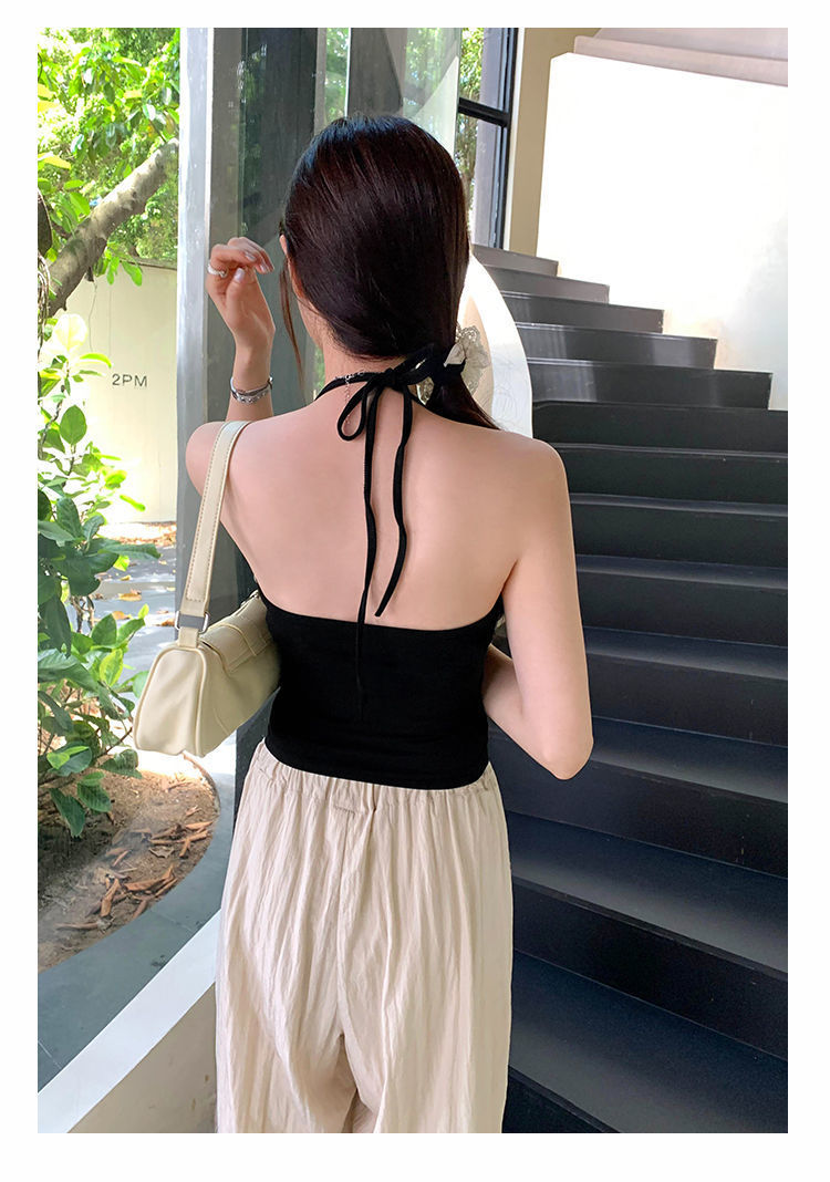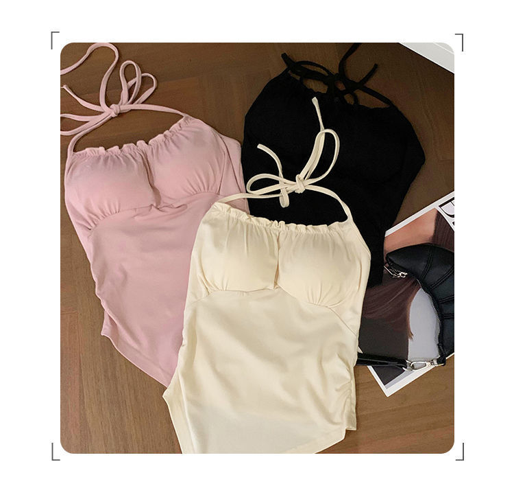 국경을 넘는 도매 달콤하고 섹시한 2025 레이스업 홀터넥 슬리브리스 여성 여름 슬림핏 숏탑스토어 가기