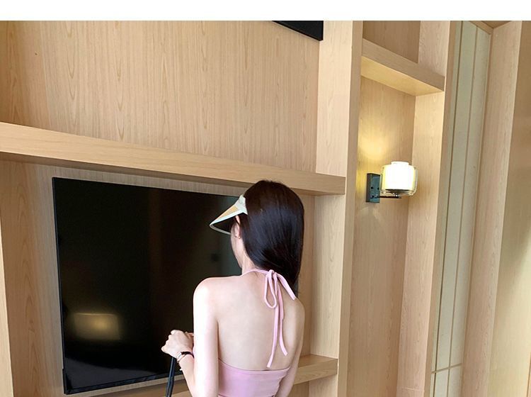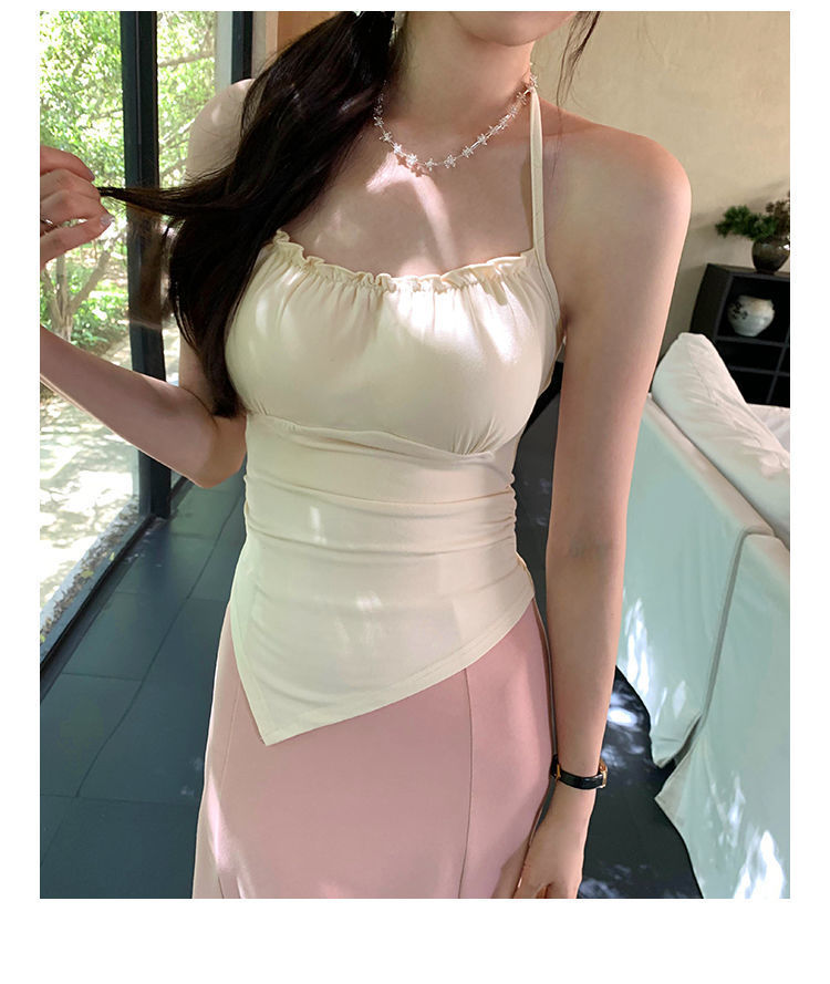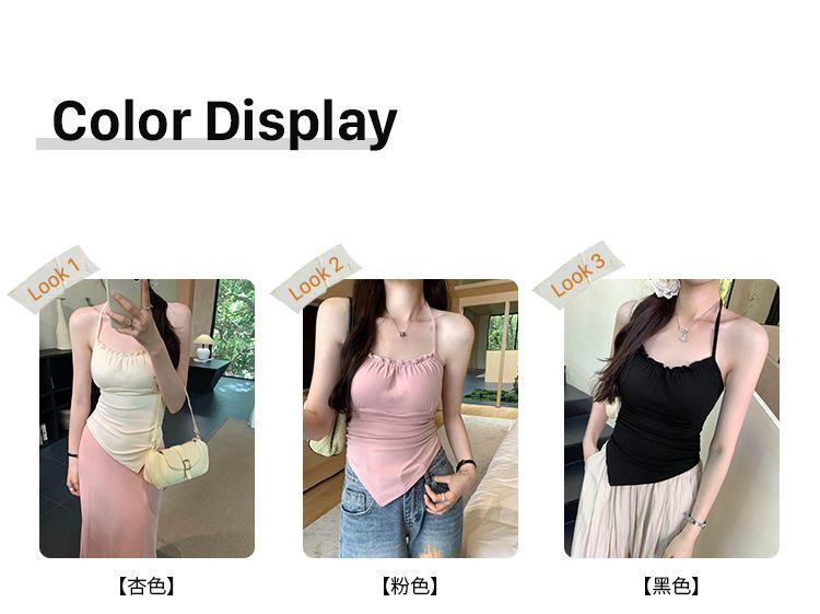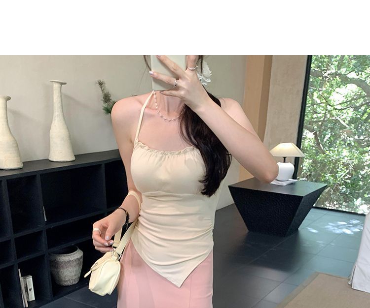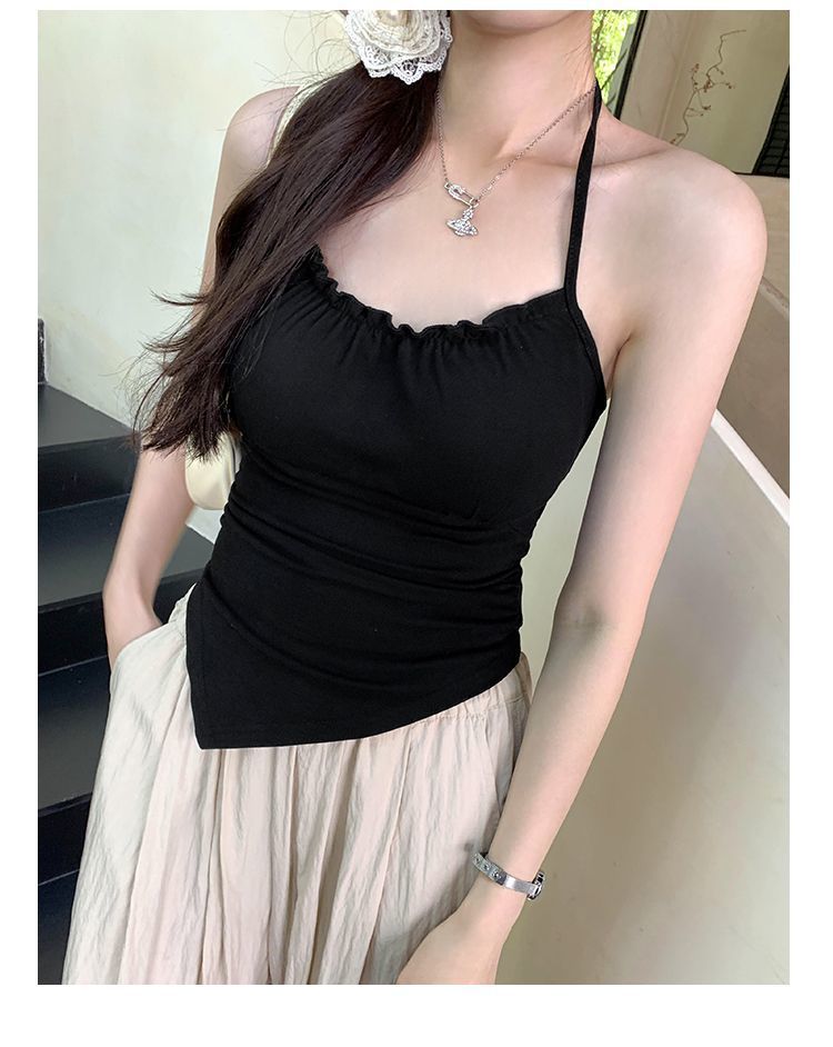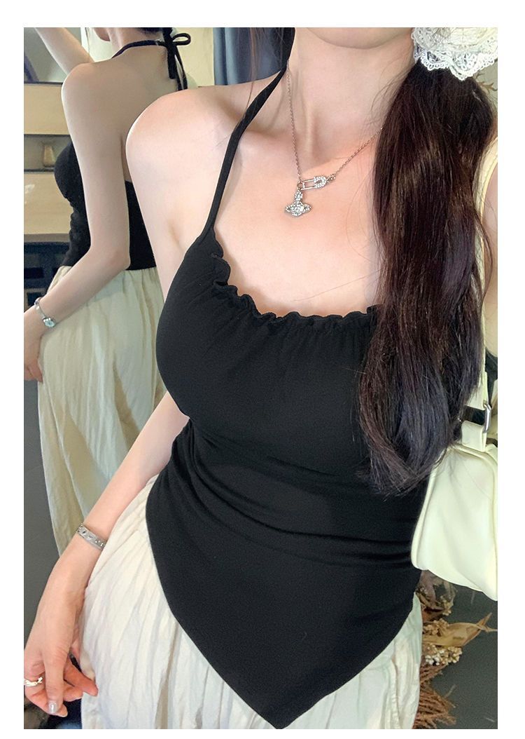 국경을 넘는 도매 달콤하고 섹시한 2025 레이스업 홀터넥 슬리브리스 여성 여름 슬림핏 숏탑스토어 가기