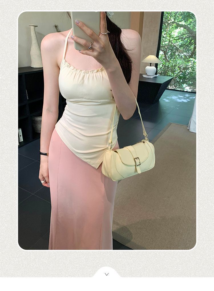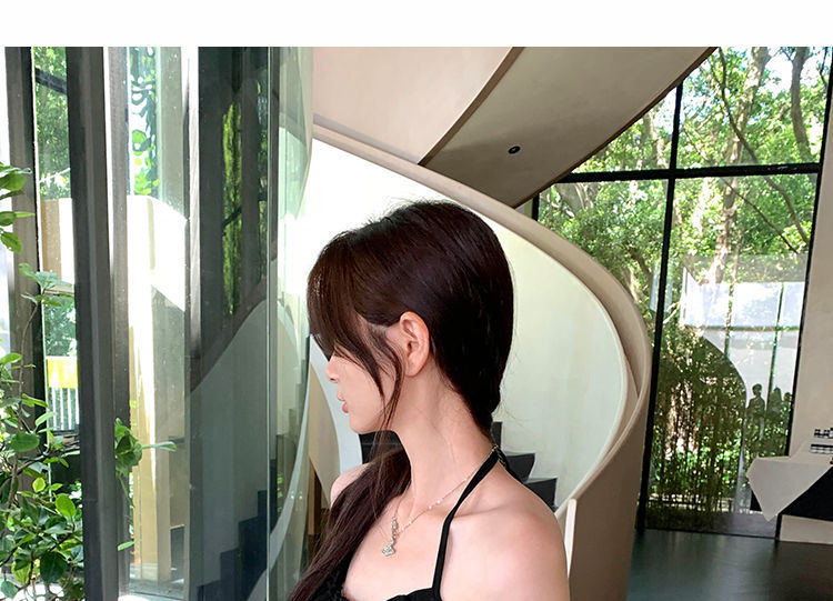국경을 넘는 도매 달콤하고 섹시한 2025 레이스업 홀터넥 슬리브리스 여성 여름 슬림핏 숏탑