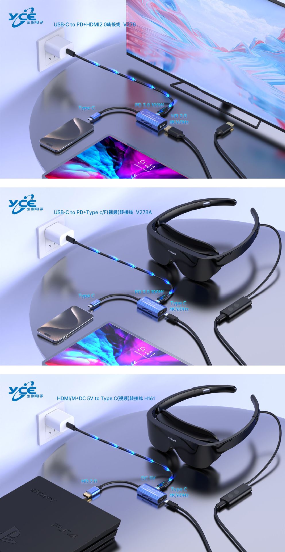 와우 AR 안경 연결 케이블 XREAL HUB 로키드 에어 VR 안경 변환기 HDMI to TYPE-C