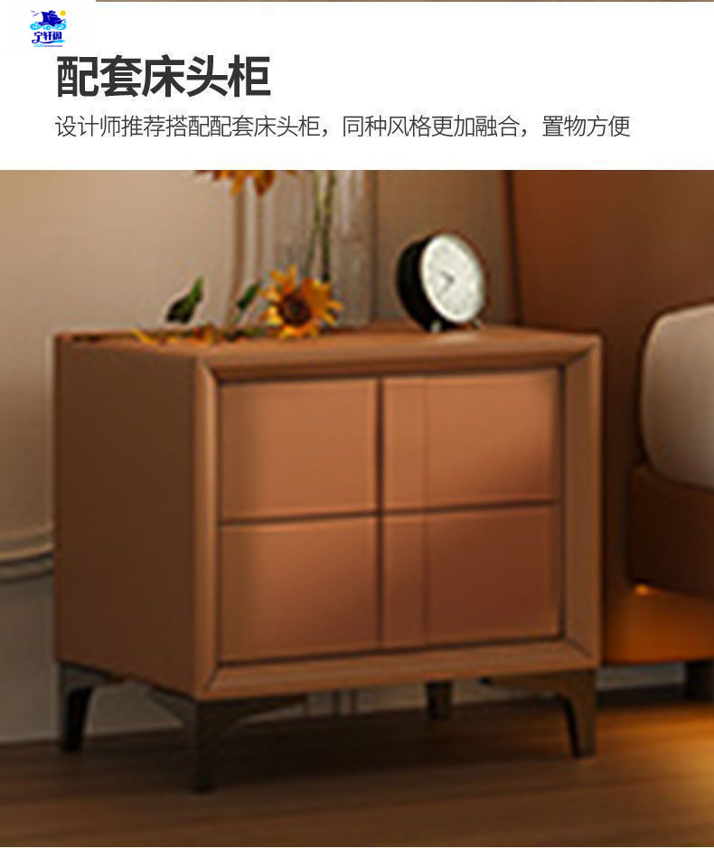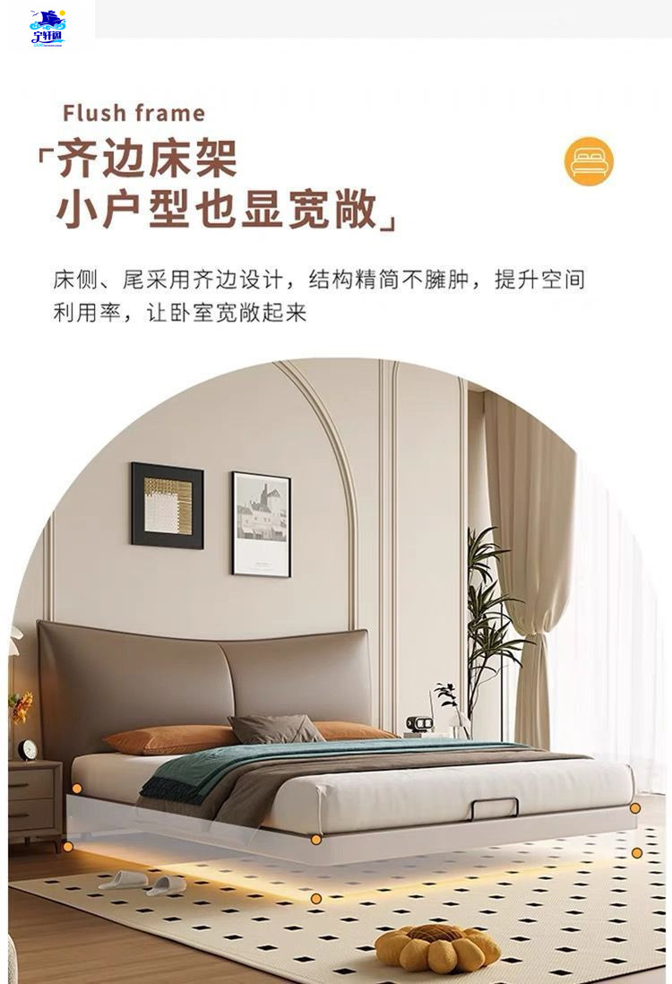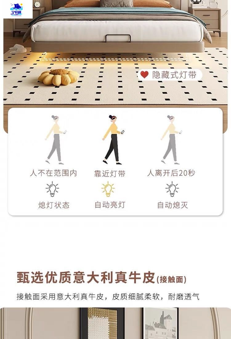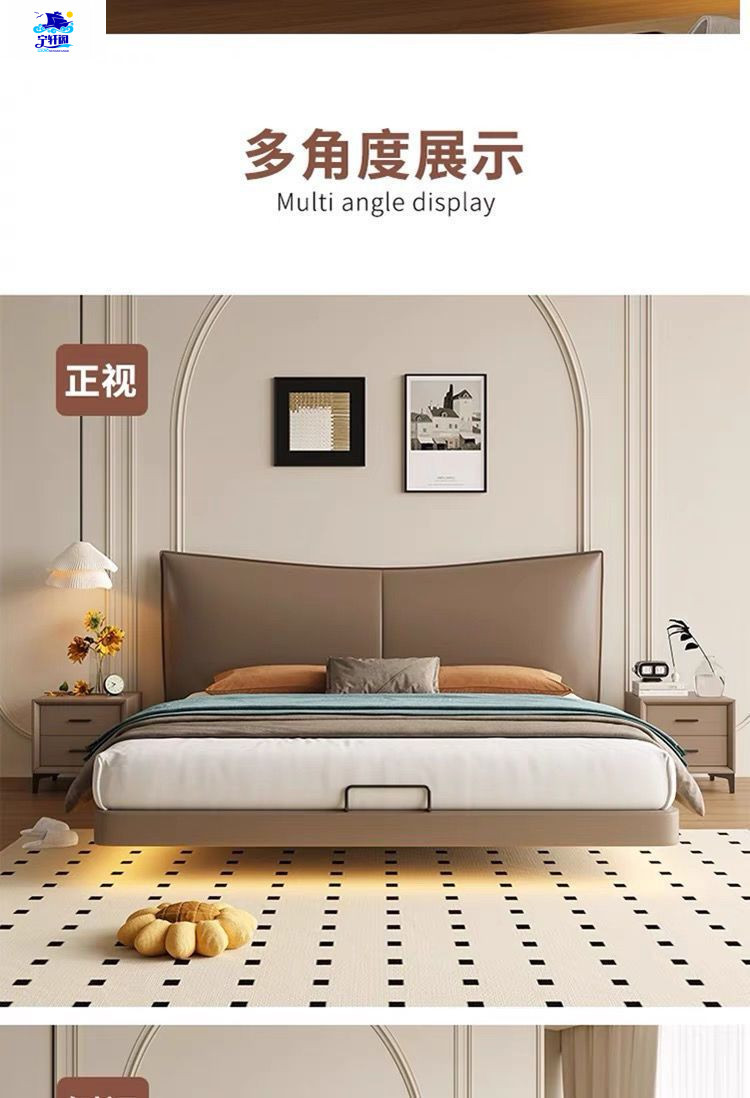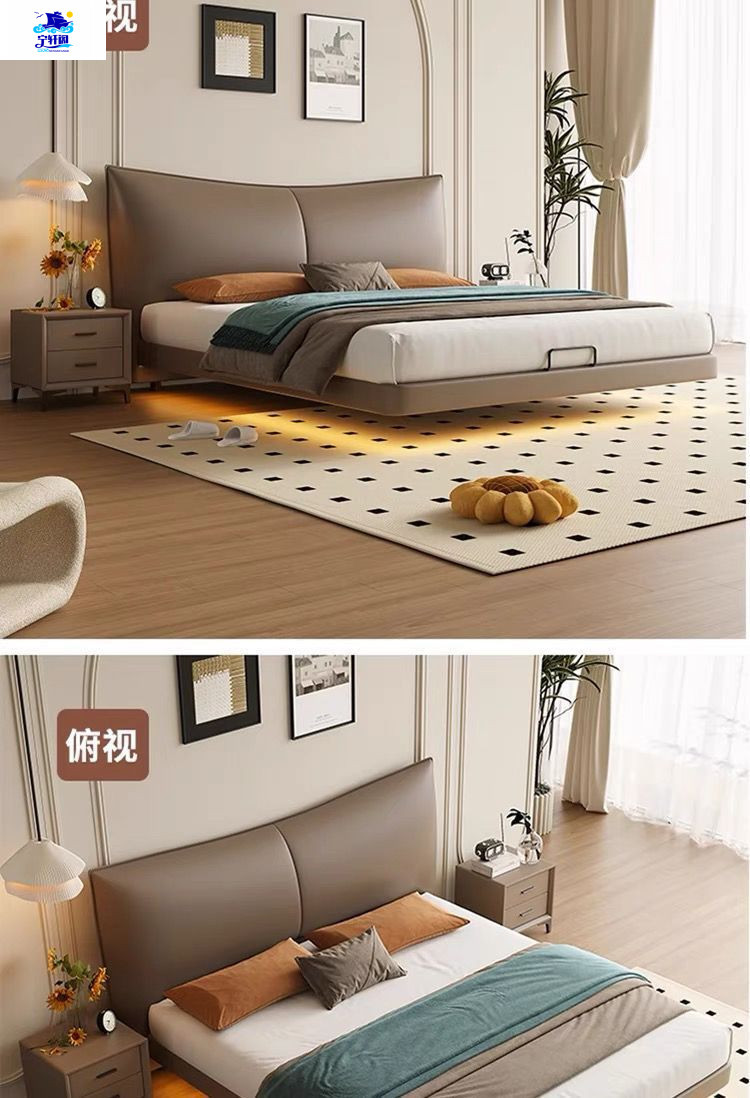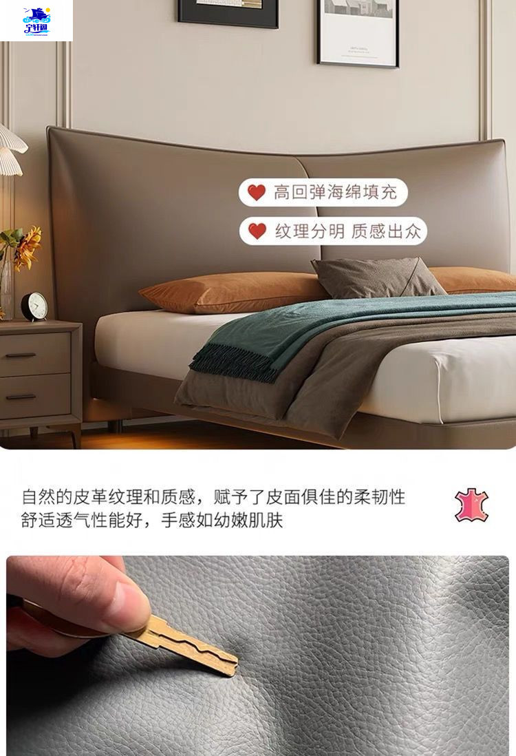 북유럽 스타일의 서스펜션 가죽 침대 현대 간단한 하이 엔드 라이트 럭셔리 미니멀리스트 마스터 침대 침실 보관 소 가죽 더블 침대스토어 가기