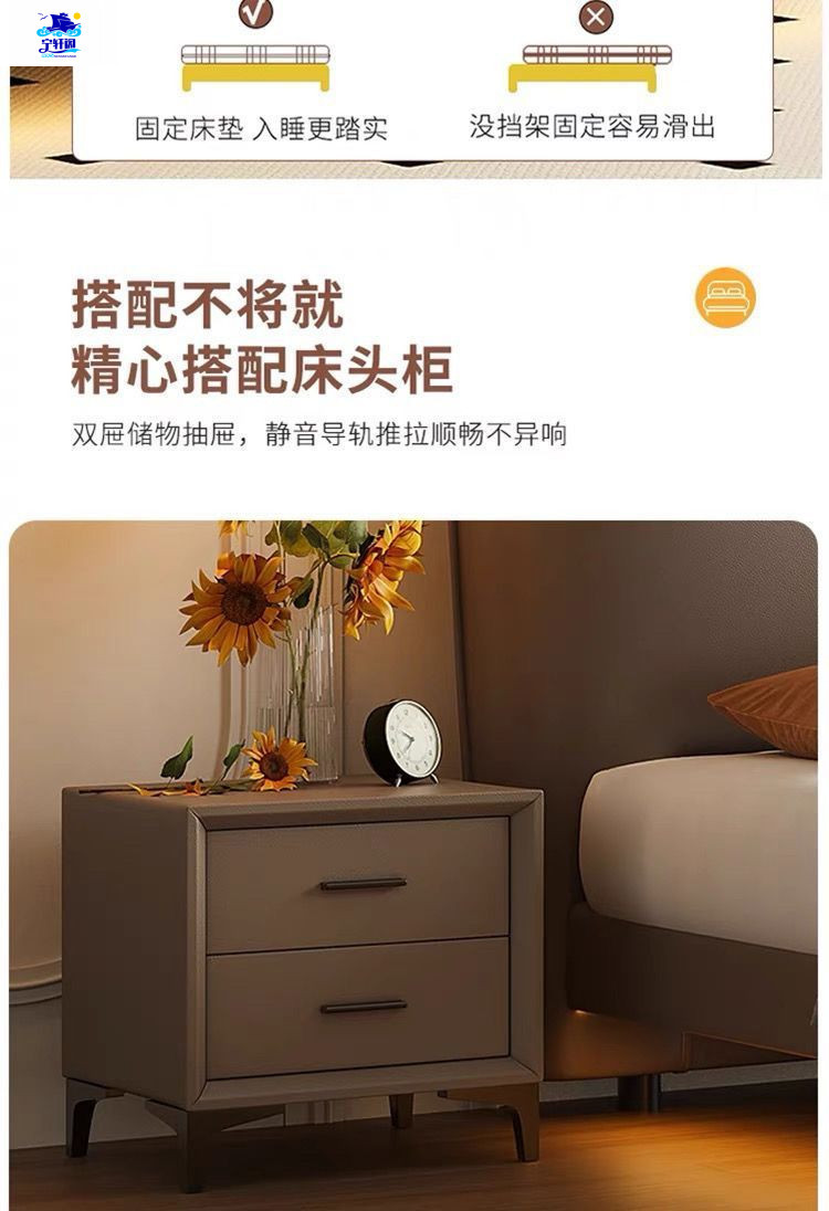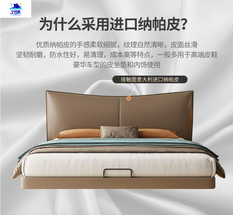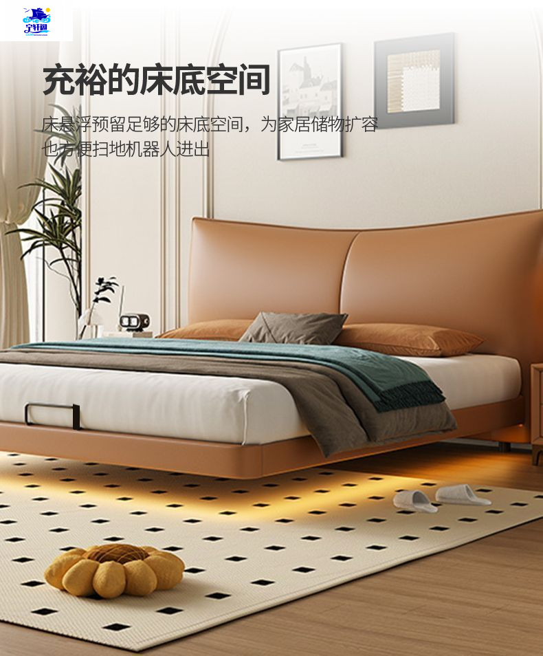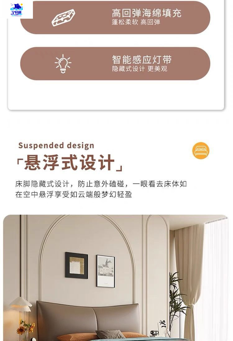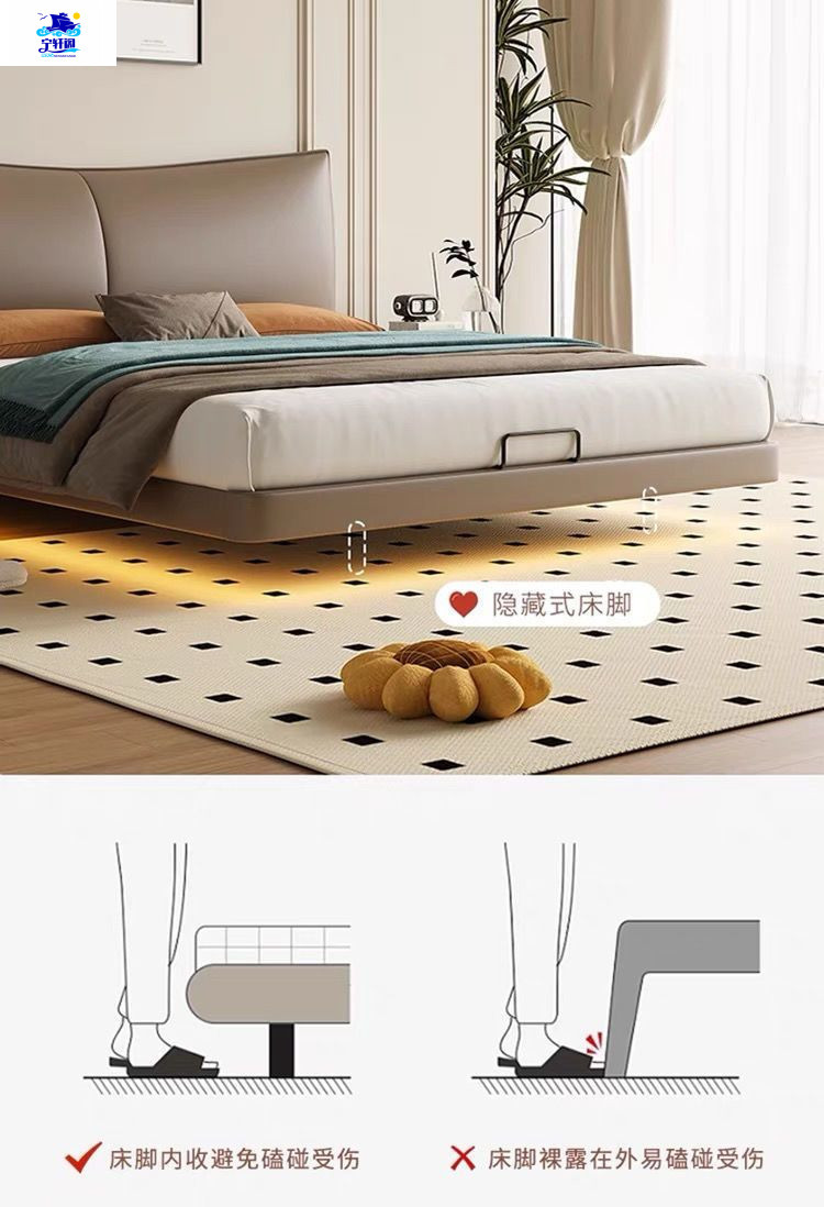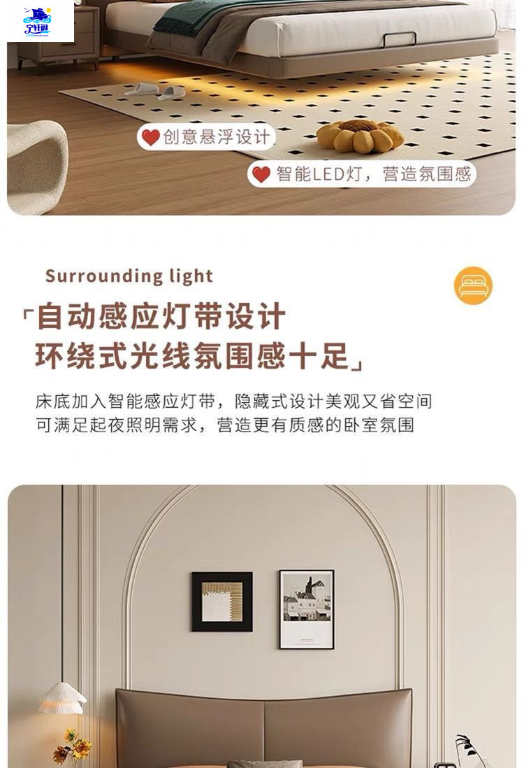 북유럽 스타일의 서스펜션 가죽 침대 현대 간단한 하이 엔드 라이트 럭셔리 미니멀리스트 마스터 침대 침실 보관 소 가죽 더블 침대스토어 가기
