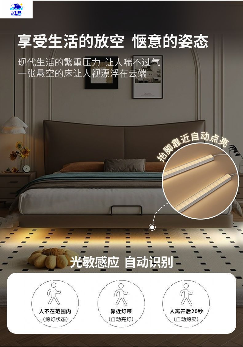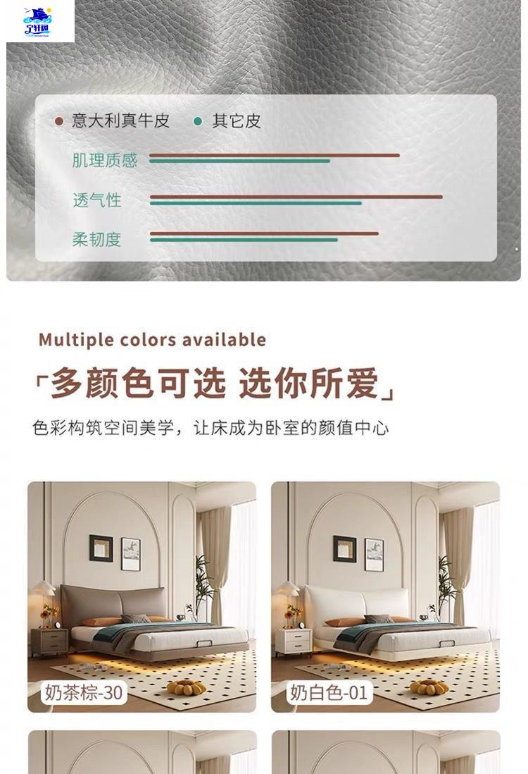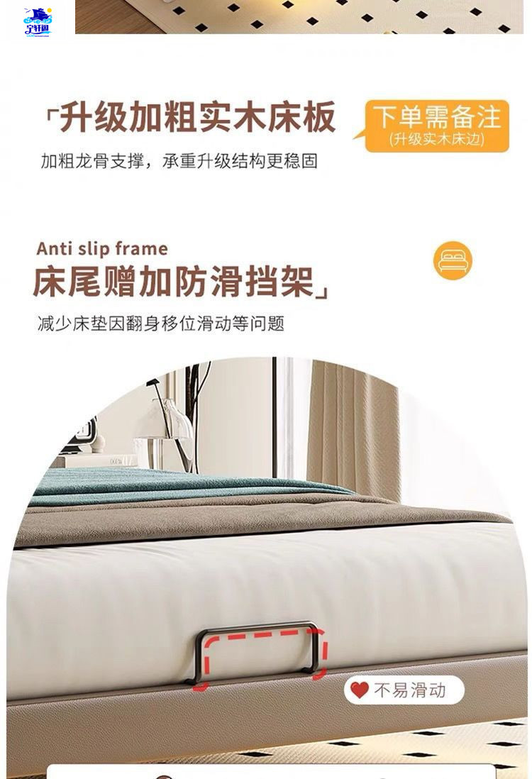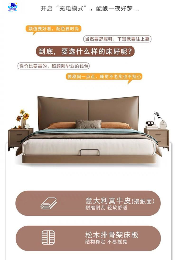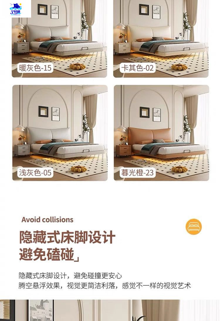 북유럽 스타일의 서스펜션 가죽 침대 현대 간단한 하이 엔드 라이트 럭셔리 미니멀리스트 마스터 침대 침실 보관 소 가죽 더블 침대스토어 가기