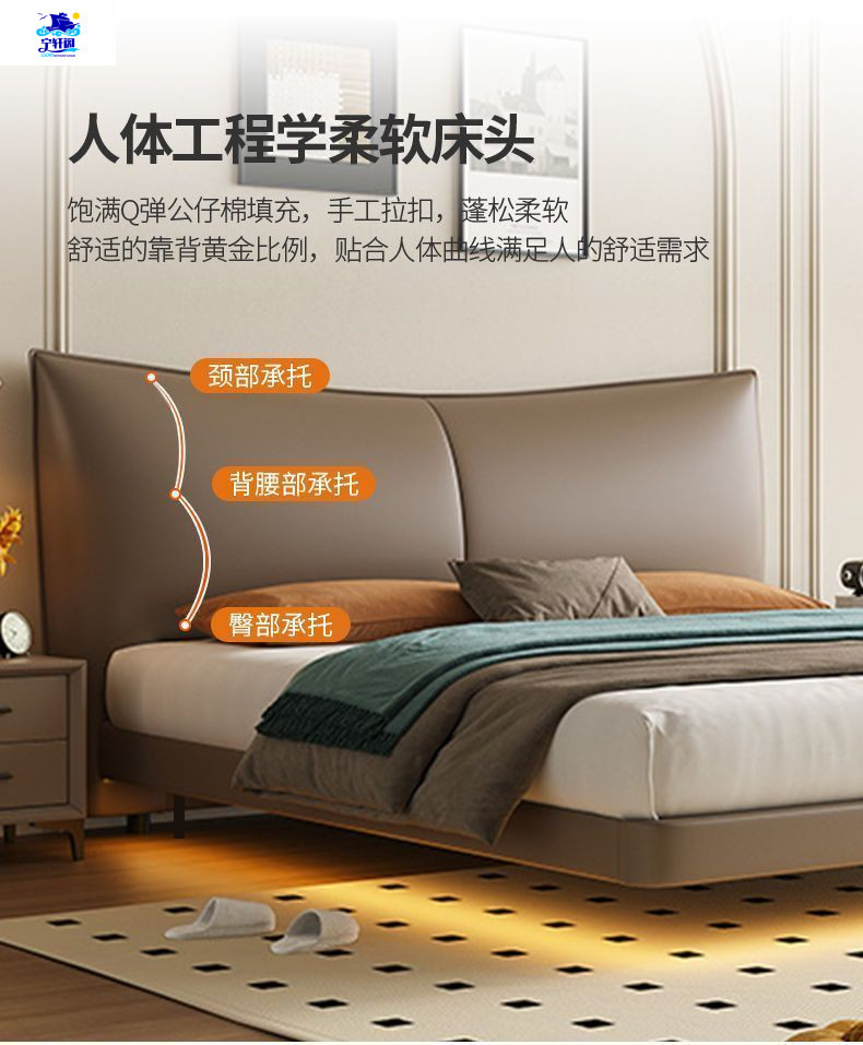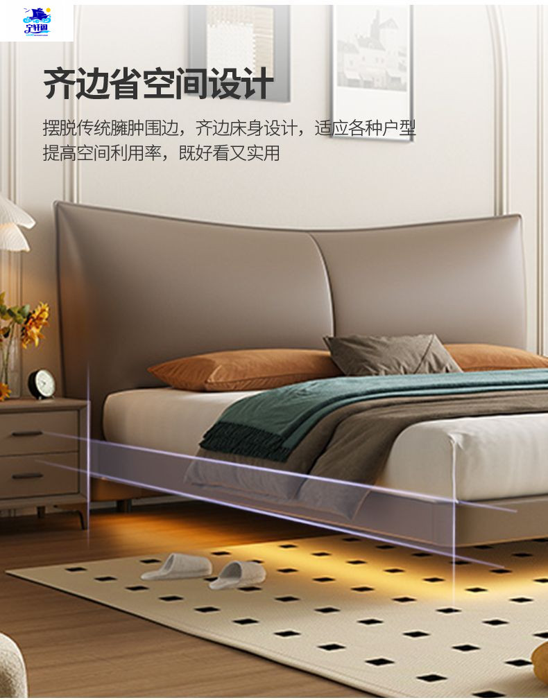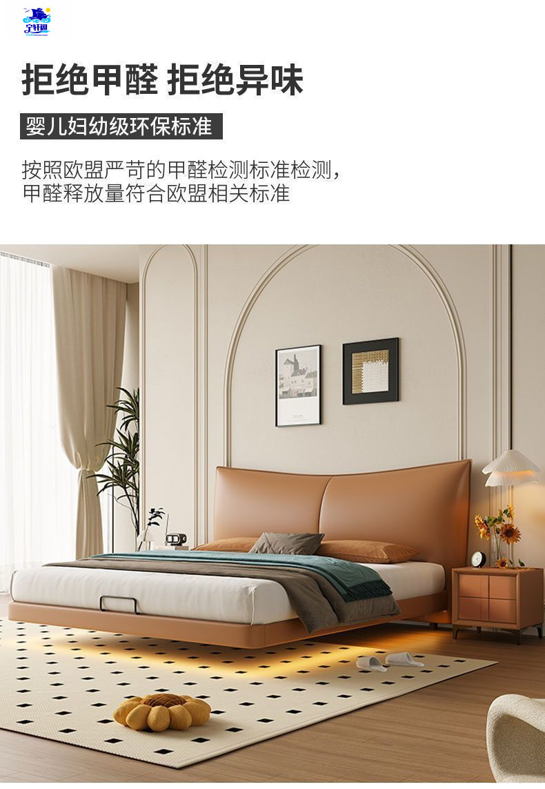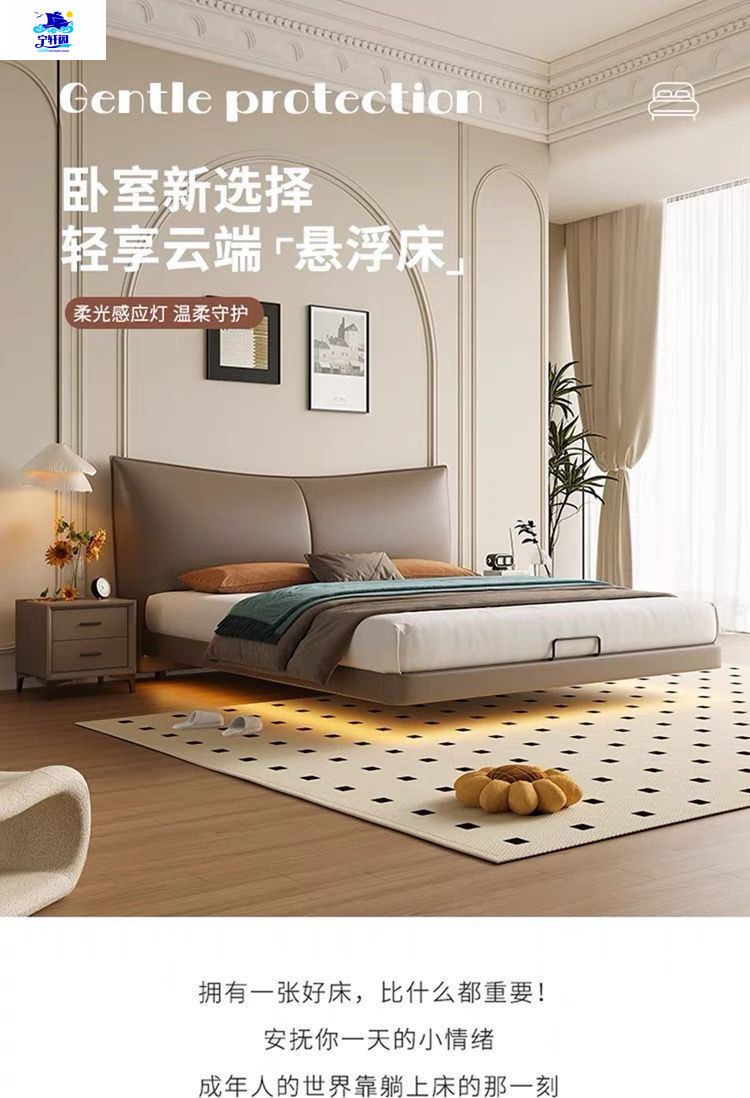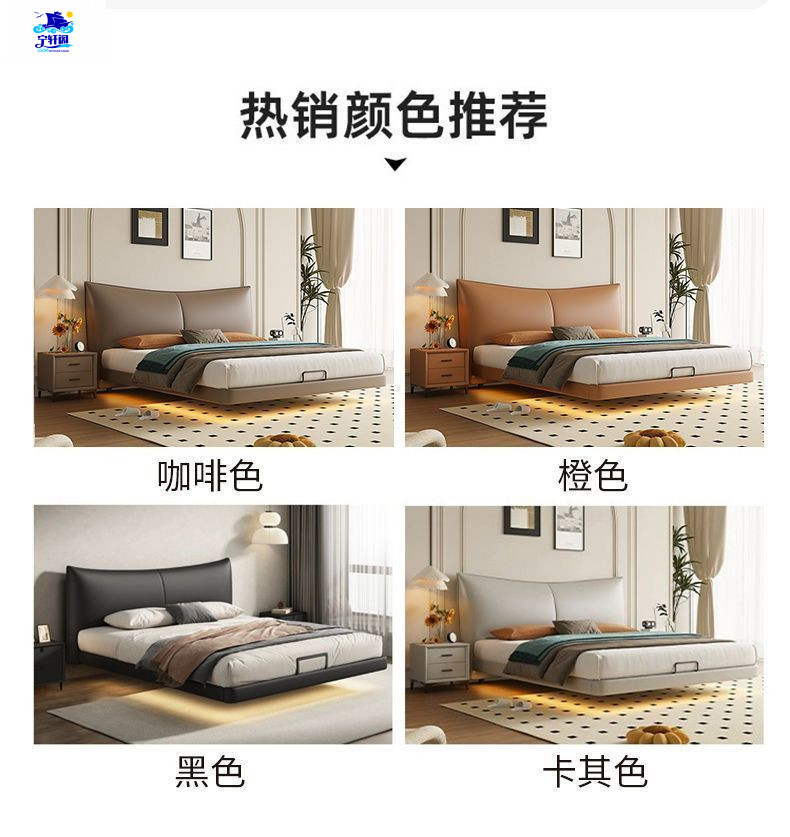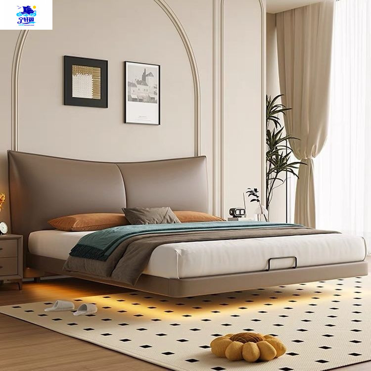 북유럽 스타일의 서스펜션 가죽 침대 현대 간단한 하이 엔드 라이트 럭셔리 미니멀리스트 마스터 침대 침실 보관 소 가죽 더블 침대