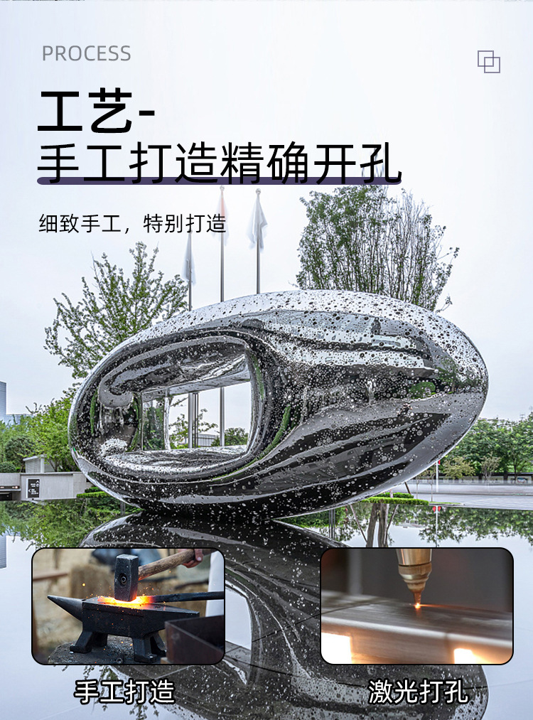 대형 야외 스테인레스 스틸 조각 디자인 및 건설 일체형 거울 원활한 용접 호텔 공원 광장 조각스토어 가기