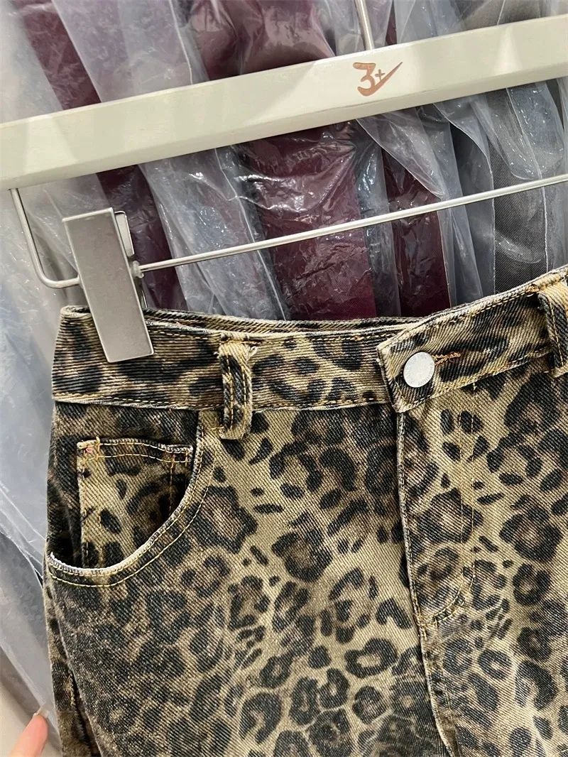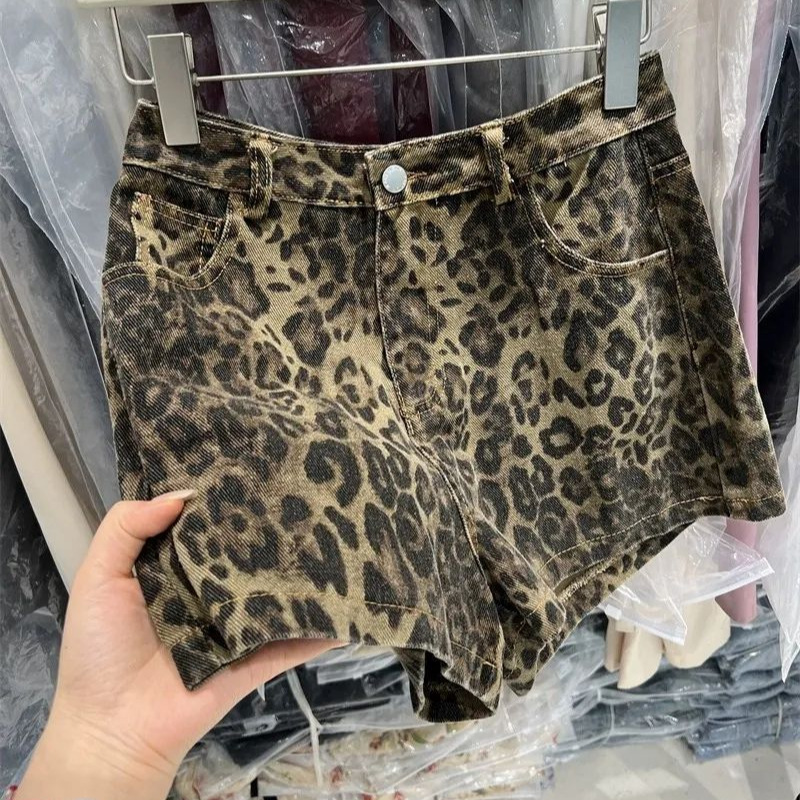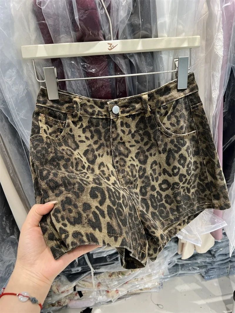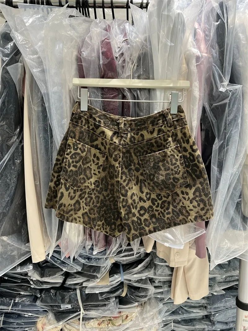 미국 레트로 레오파드 무늬 데님 반바지 여성 2025 봄 새로운 패션 브랜드 디자인 센스 루즈 핫 팬츠
