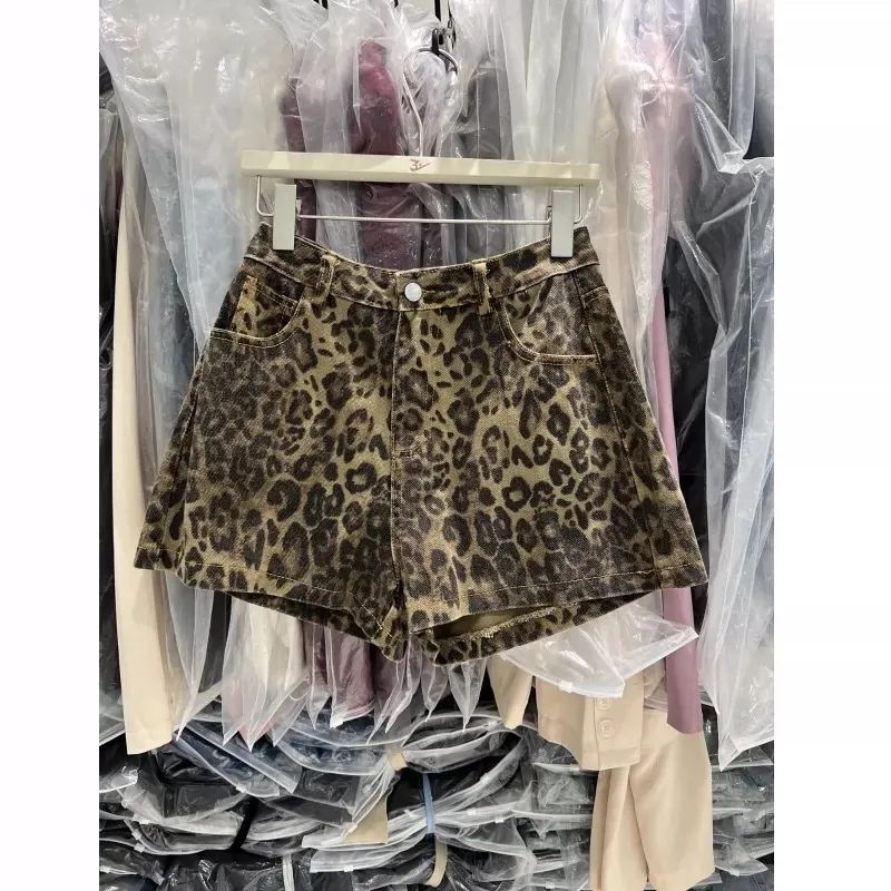 미국 레트로 레오파드 무늬 데님 반바지 여성 2025 봄 새로운 패션 브랜드 디자인 센스 루즈 핫 팬츠스토어 가기