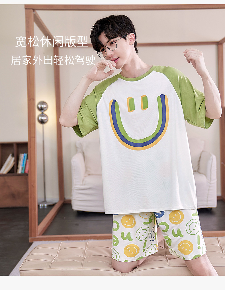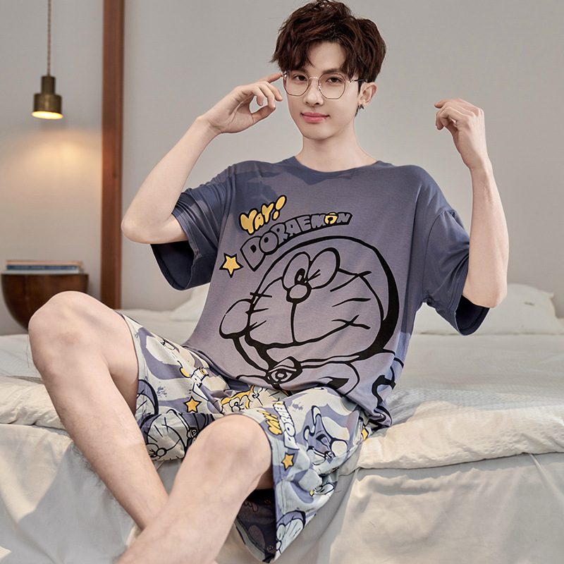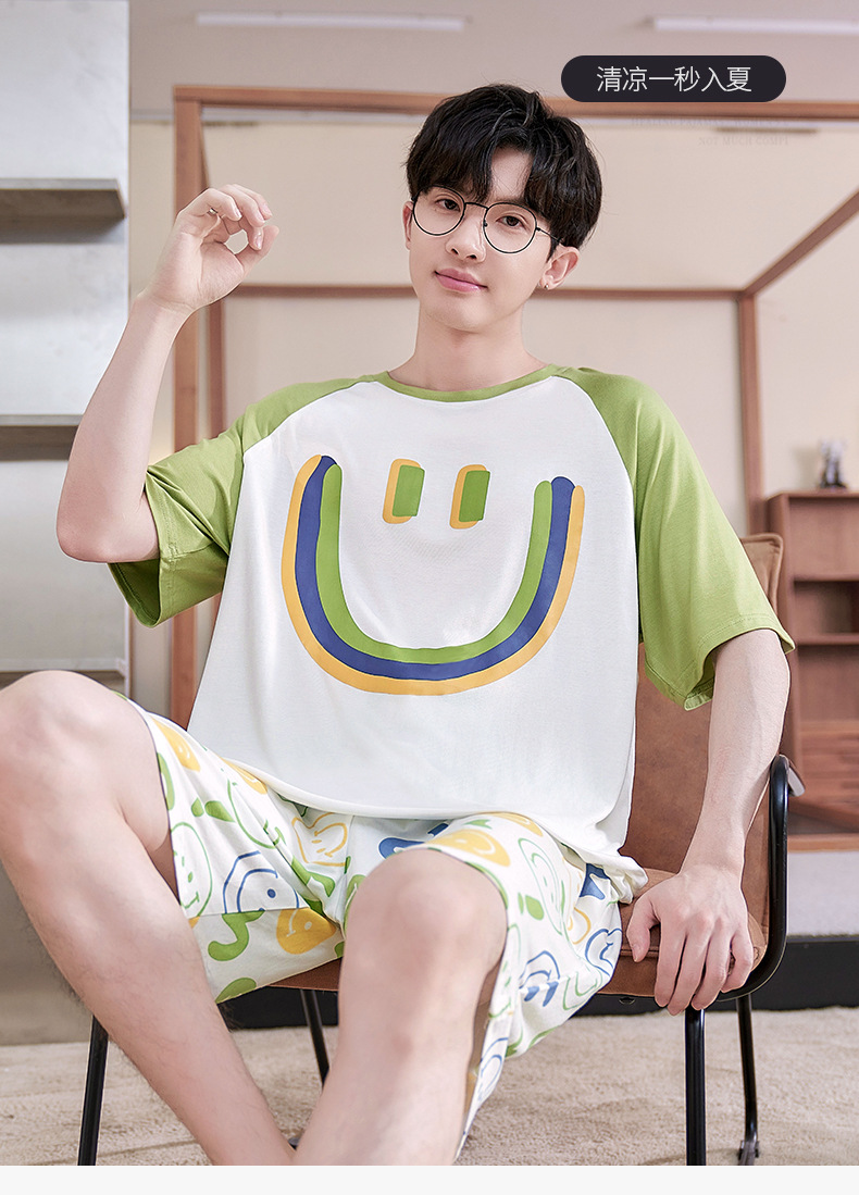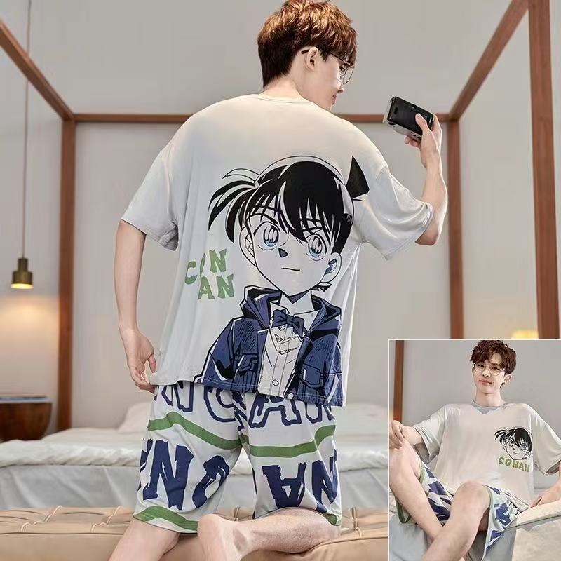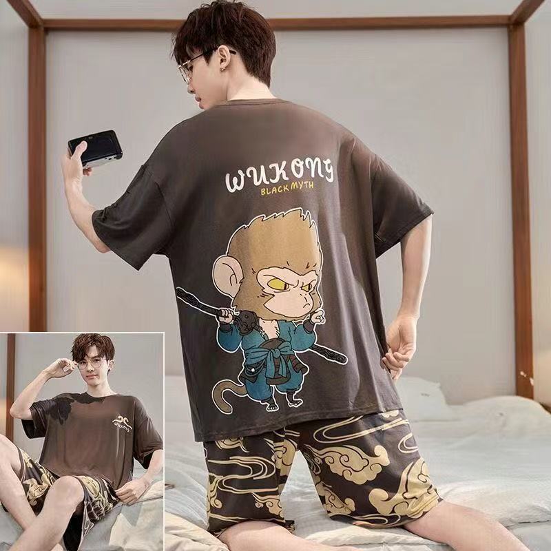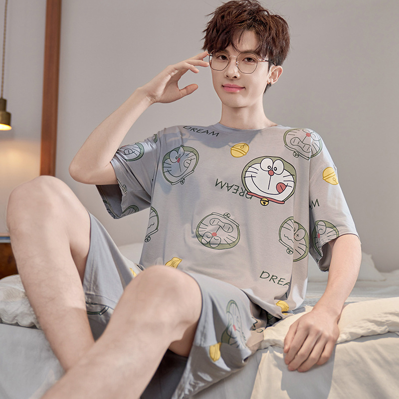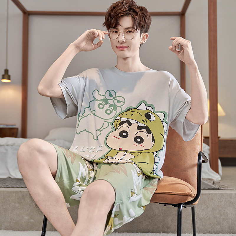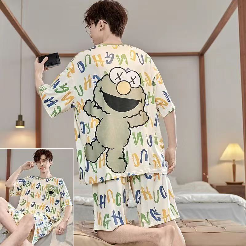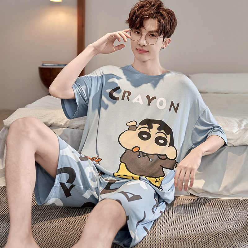 모달 잠옷 남성 여름 반팔 얇은 얼음 실크 만화 십대 소년 학생 큰 어린이 남성 정장스토어 가기