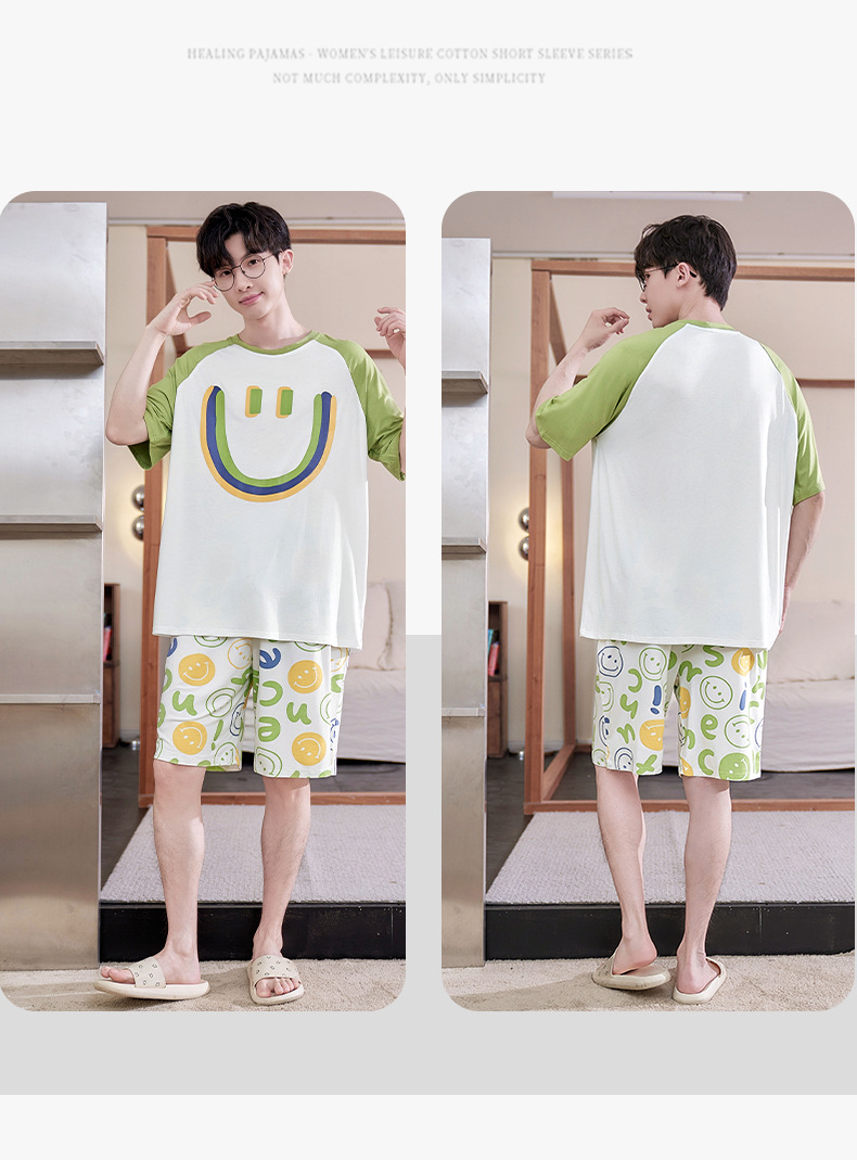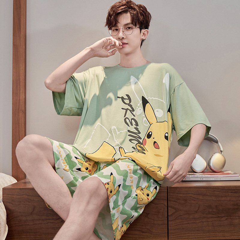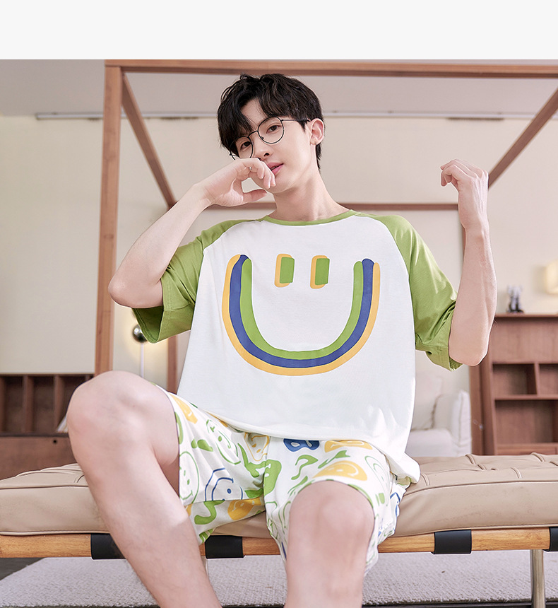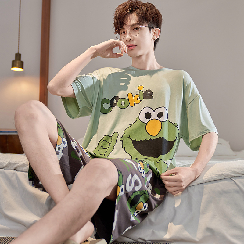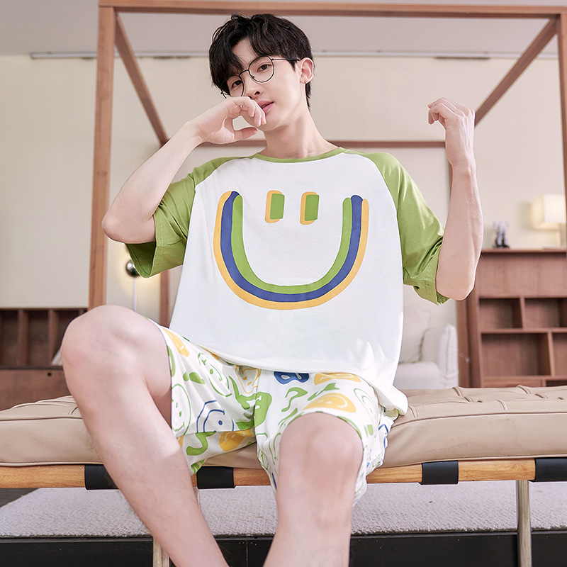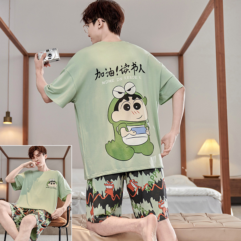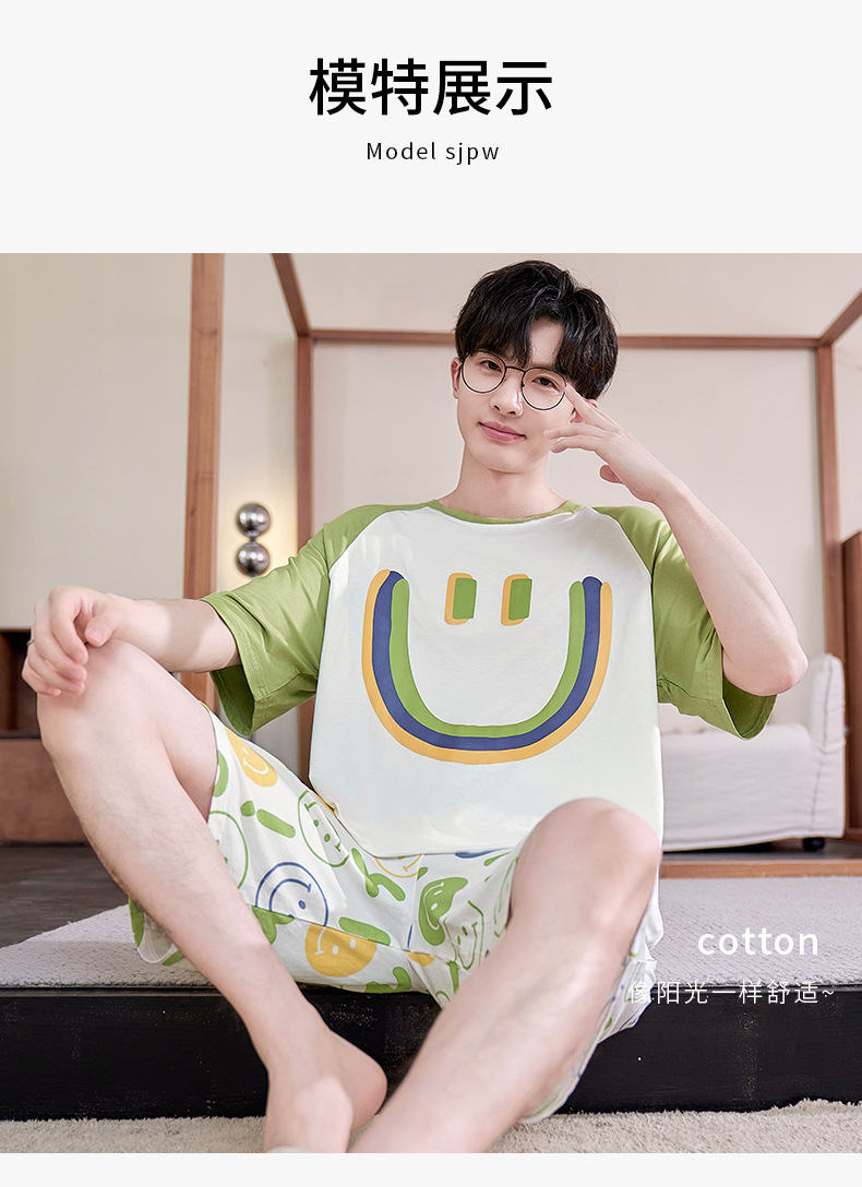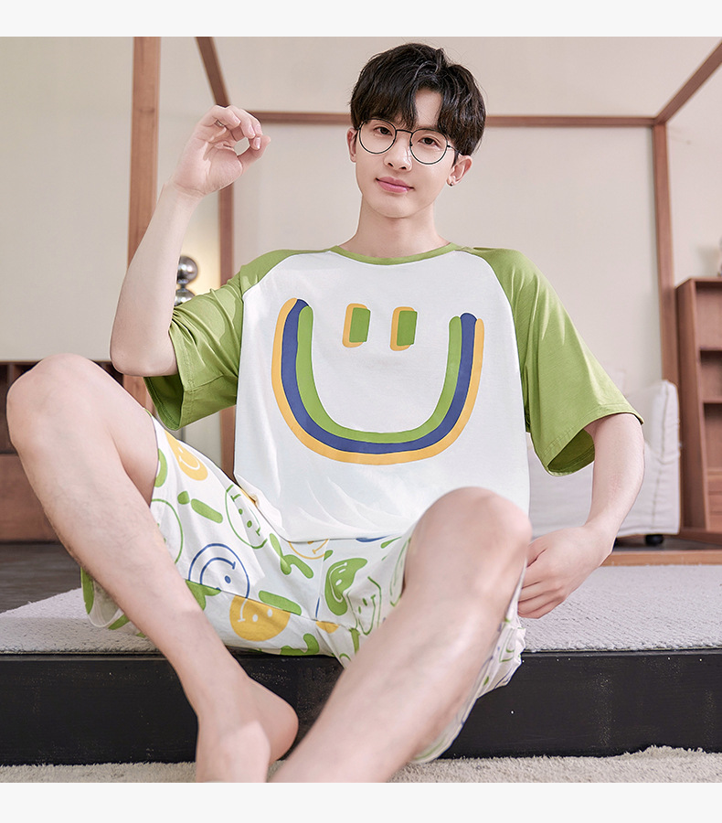 모달 잠옷 남성 여름 반팔 얇은 얼음 실크 만화 십대 소년 학생 큰 어린이 남성 정장스토어 가기
