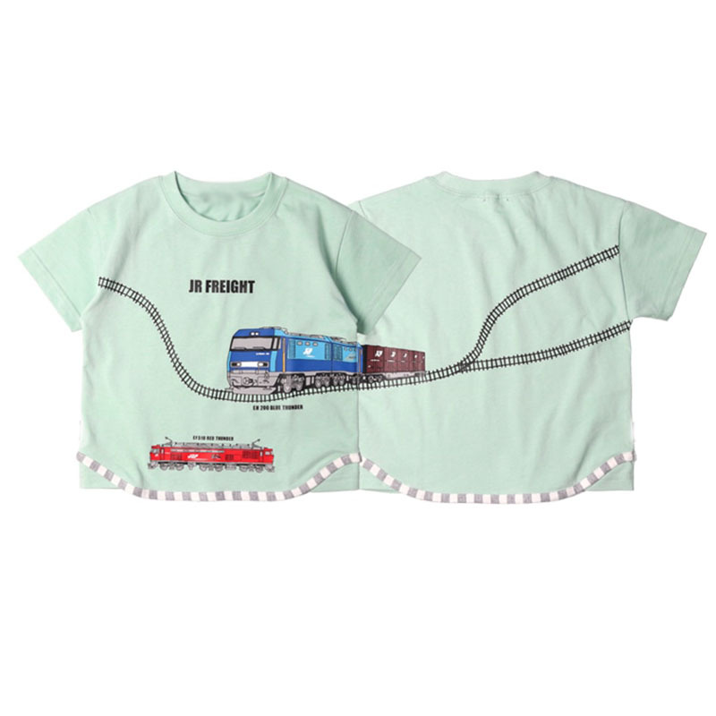 일본으로 수출 입체 기차 트랙 어린이 반팔 티셔츠 여름 순수 코튼 소년 만화 자동차 바닥 셔츠 짧은 T스토어 가기
