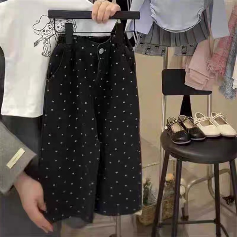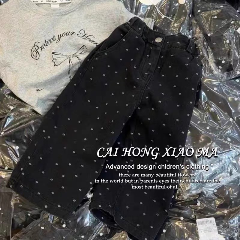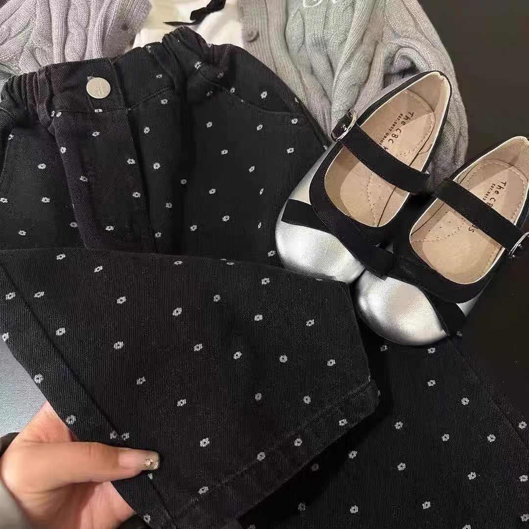 소녀 청바지 봄 새로운 아기 소녀 느슨한 스트레이트 바지 올 매치 어린이 전체 인쇄 작은 꽃 넓은 다리 트렌디 바지스토어 가기