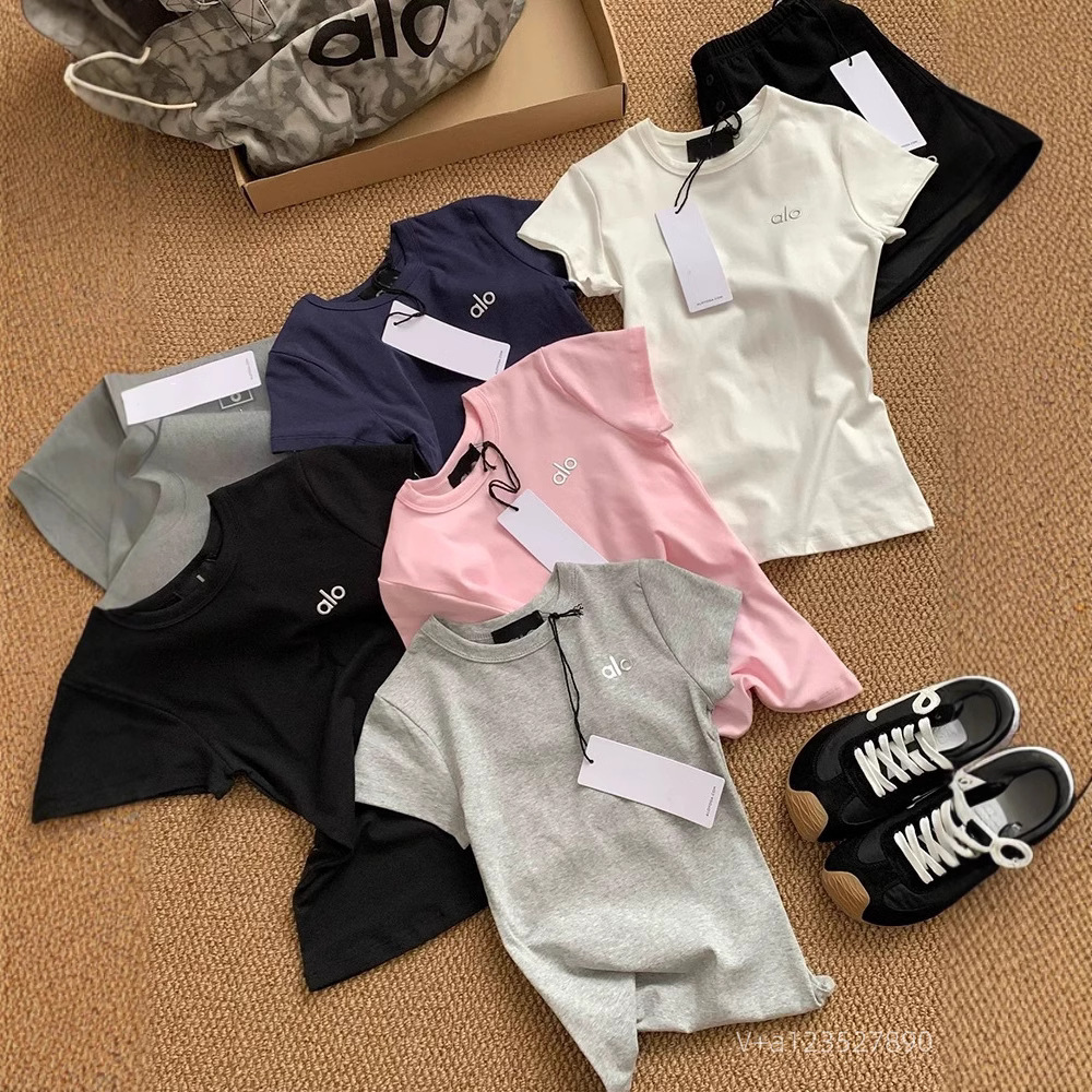 AL0 편지 크루 넥 반팔 티셔츠 여성용 슬림 핏 슬리밍 디자인 센스 올 매치 쇼트 톱 2025 봄/여름 뉴스토어 가기