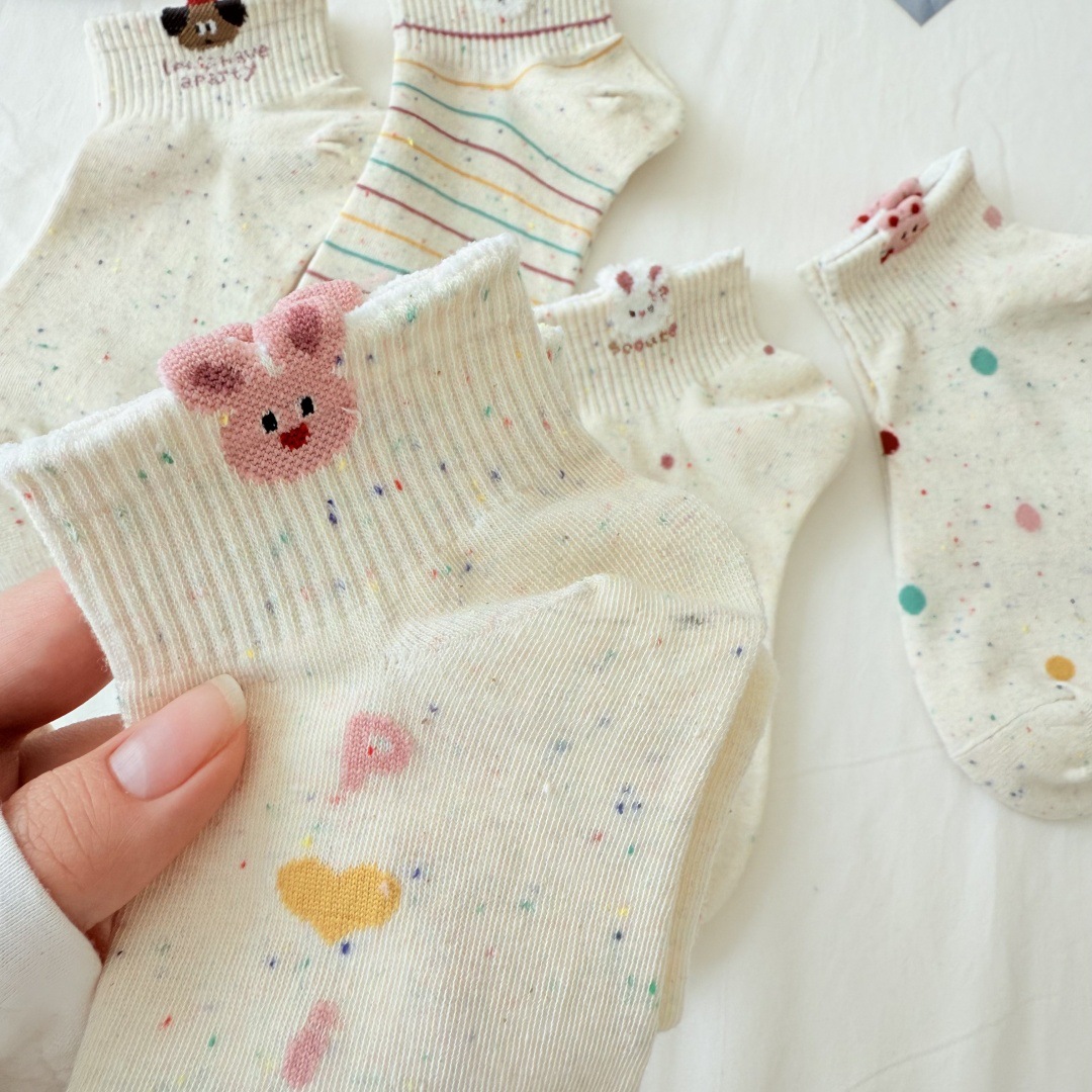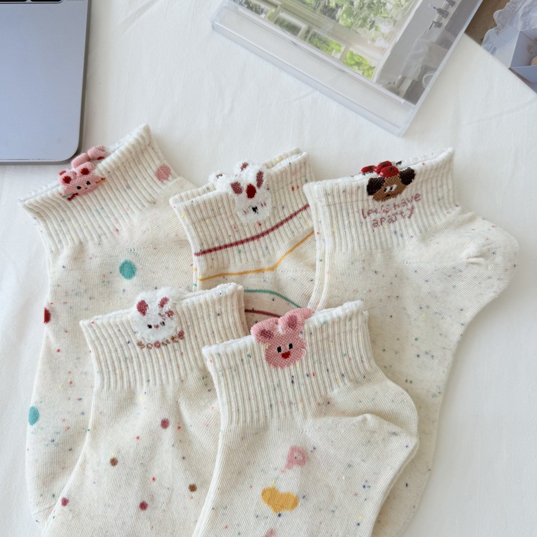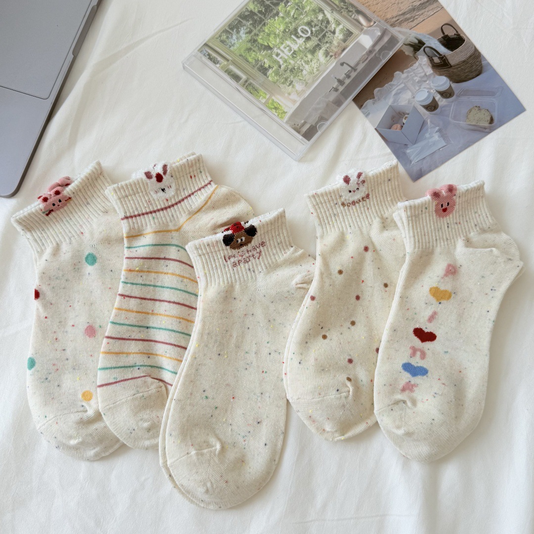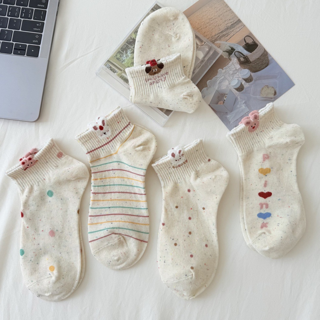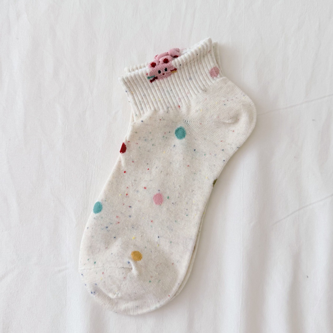 봄과 여름 새로운 포인트 원사 만화 양말 통기성 짧은 양말 모든 경기 보트 양말 입체 동물 개 양말