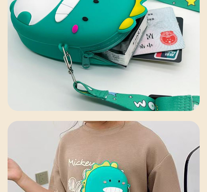• 공룡 실리콘 크로스바디 지갑 그린