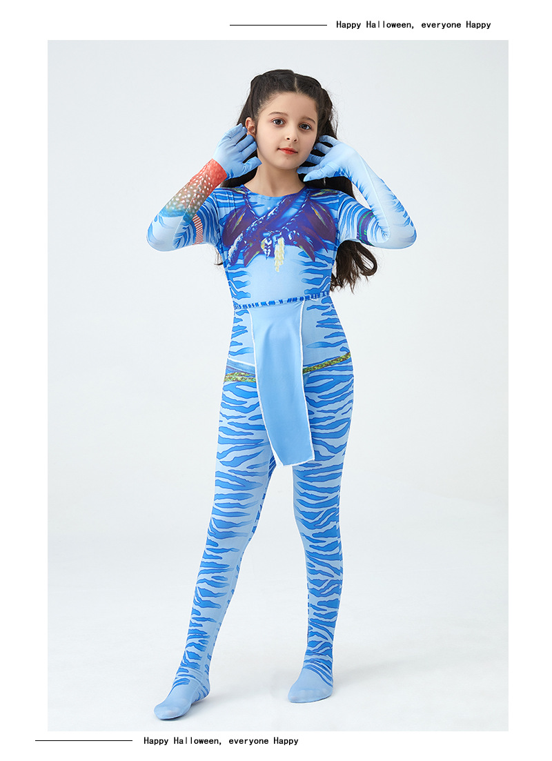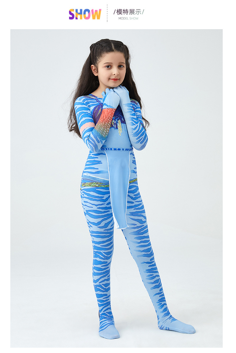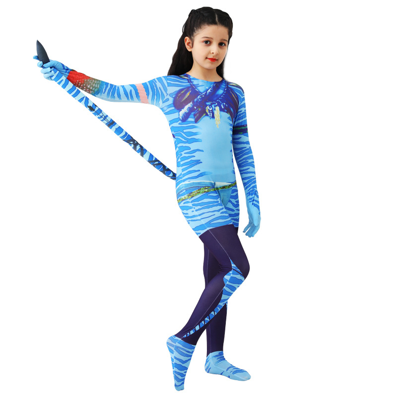 아바타 2 소년과 소녀를위한 새로운 코스프레 스타킹 코스프레 의상 어린이 점프 슈트 드레스스토어 가기