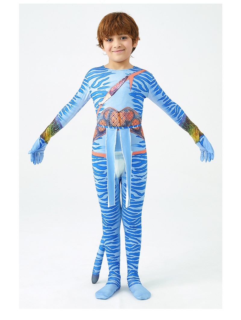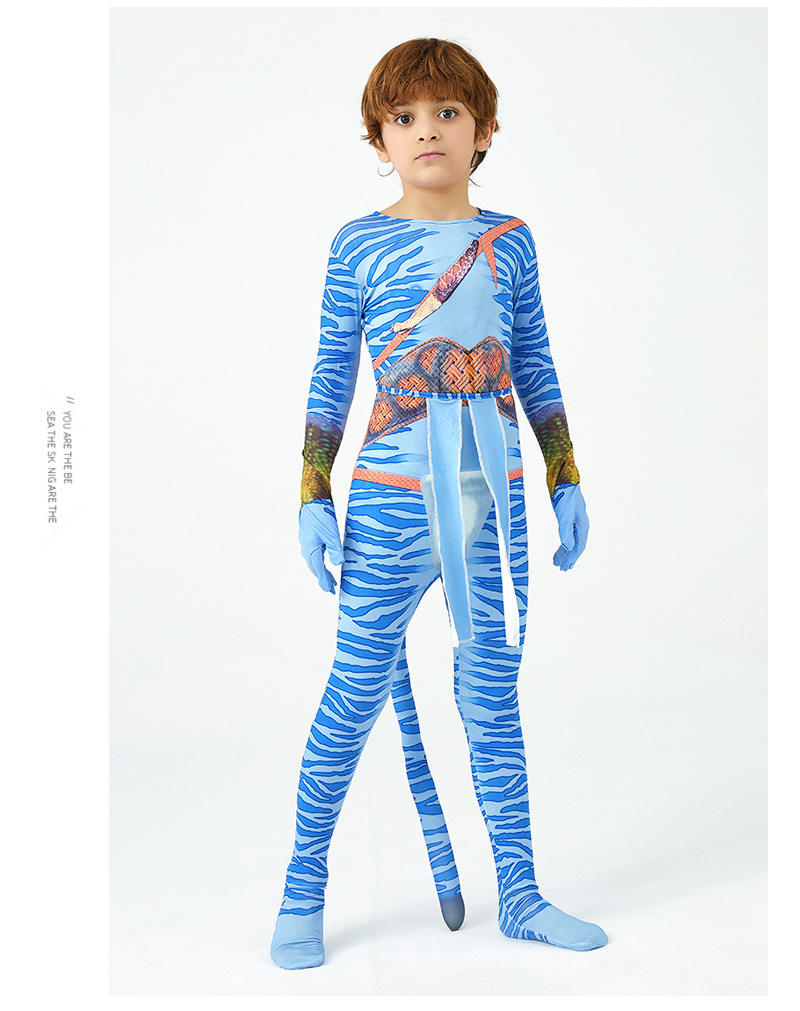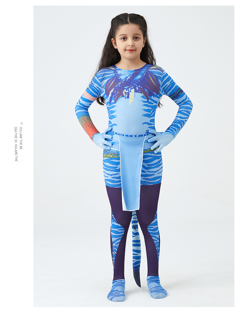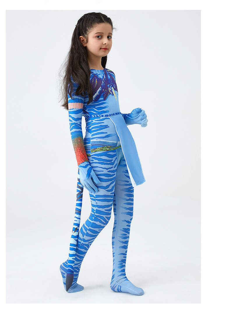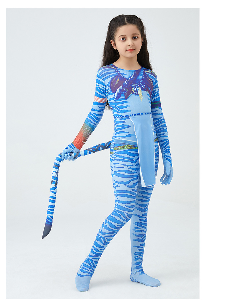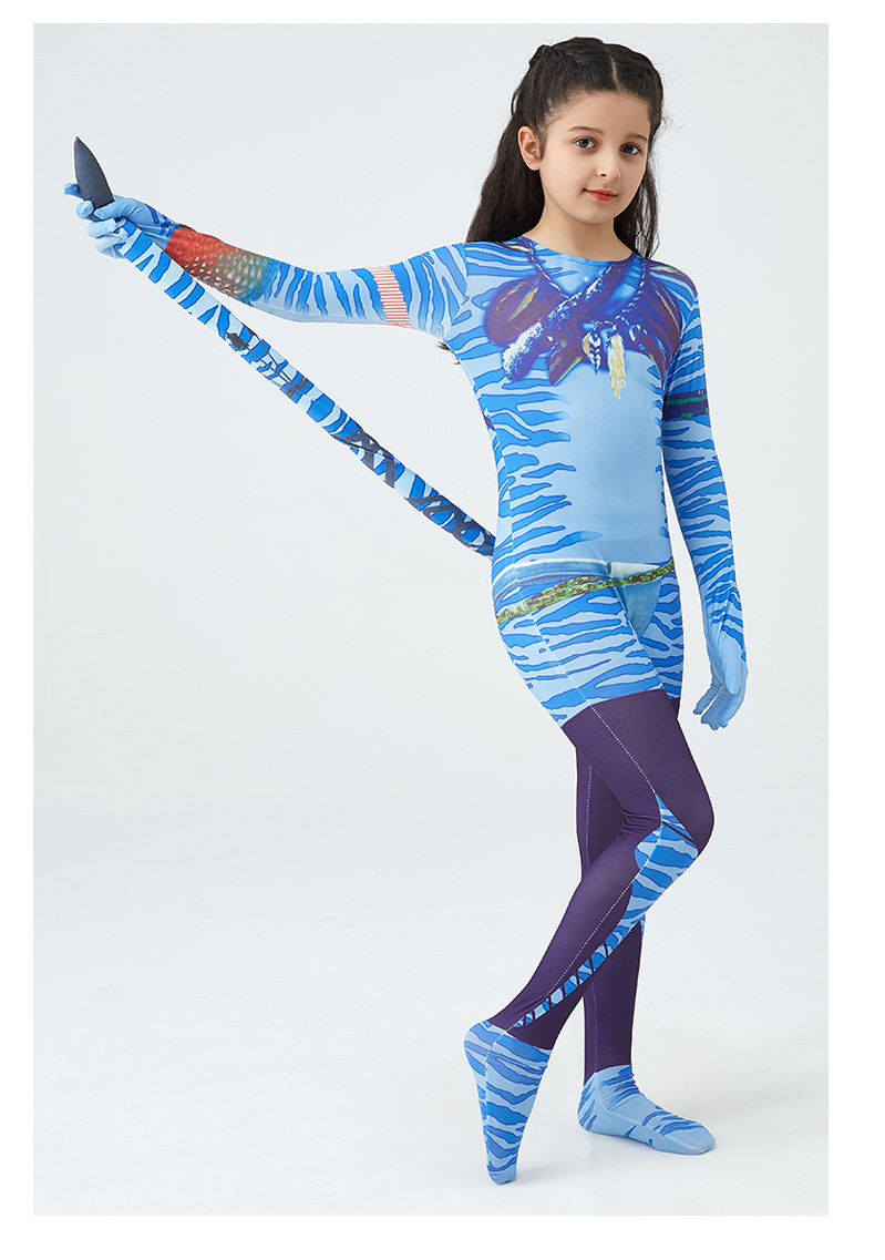 아바타 2 소년과 소녀를위한 새로운 코스프레 스타킹 코스프레 의상 어린이 점프 슈트 드레스