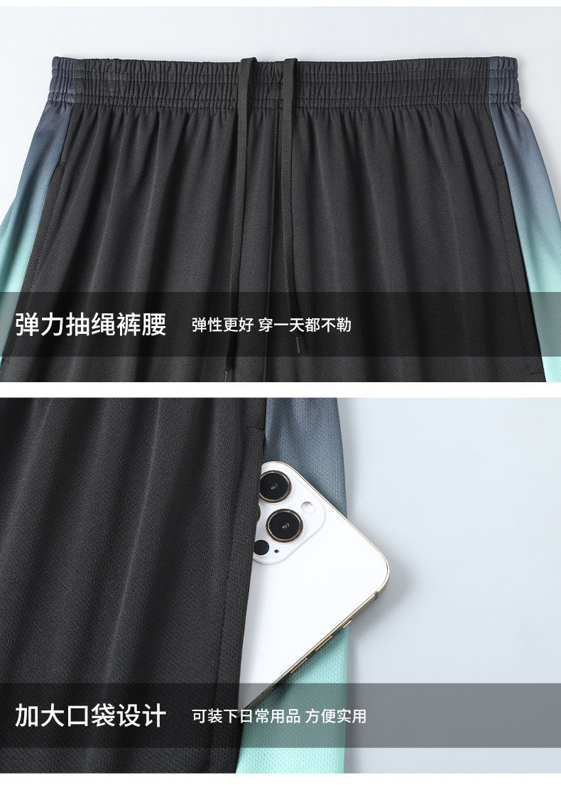 여름 얇은 얼음 실크 통기성 스포츠 세트 남녀 달리기 빠른 건조 야외 피트니스 플러스 사이즈 아침 달리기 세트