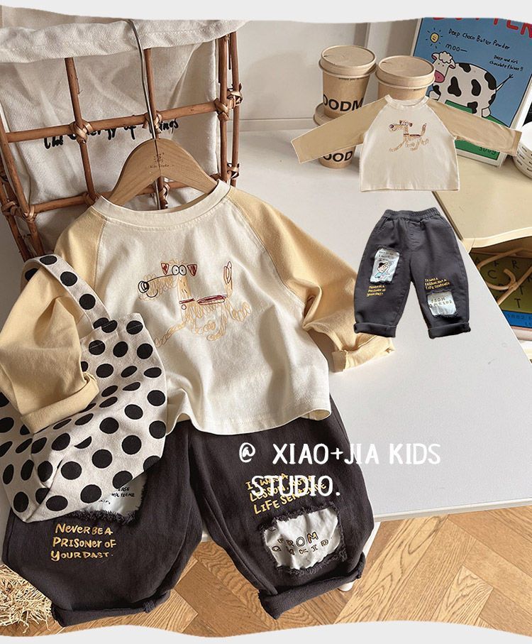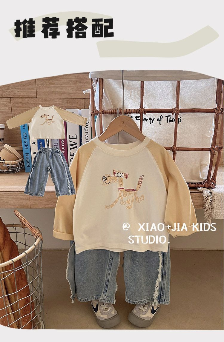 Scribbbled 강아지 ~ 어린이 봄 라글란 소매 긴팔 티셔츠 소년 잘 생긴 둥근 목 풀오버 탑 아기베이스 셔츠스토어 가기