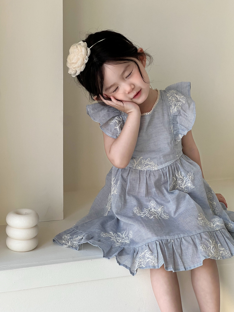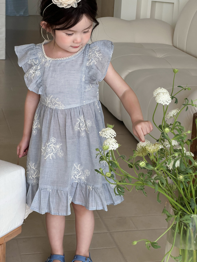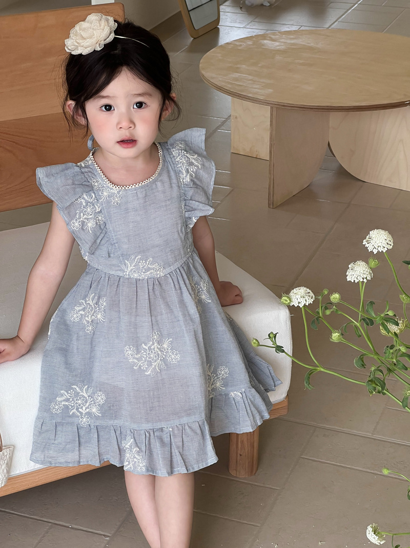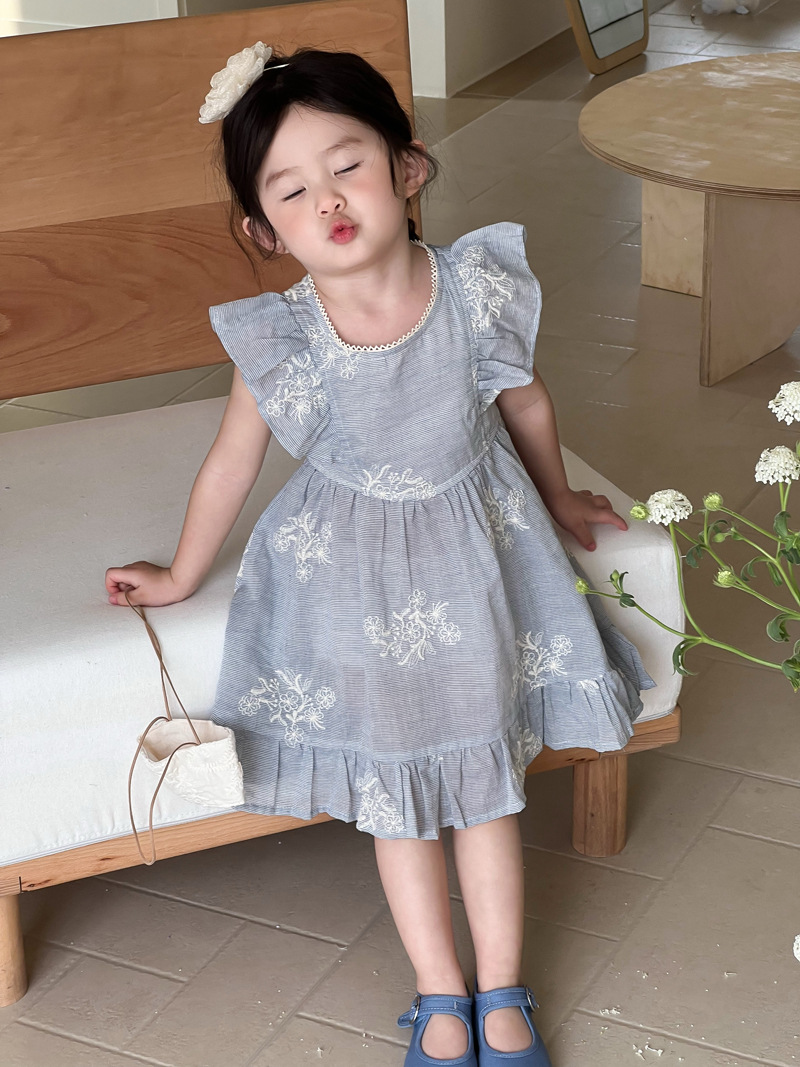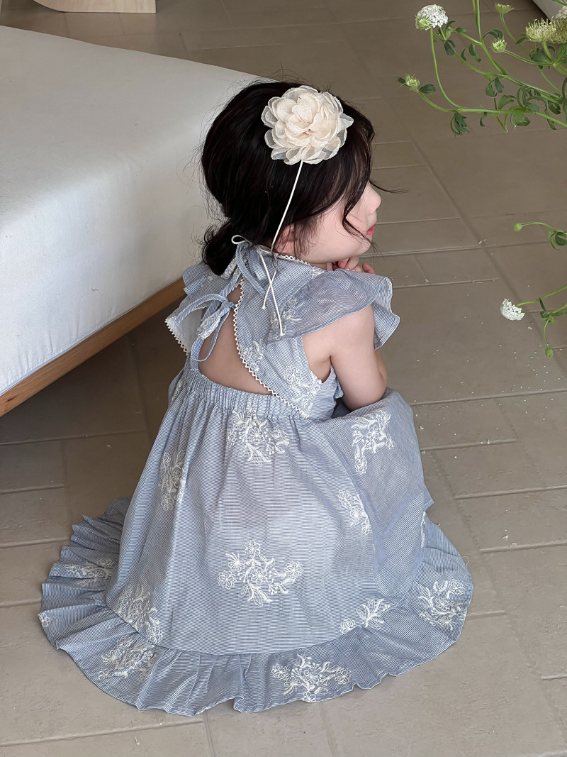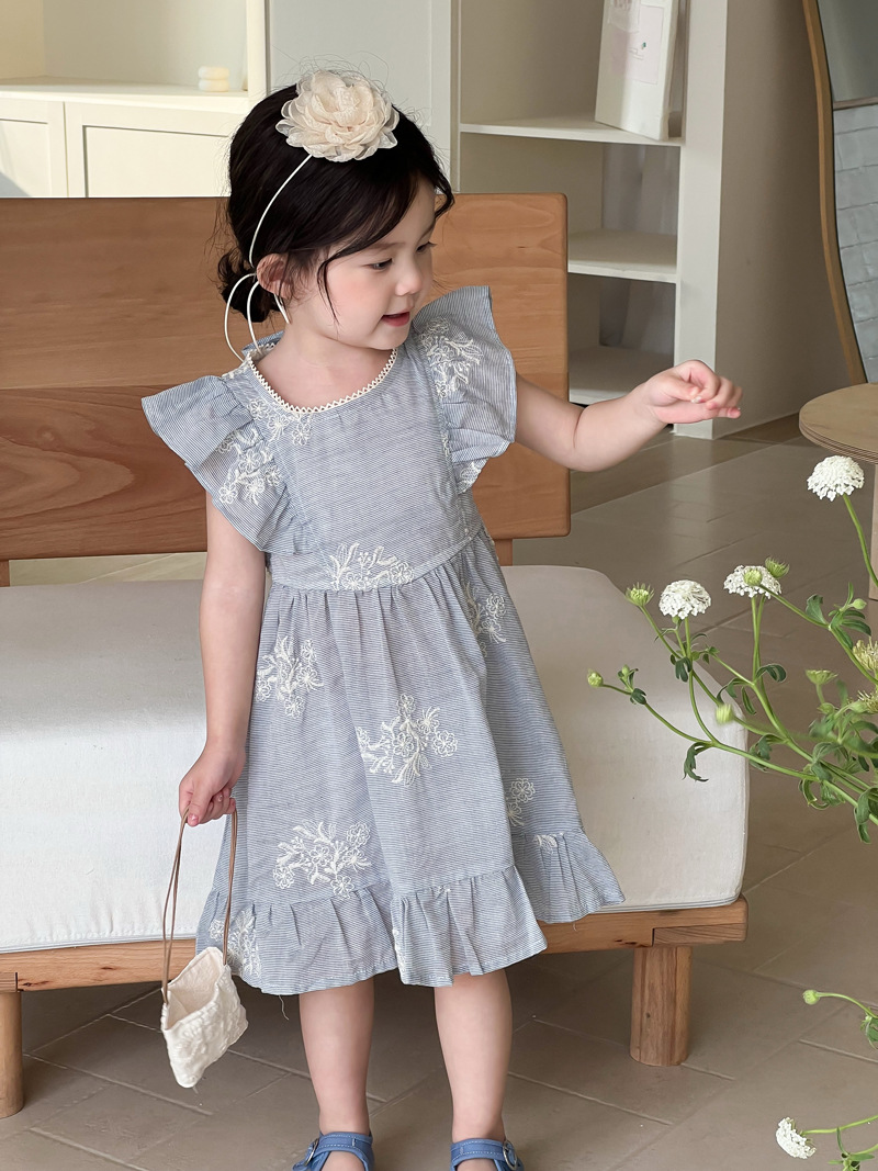 밀밭 시즌 2025 여름 새로운 한국 스타일 소녀 자수 꽃 원피스 아이들 등이없는 공주 원피스스토어 가기