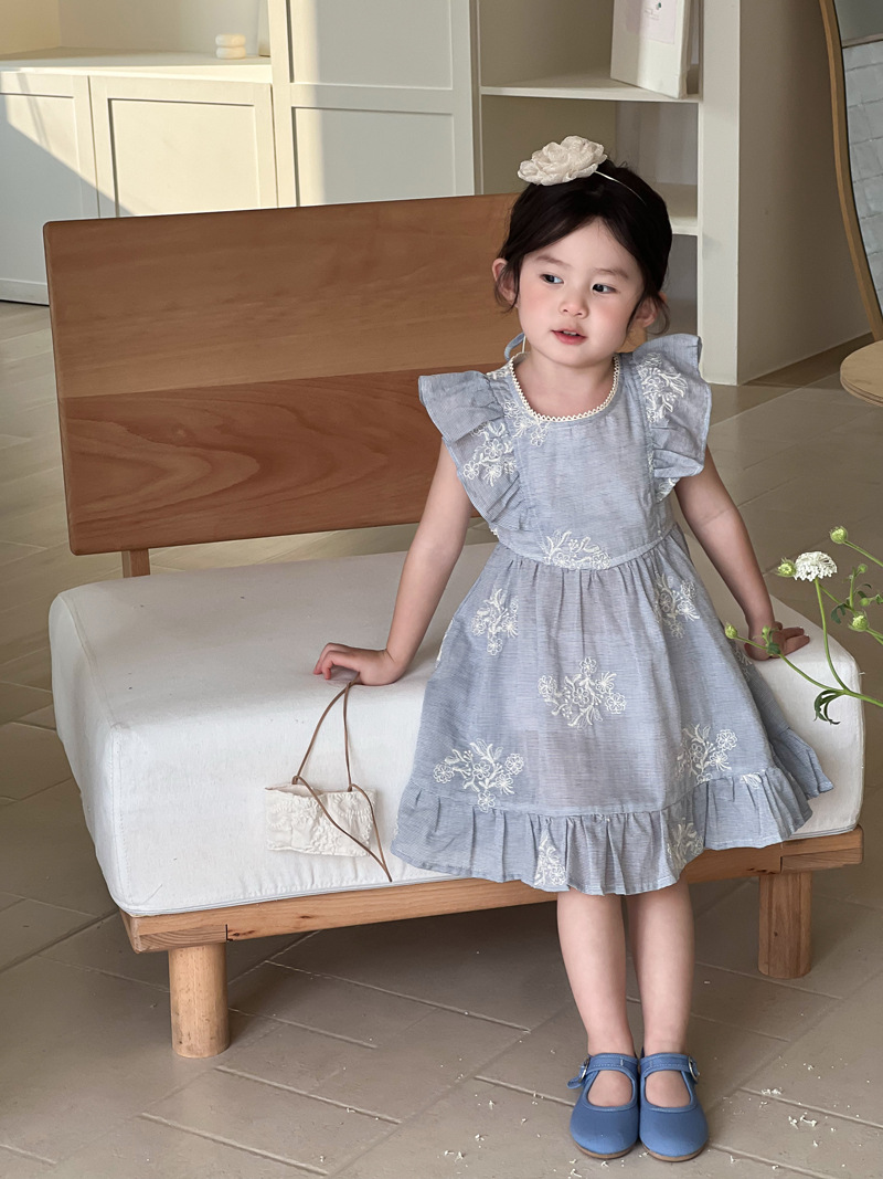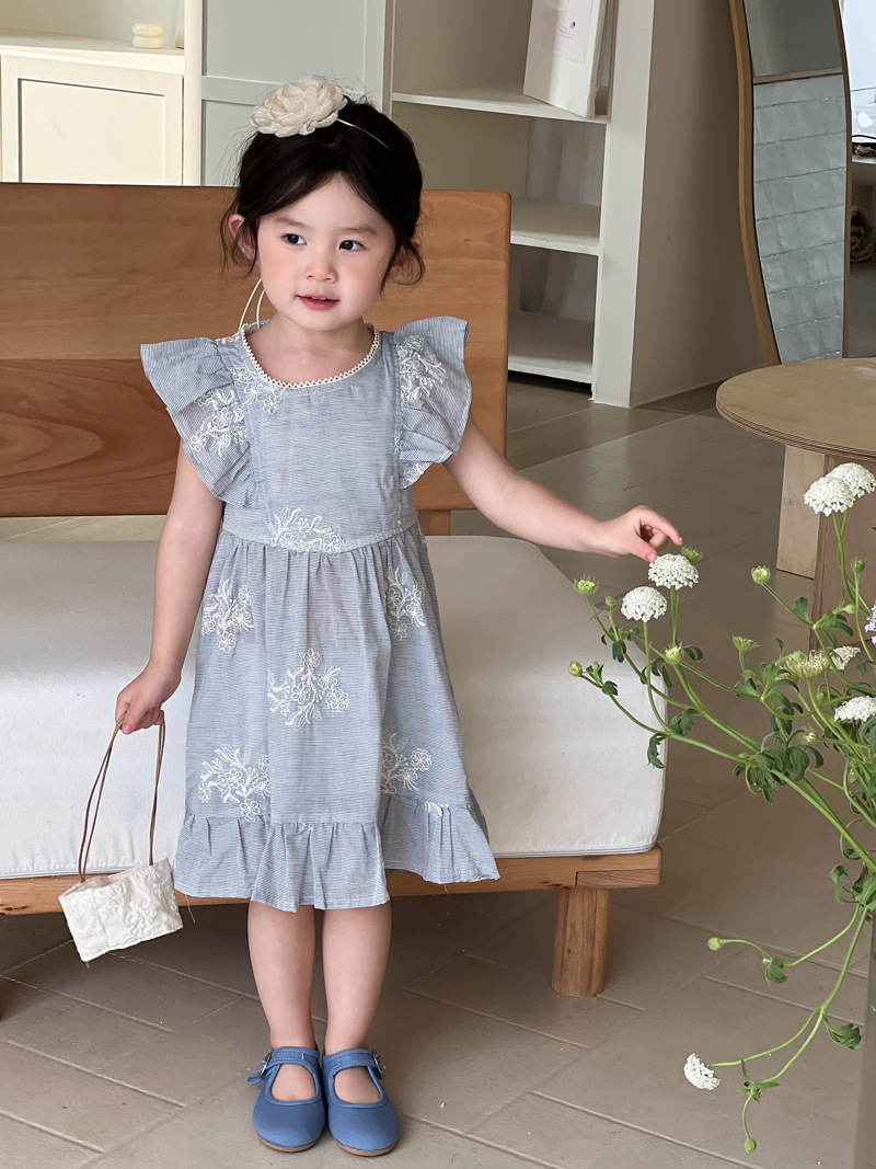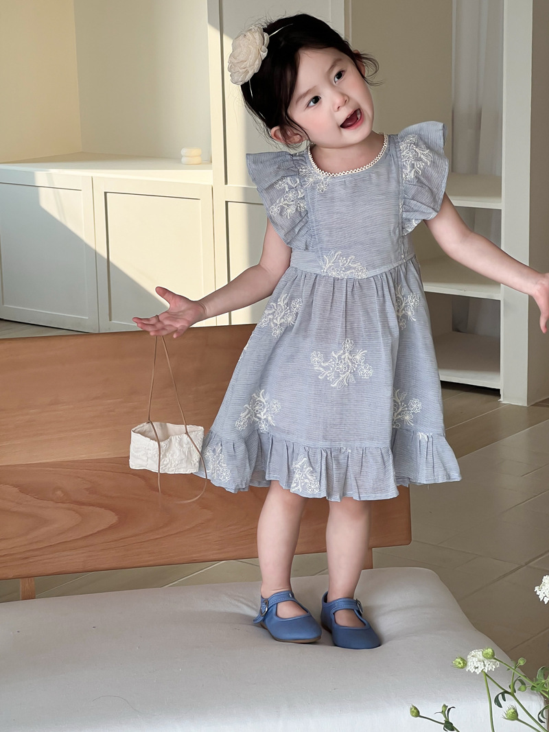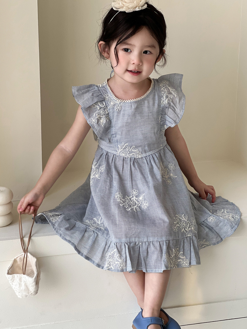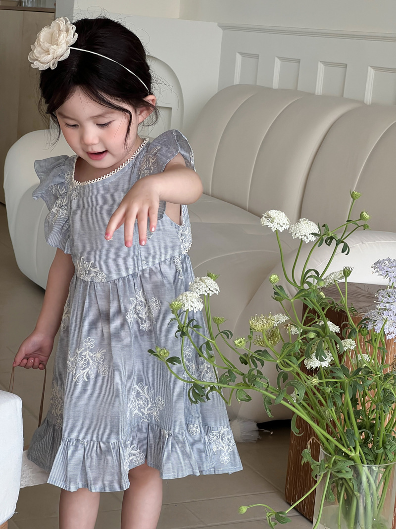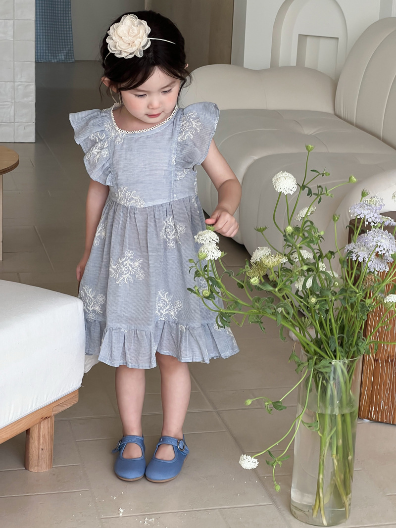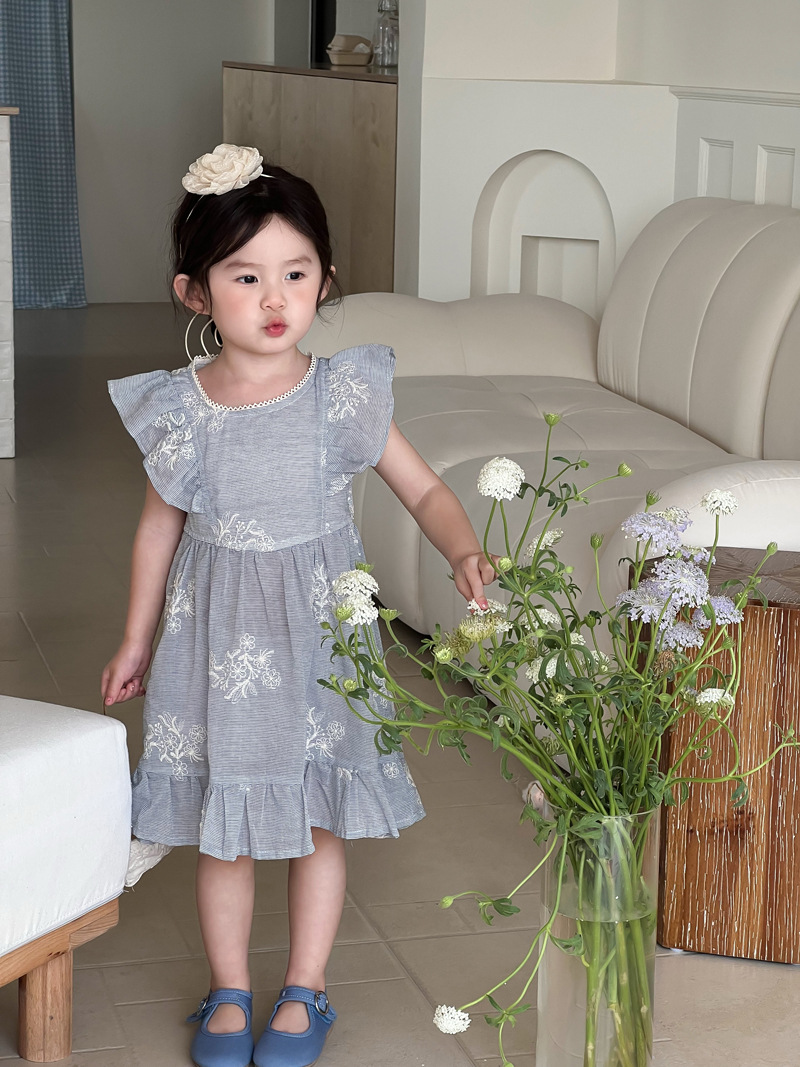 밀밭 시즌 2025 여름 새로운 한국 스타일 소녀 자수 꽃 원피스 아이들 등이없는 공주 원피스스토어 가기