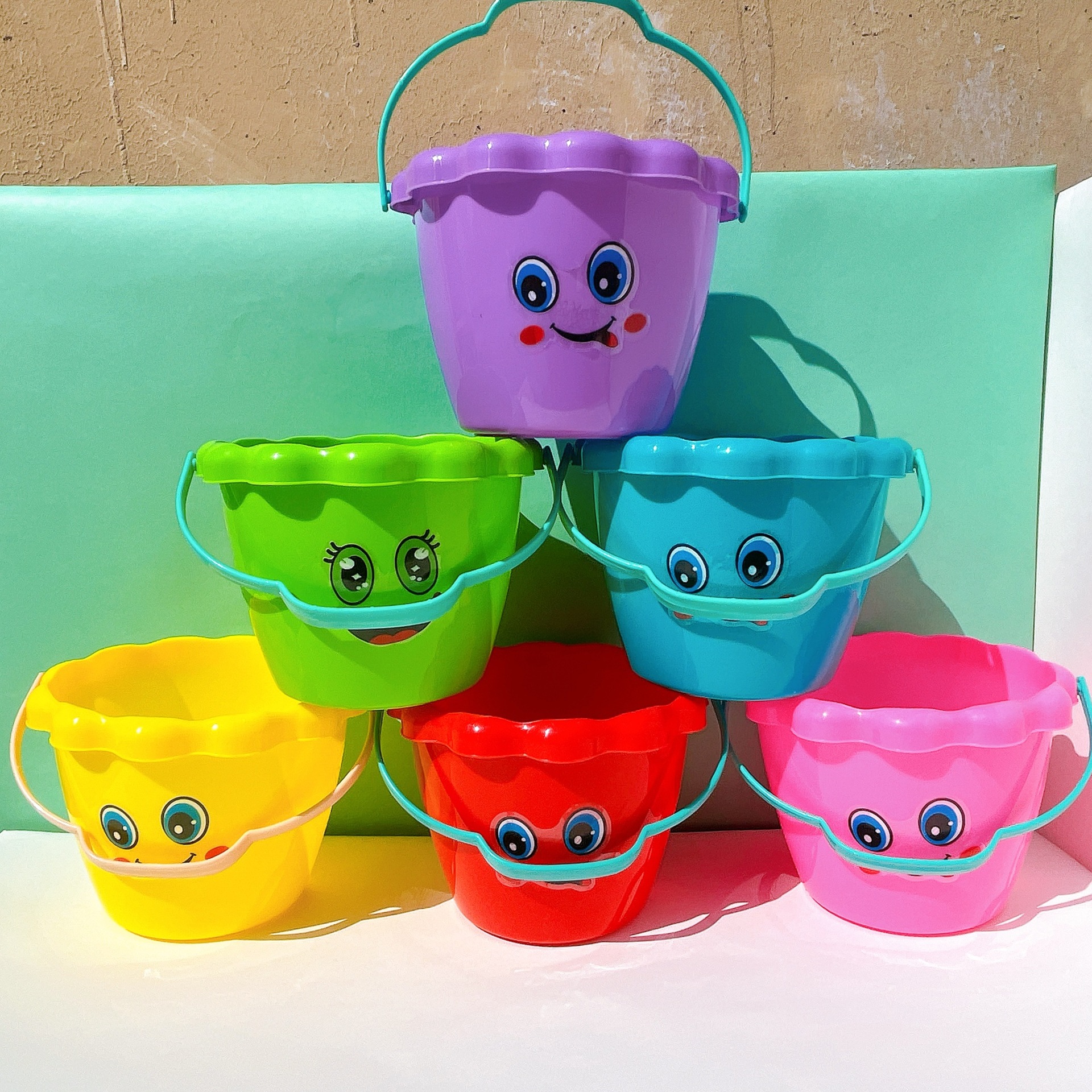 모래 양동이, 다채로운 플라스틱 작은 양동이, 물놀이용 두꺼운 펜 세척 양동이, 공원 낚시 휴대용 어린이 2달러 장난감스토어 가기
