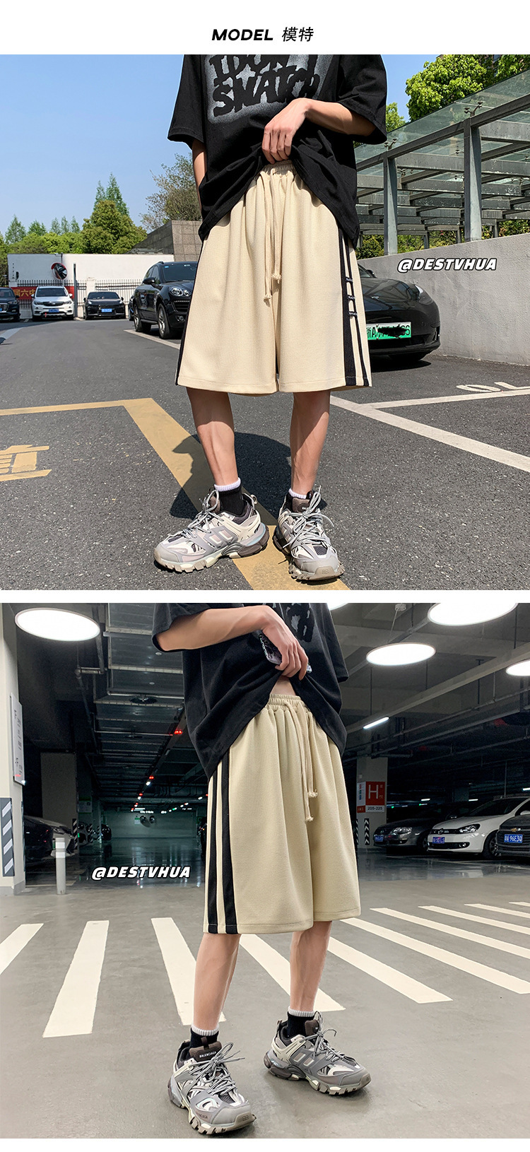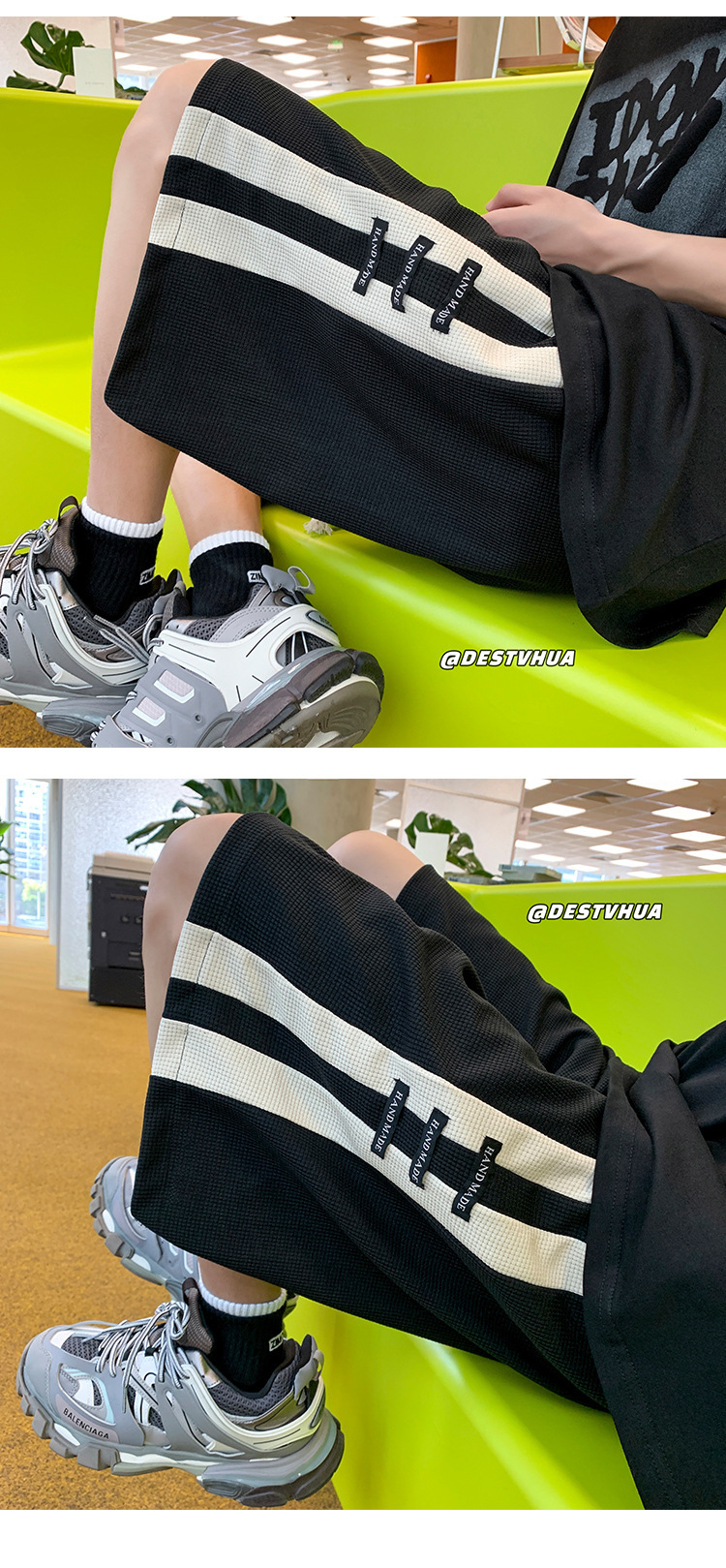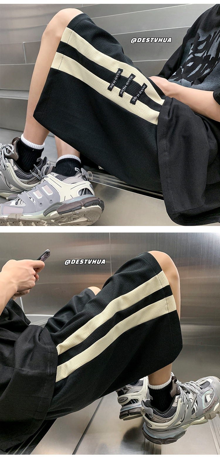 2025년 신상 여름 와플 반바지 남성 홍콩 스타일 트렌디 5부 바지 루즈 스트레이트 맞춤형 스플리싱 캐주얼 바지스토어 가기