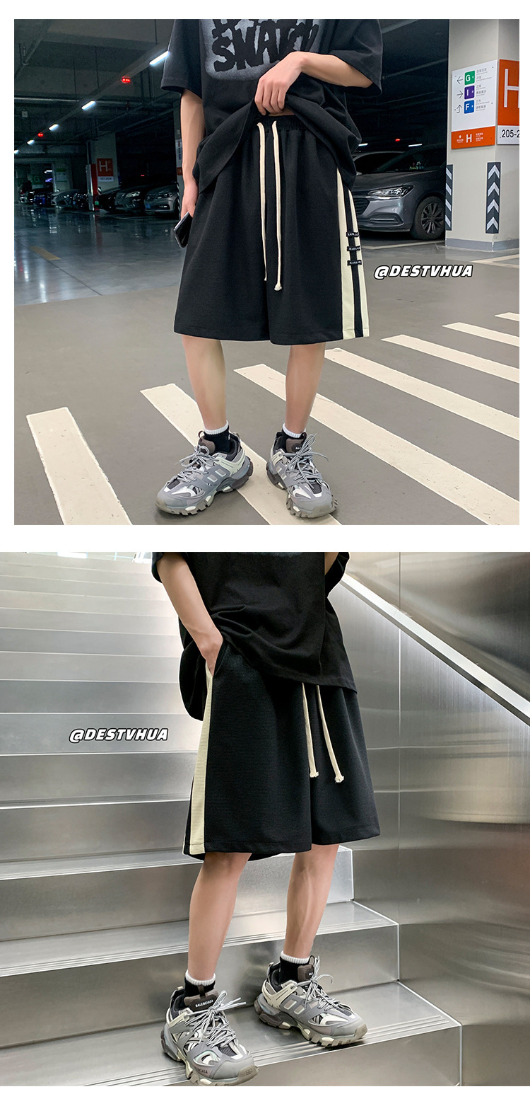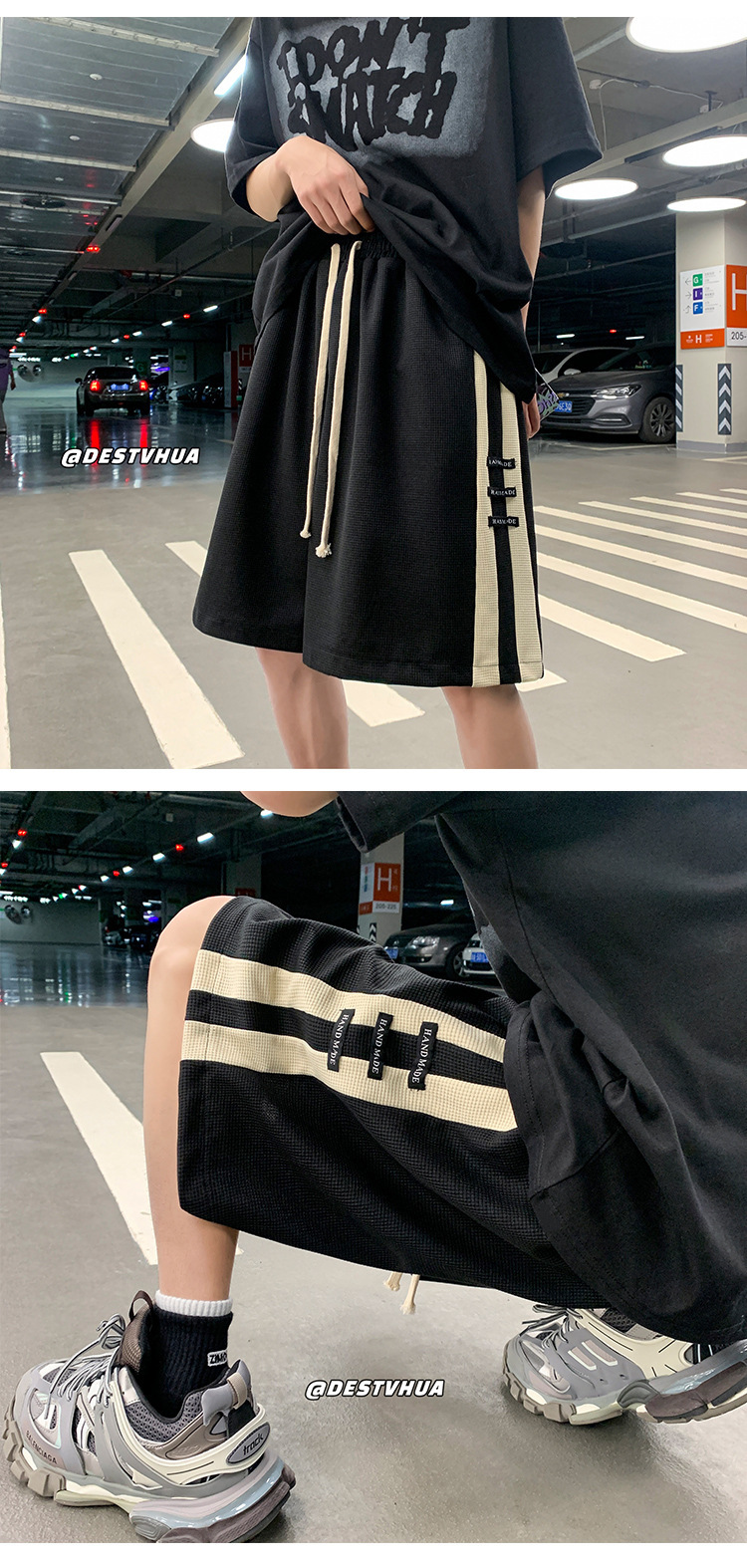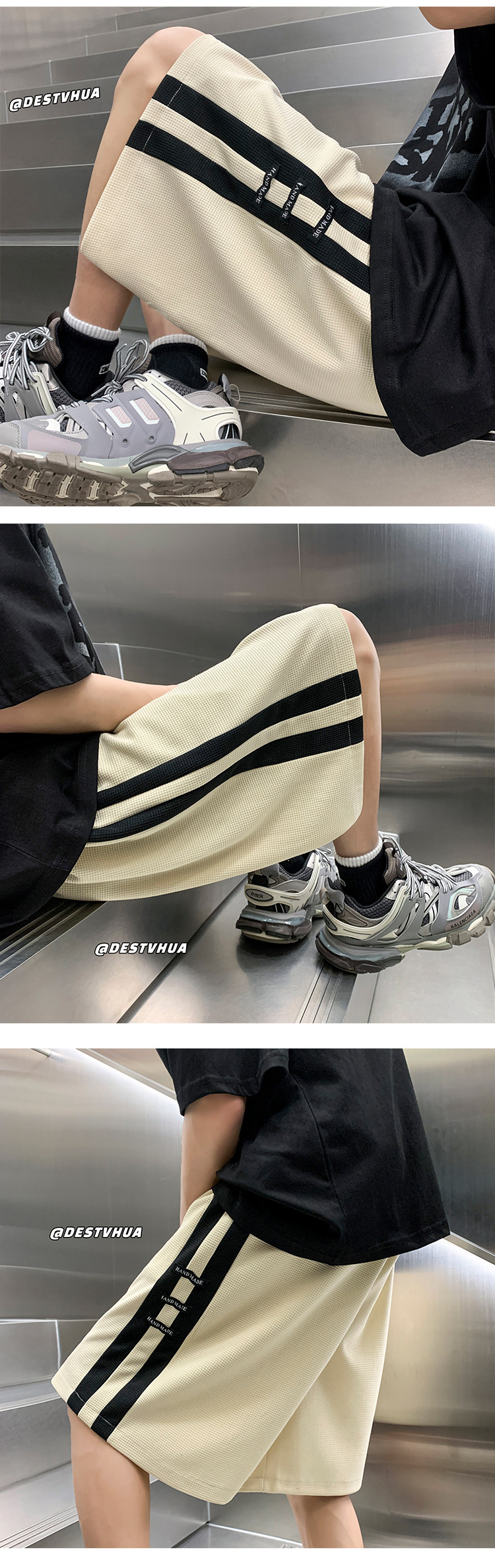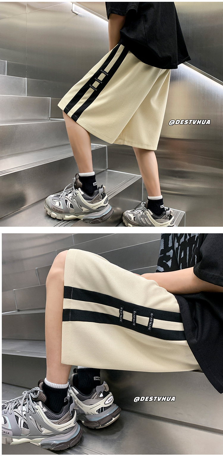 2025년 신상 여름 와플 반바지 남성 홍콩 스타일 트렌디 5부 바지 루즈 스트레이트 맞춤형 스플리싱 캐주얼 바지스토어 가기