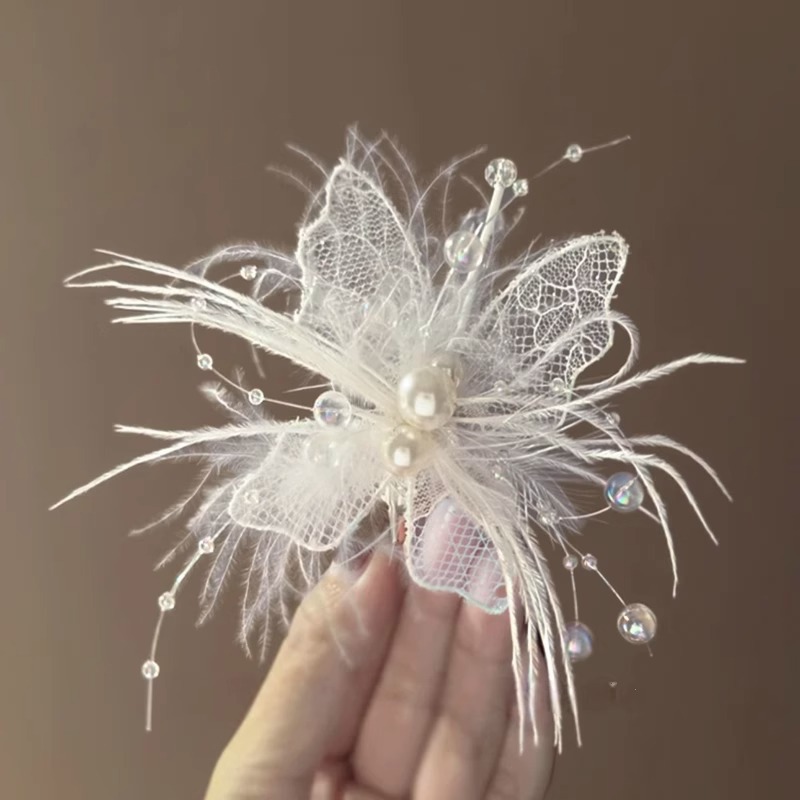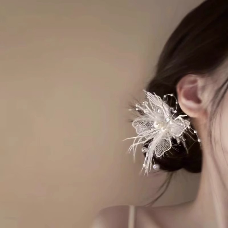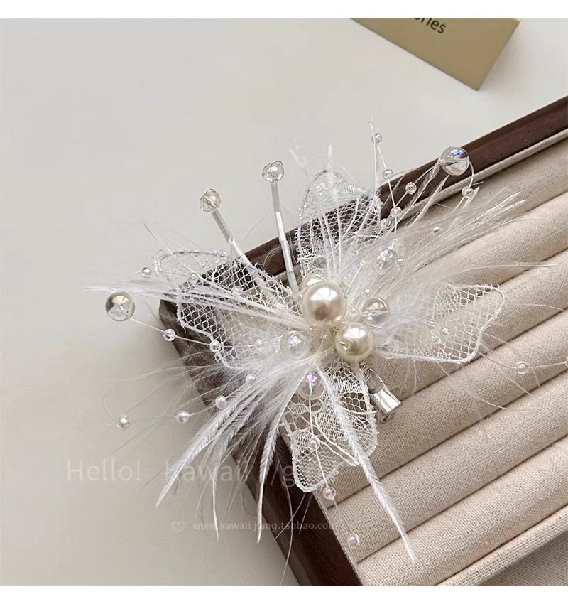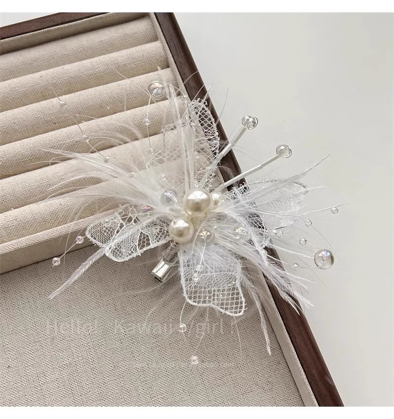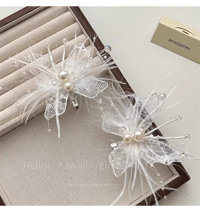똑똑하고 우아한! 아름다운 레이스 깃털 헤어 클립 절묘한 소녀의 하트 사이드 클립 헤어 올 매치 헤드웨어 여성