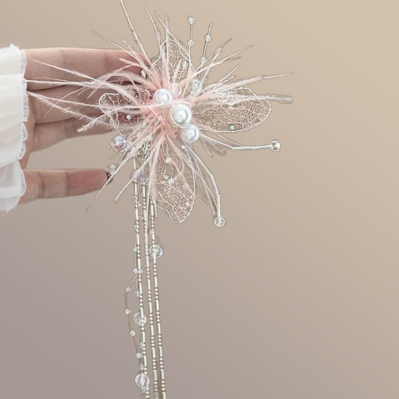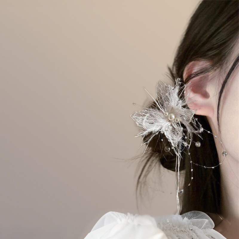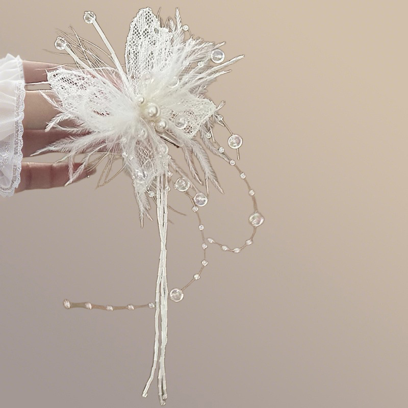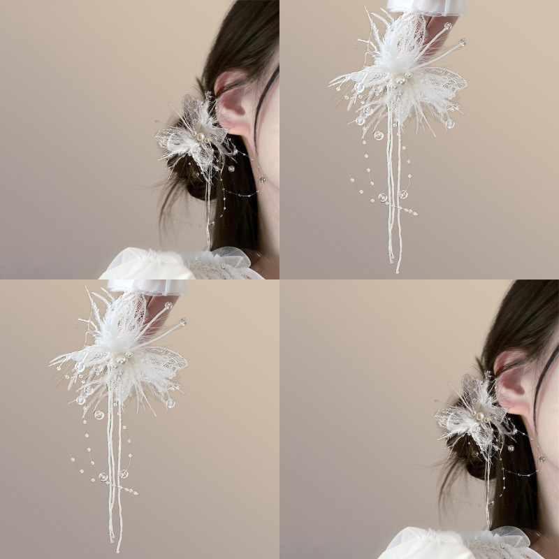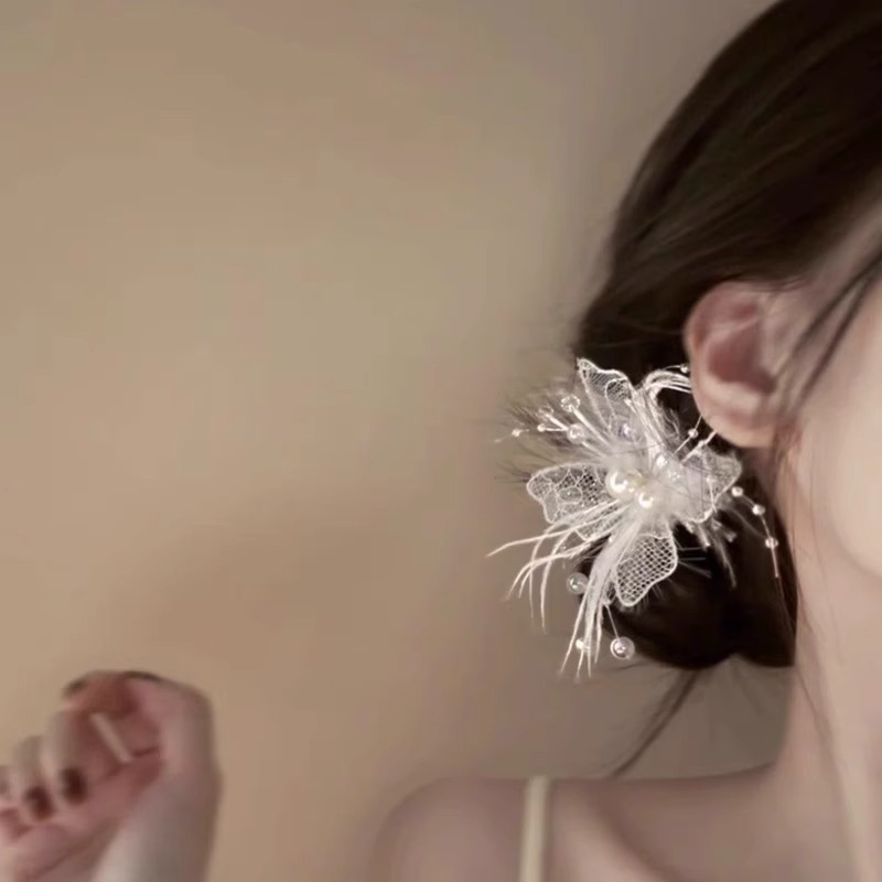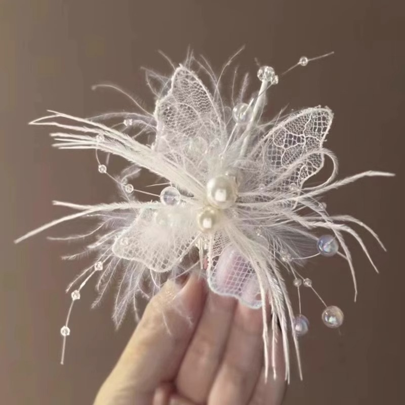 똑똑하고 우아한! 아름다운 레이스 깃털 헤어 클립 절묘한 소녀의 하트 사이드 클립 헤어 올 매치 헤드웨어 여성